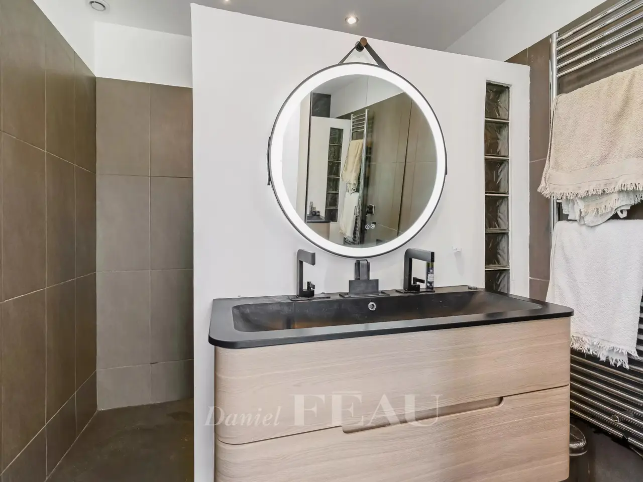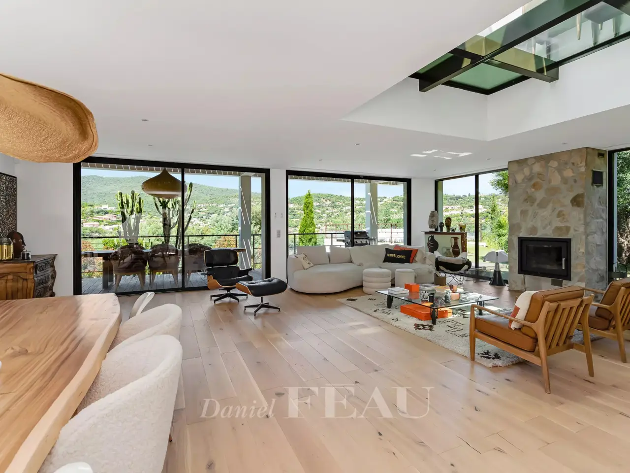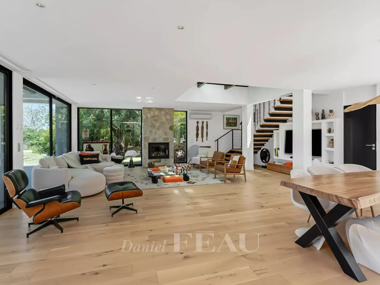 This entirely renovated mid-20th century property is located in a sought-after neighbourhood a stone’s throw from the beaches and the shops. It includes a 64 sqm living/reception room bathed in sunshine, an equipped kitchen, three bedrooms, a shower room, and a master suite with a shower room opening onto a balcony with a sundeck enjoying an open view of the sea and the surrounding hillsides. The garden level comprises a self-contained apartment with a kitchenette, a bedroom and a shower room. The garden features a 12 x 4 metre heated swimming pool and a pool house.