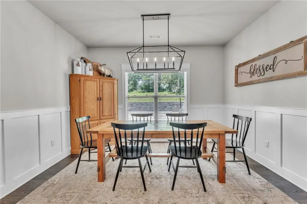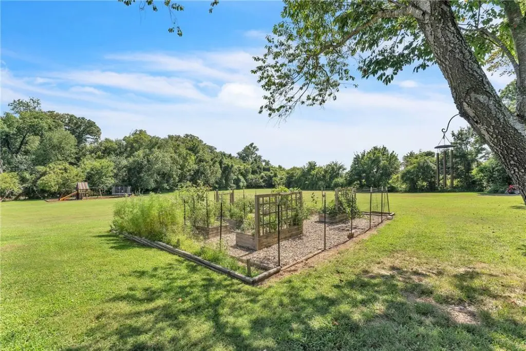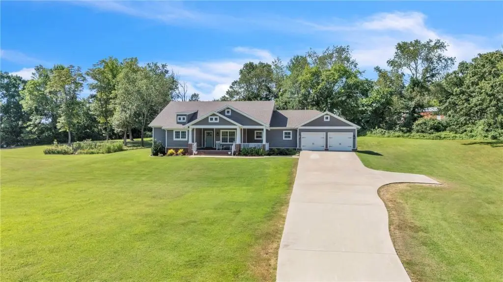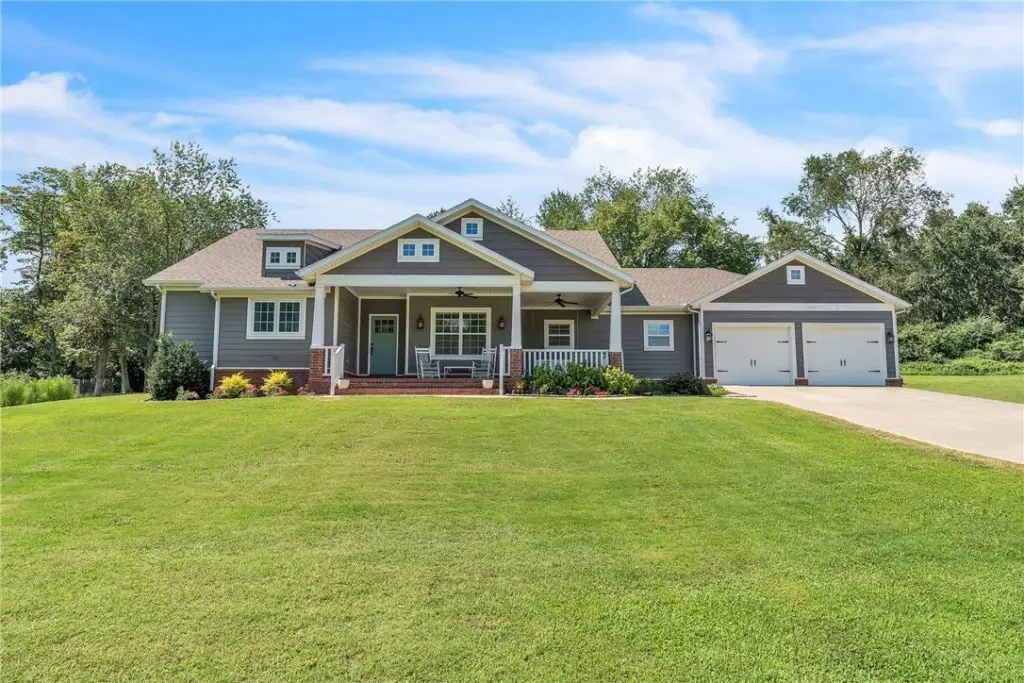 Welcome home to this stunning 4 BR 3 BA craftsman-style farmhouse on 6.23 acres. Nestled on a South facing hillside, this unique one-owner custom-built home offers the ideal blend of privacy & community. Enjoy serene countryside living while still benefiting from subdivision access to amenities including pool, clubhouse, & play area. The interior features an inviting open-concept layout with bedrooms on corners surrounding the central living space and large screened-in porch. The kitchen is a true gathering space, complete with floor to ceiling cabinets, pantry, gas range, coffee bar, & oversized island with bar seating & adjacent dining space-perfect for casual family meals or entertaining guests. Great primary suite with soaker tub & separate walk-in shower. Outdoor recreation space includes a 30'x50' rear patio perfect for pickleball or gathering around the outdoor fireplace, a mulched playset area, 100' zipline, & 40'x30' fenced garden with raised beds. Deep 2 car garage with storm shelter safety room.