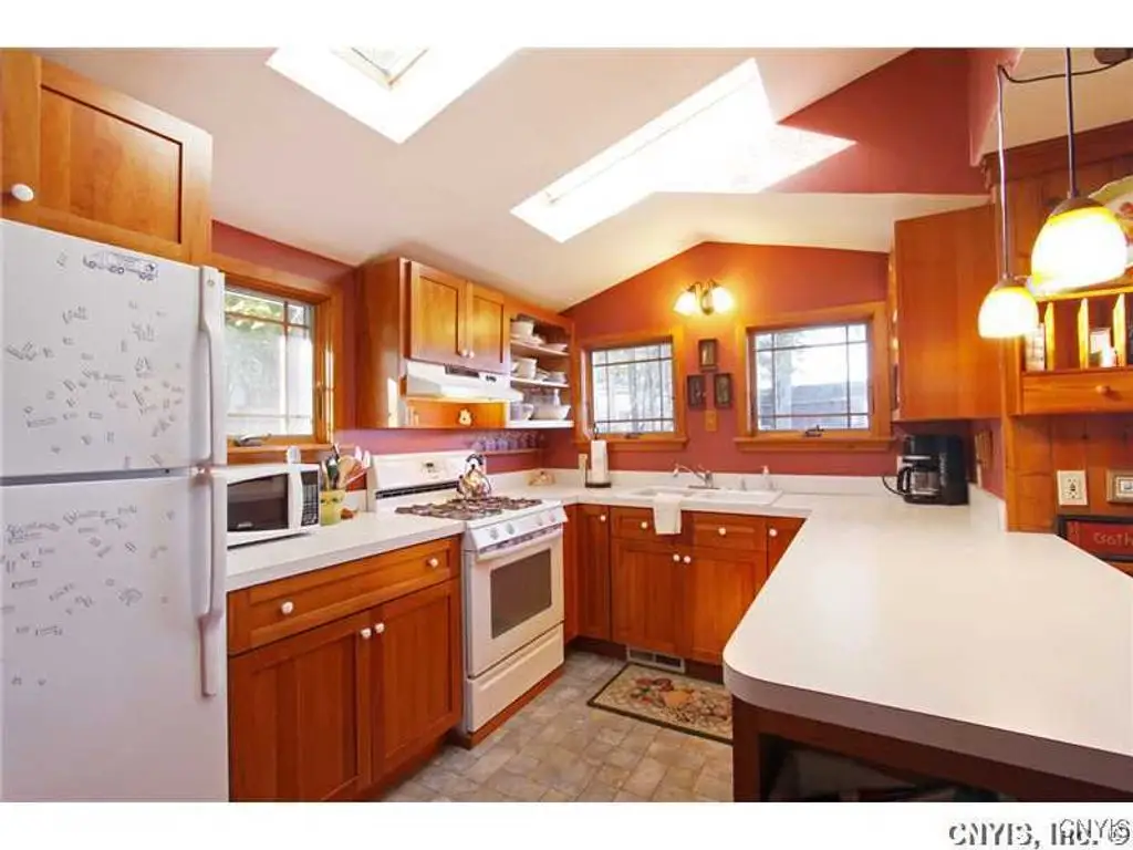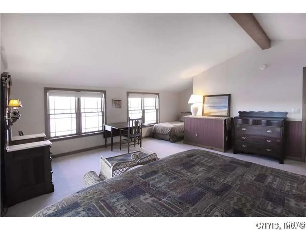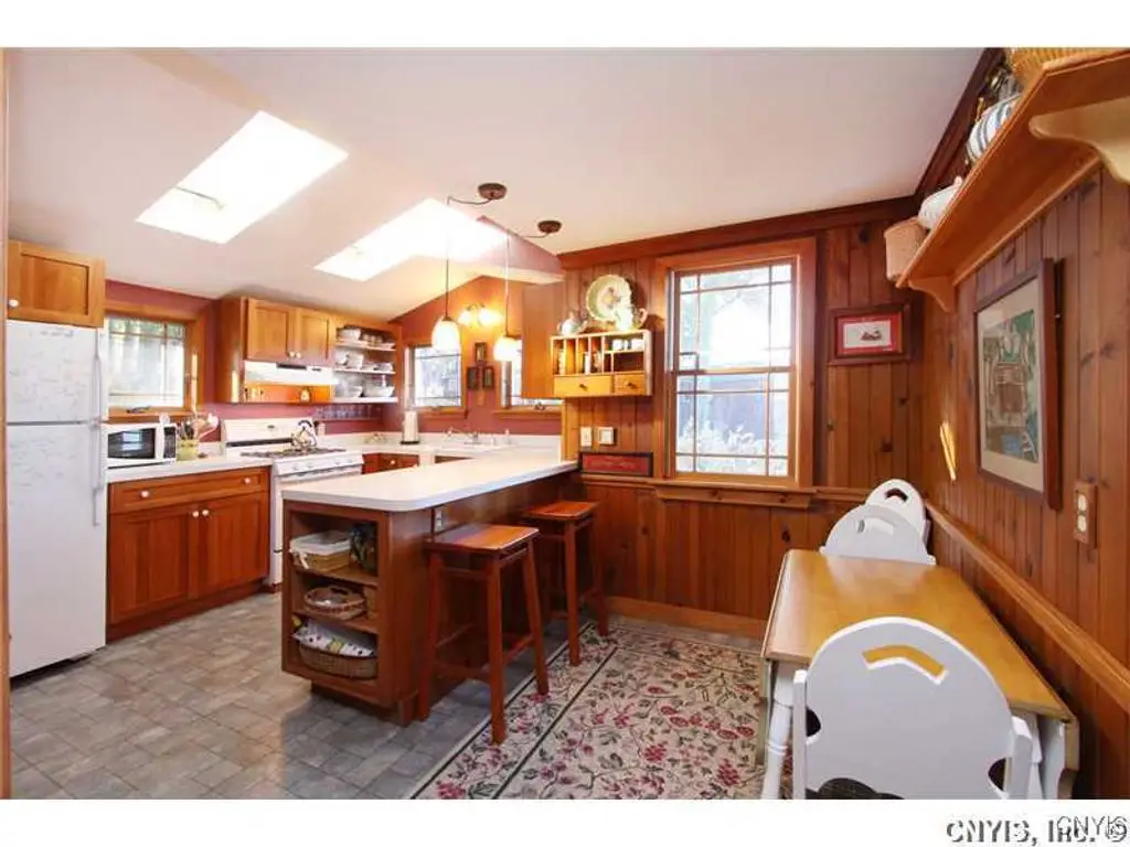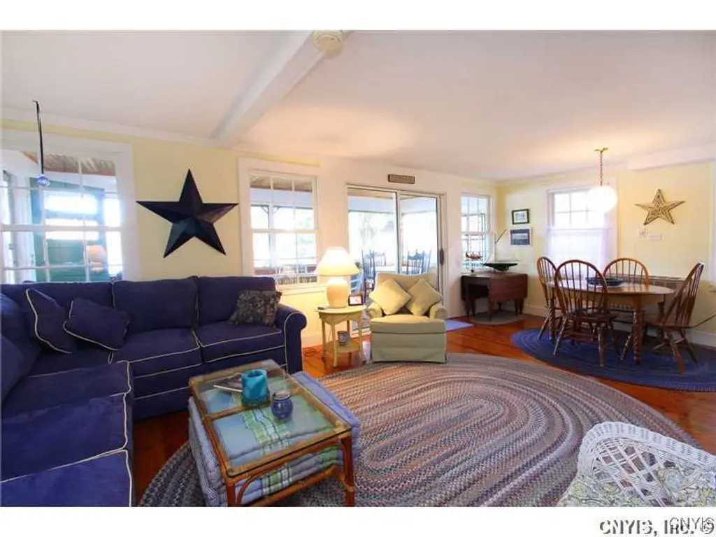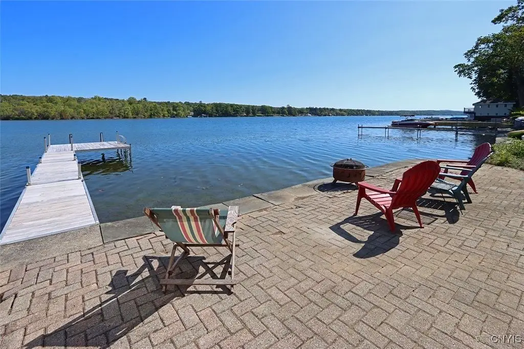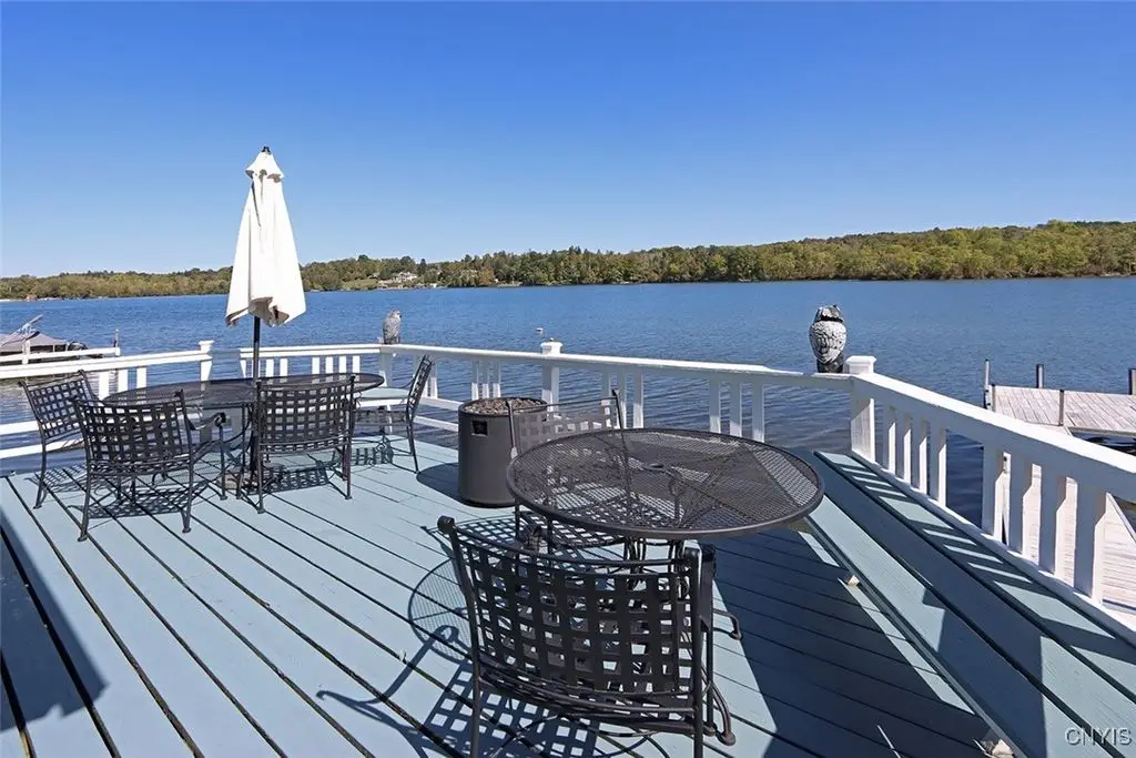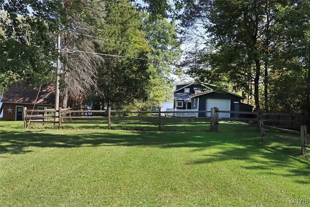 Two furnished waterfront cottages on Cazenovia Lake for the price of one, set directly across from the Forever Wild Nature Preserve. This unique offering provides an ideal setting for seasonal gatherings, overnight guests or simply enjoying lakeside living from two distinct yet complementary homes. With spacious interiors, outdoor areas and tranquil water views, it's designed for comfort and relaxation. The lower cottage is full of character, featuring knotty pine walls, hardwood floors and sweeping views. The eat-in kitchen, brightened by skylights, opens to the dining room, while a small alcove can serve as a reading nook, home office or guest space. The family room, accented by a wood ceiling and freestanding fireplace, includes walls of sliders that lead to a generous deck where you can watch the sunrise shimmer across the lake. Upstairs, the primary suite offers a vaulted beamed ceiling, walk-in closet, full bath and laundry center, all enhanced by peaceful lake scenery. The upper cottage, framed by a charming picket fence, presents its own welcoming presence. A foyer with sitting area and open staircase sets a warm tone. The kitchen offers generous cupboard and counter space, flowing seamlessly into a great room that opens to the dining area. A relaxing screened porch offers a wonderful spot to enjoy lake breezes. This home also features three bedrooms, two full baths and its own laundry center. Outside, a dock provides direct access to the water for swimming, boating or fishing. The garage has space for boat storage and seasonal equipment. Just a short drive from shopping, restaurants, schools and major roadways, these two cottages together create a waterfront retreat with comfortable, welcoming spaces indoors and out.