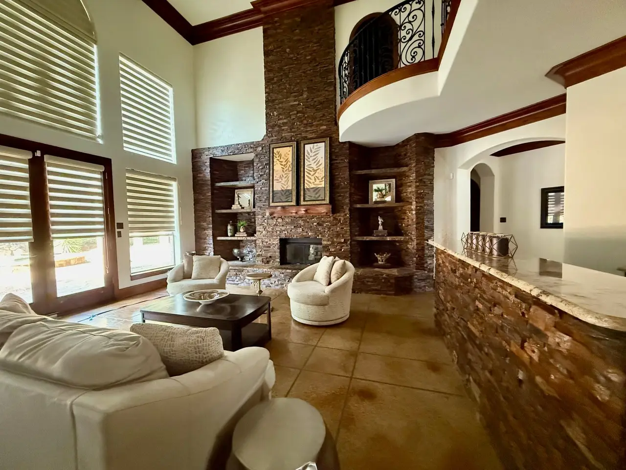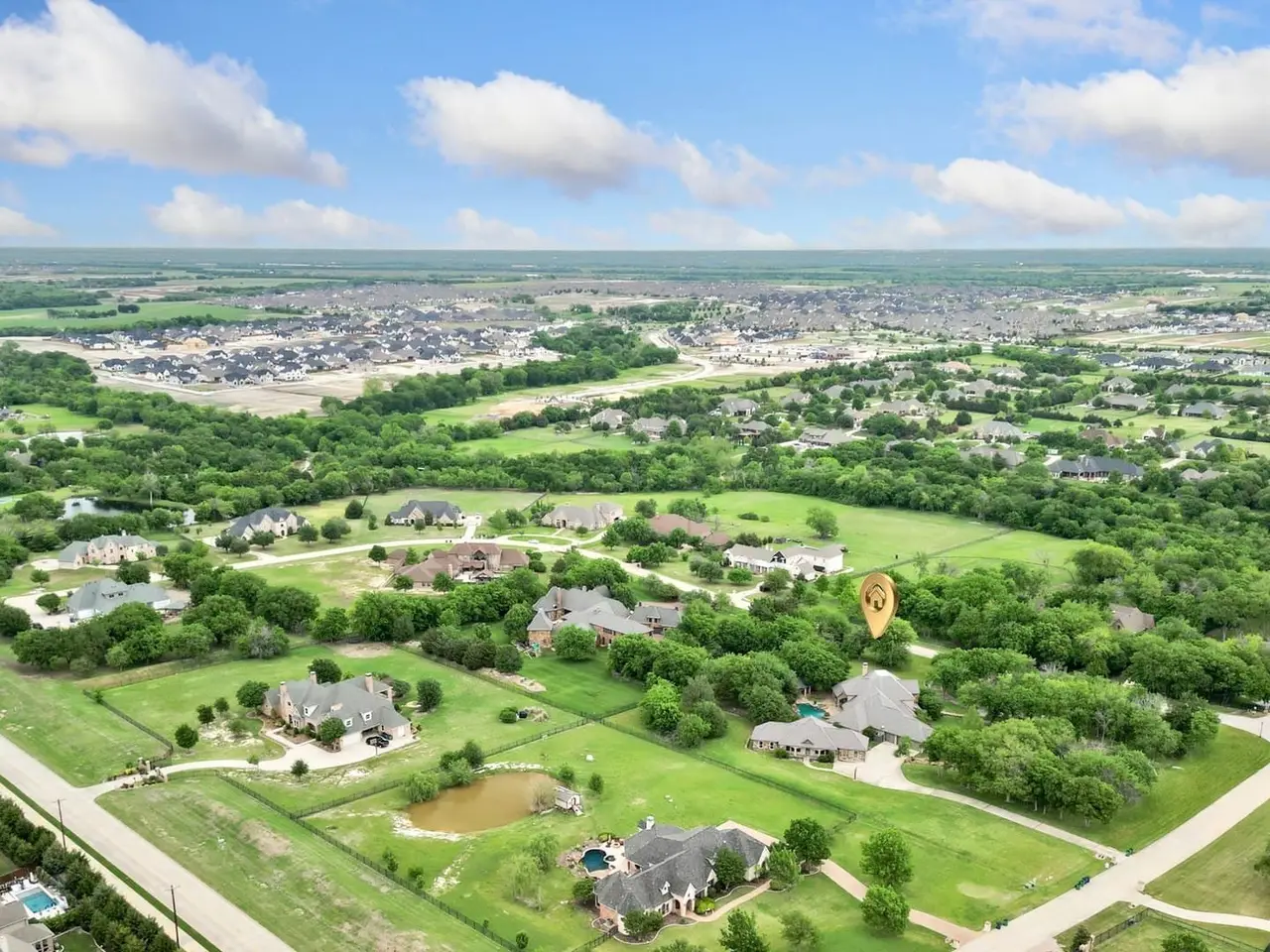 A Private Oasis in Twelve Oaks Estates: Your Yellowstone-Inspired Ranchette! This one of a kind Luxury Custom and Guest House - Peaceful and Private living in Twelve Oaks, situated on 3.45 acres with a private pond & fountain. Spectacular drive- up, as the main home, is perched over a beautiful private pond with fountain, a park-like setting surrounded by trees. From the full circle driveway, a hitch for your horses and stone steps lead up to the full covered porch and commanding double doors. Multi-Generational w Full Guest House in Twelve Oaks Estates on 3.45 acres. The Best of Both Worlds- living in south Celina and in Prosper ISD. Designed for Entertaining with a 1st Floor MEDIA includes screen, projector & stadium seating. The Living has 2 story high tall windows, stacked stone fireplace, flanked with stone shelves and a full bar. Appointed with custom millwork, moldings & polished concrete floors. Primary suite has a fireplace, exercise room. The spa-like Bath has vessel sinks, granite counters, huge shower, & sauna. The 2nd Bedroom down has a full bathroom. Upstairs leads to an amazing landing & balcony with two split Bedrooms each w ensuite baths,+ a fun Flex-living space. Resort living-lagoon Pool, Spa, Firepit, Octagonal covered Gazebo with a stone mantled fireplace and hearth Multiple patios, space for Horses to roam, kids to play soccer & fish at your private pond. MECHANICS: DaVinci 50 yr Roof Class IV Rating installed 2019, Foam Insulation for energy efficiency - main house. New Spa Heater installed - 2025, the private Pond- recently upgraded deep well for outdoor irrigation- a huge savings on water. Lot -3.45 acres - dimensions-374 ft x 383 ft, City Water and Sewer service for the home.*Where else can you find a near square interior lot with 3.45 acres, with both a Luxury Home, Separate Guest House, Resort Pool, Spa Gazebo, plus allow Horses? It's all about the Land Celina & Prosper ISD - Walnut Grove High.