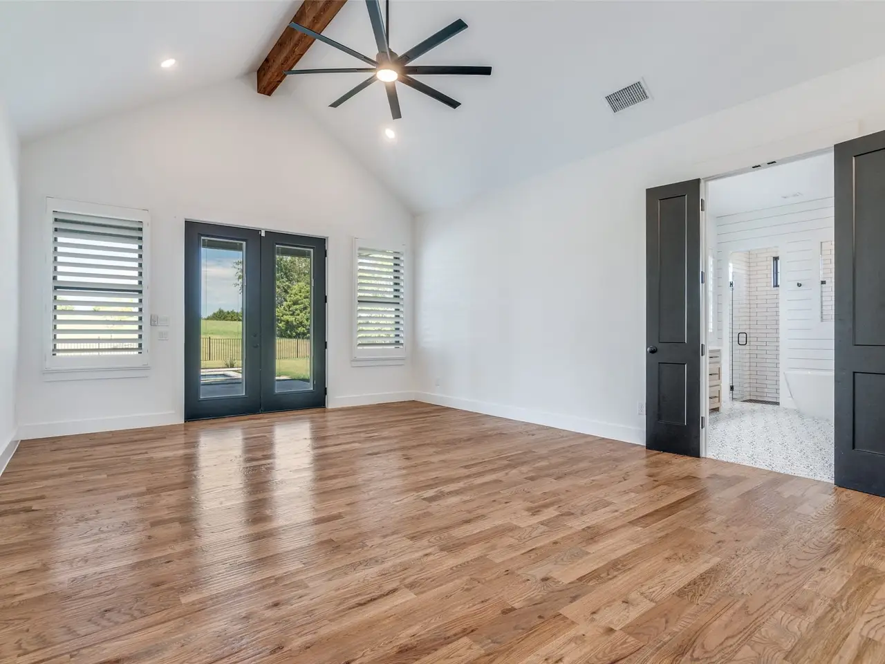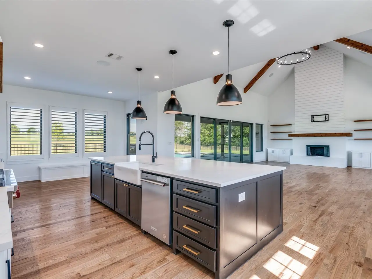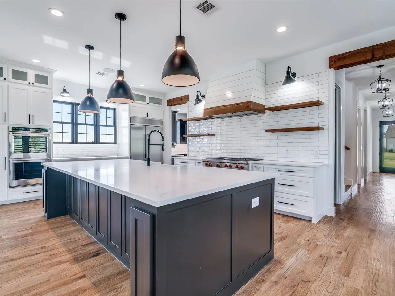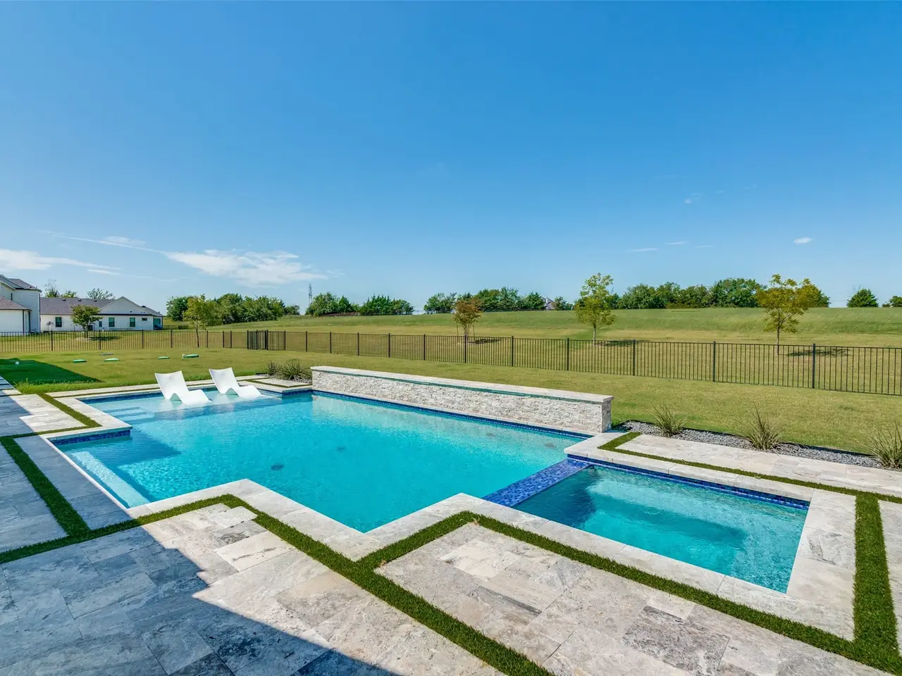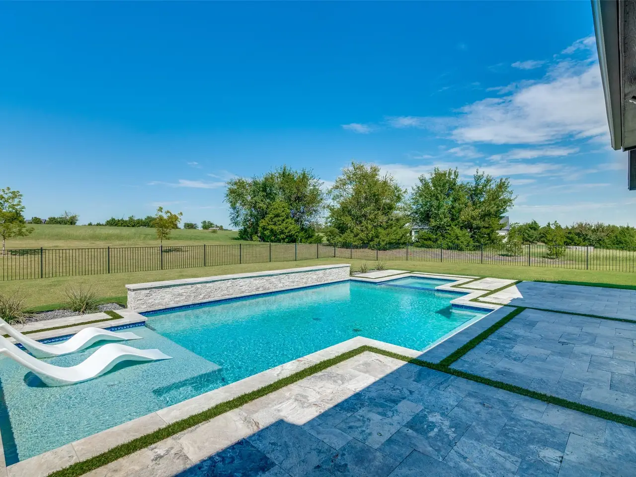 Enjoy the serenity and privacy of your own slice of a Texas ranch, all while maintaining a strong sense of community. This beautiful five-bedroom, four and a half-bath home is ideally situated on 2.2 acres. Upon entering through the double doors, you'll be greeted by a light-filled Great Room where attention to detail and design is immediately evident. The modern aesthetic of white counters and walls contrasts beautifully with black cupboards and woodwork, while warm wood floors and beams provide a traditional touch. This spacious room, large enough to accommodate additional dining, features a cozy fireplace and a wall of windows overlooking the tranquil, oasis-like backyard. The kitchen, open to the Great Room, is a chef's dream with a six-burner Wolf Range, double ovens, a built-in refrigerator and a farmhouse sink. Ample kitchen storage is further enhanced by an extra-large pantry. An attached Breakfast Room and Breakfast Bar offers plenty of space for casual dining. The first floor Primary Bedroom boasts panoramic views of and direct access to the pool area, complete with a convenient coffee bar and drink refrigerator. The Primary Bath is a luxurious retreat, featuring a free-standing tub and a double shower. Remarkably, a discreet safe room is tucked away within the Primary Suite. A dedicated study is located adjacent to the Primary Bedroom, and another first floor bedroom with an en-suite bath provides privacy for guests. The first floor is completed by a Media Room, a separate office space, and a utility room. Upstairs, you'll find a light and airy space offering three additional bedrooms, two baths, and a spacious Game Room. Step outside to discover an inviting outdoor living space with a covered patio & a built-in grill. Your private resort is complete with a tanning deck in the pool, a relaxing spa, & an elegant water feature. Finally, a three-car attached garage with additional storage provides easy access. This exceptional home is also zoned for award-winning Celina schools. Welcome to the Hills of Lone Star.