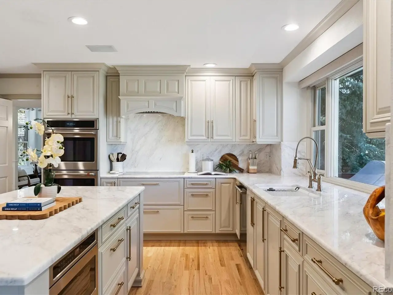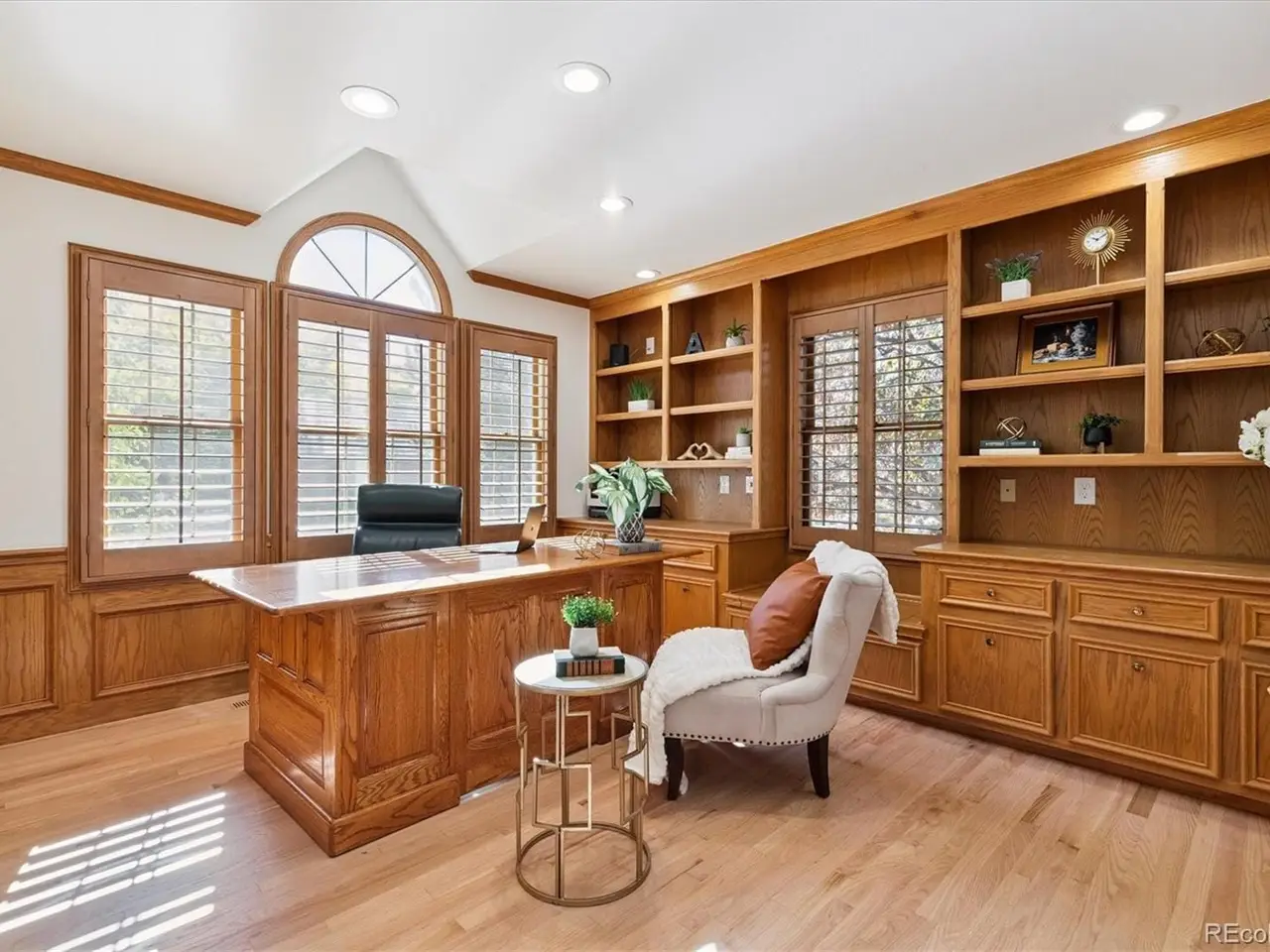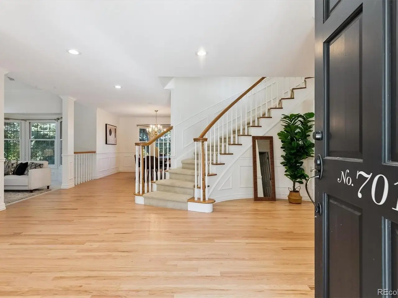 Executive Home in Homestead at Willows End. Nestled on a private circle backing to open space with sweeping Front Range views, this stately brick residence combines timeless architecture with modern luxury. A rare layout offers four bedrooms on the same floor, each with an en suite bath, plus a private fifth guest suite on the lower level. The expansive primary retreat includes a private deck, dual walk-in closets, and a luxurious five-piece bath. The newly remodeled 2025 gourmet kitchen features custom cabinetry, dolomite counters, a large island, walk-in pantry, and GE Café appliances, including an induction range, dual ovens, vent hood, under-counter microwave, and dishwasher. The breakfast area opens to a covered deck overlooking the professionally landscaped yard and open space. Plantation shutters and a whole-house surround sound system allow you to control light and sound throughout the home. Refinished hardwood floors connect the bright main level, which includes a private office, dining room, living room with tray ceiling and fireplace, and a sunken family room with built-in shelving and hearth. Two powder rooms, a large mudroom with a secondary front entry, and a second stairway leading to a bonus room—ideal for a studio, playroom, or secondary home office—add exceptional functionality. The finished walkout basement is designed for entertaining, complete with a wet bar, media center, built-in speakers, and space for billiards. A large fifth bedroom provides separation and privacy for guests, while additional unfinished areas offer space for a workshop, storage, and mechanical systems, including dual HVAC units, A/C, a whole-house generator, and a utility room. Residents enjoy priority membership applications to Homestead in the Willows amenities, including pools, tennis courts, community events, and direct trail access to 120 acres of South Suburban open space. Conveniently located minutes from DTC, Greenwood Village, and The Streets at South Glenn, and served by award-winning Cherry Creek Schools—Homestead Elementary, West Middle, and Cherry Creek High. A rare opportunity to own a refined retreat that perfectly blends elegance, lifestyle, and location.