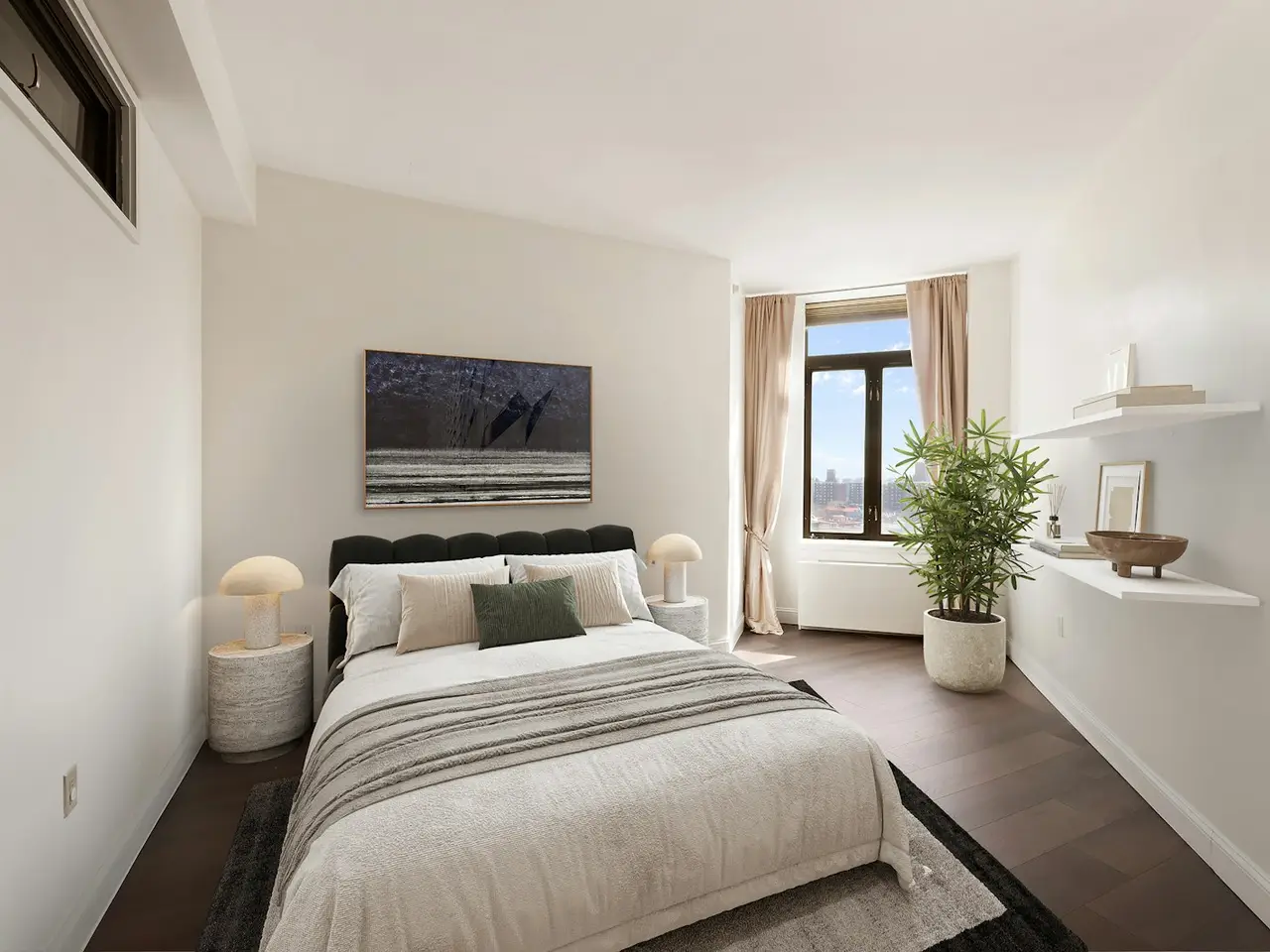 Welcome to this exciting penthouse at The Lenox, one of Harlem's original luxury condominiums. This spacious 2 bedroom (plus bonus room!) in move-in condition is highlighted by an incredible 546sf private roof deck. On the main floor, you'll find a well-appointed kitchen open to the living room creating a loft-like ambiance, perfect for modern living. 10" ceilings enhance the sunny space, which is complemented by a cozy wood-burning fireplace and eastern city views. Descend a proper staircase to the lower level, which has two east-facing, king-sized bedrooms, plus a versatile and sizable bonus area, offering flexibility for use as an office, guest room, or home gym. The primary bedroom has a huge walk-in closet and an en-suite bathroom. The second bedroom is spacious with East City views. The top level has your private outdoor space, a true oasis perfect for entertaining or simply enjoying stunning skyline views. The apartment also features a full-size washer and dryer, PTAC heat and air-conditioning units, new flooring throughout and tremendous closet space (8 closets in total, plus storage under the stairs). Residents of 380 Lenox enjoy a range of amenities, including a 24-hour doorman, live-in superintendent, fitness center, common roof deck, and parking garage. The location can't be beat, with easy access to subways, Whole Foods, Trader Joe's and all the incredible restaurants and shops along historic Lenox Avenue. Plus, enjoy the benefit of incredibly low taxes, thanks to a 25-year 421a tax abatement that runs through 2033. Don't miss the chance to call this exceptional apartment your new home!