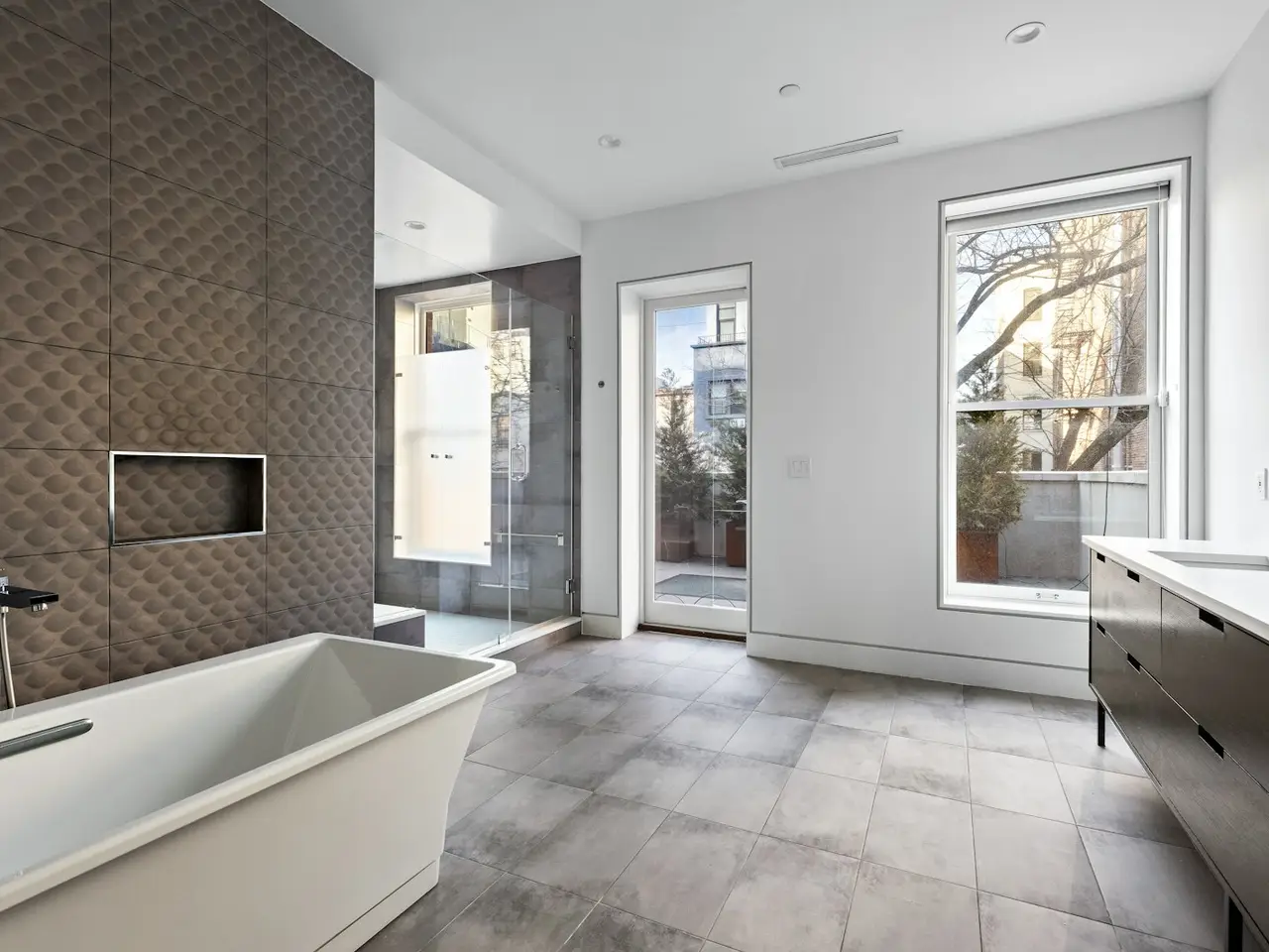 Step inside this masterfully reimagined brownstone and experience elevated modern living paired with timeless design. This extraordinary residence offers five bedrooms, 5.5 bathrooms, an internal elevator, terrace, roof deck, and rear yard. The grand parlor floor welcomes you into a luminous open layout, perfect for both effortless entertaining and tranquil everyday living. A refined neutral palette sets a sophisticated tone, while a gas fireplace, sleek tile flooring, and an original pier mirror-refinished in a soft white lacquer-nod to the home's historic charm with a contemporary twist. The chef's kitchen is as beautiful as it is functional, outfitted with custom flush cabinetry, Caesarstone quartz countertops, and a suite of high-end appliances including a SubZero fridge, Bosch dishwasher, Summit wine cooler, and Wolf gas cooktop with double wall oven. Just across the way, a skylit dining room invites intimate meals or grand gatherings, with direct access to a rear deck made for al fresco dining. Ascend the striking glass and white oak staircase to your full-floor primary suite. A walk-through custom closet leads into a spa-worthy bath, showcasing a freestanding soaking tub, double quartz vanity, patterned tile accent wall, and a glass-enclosed rain shower with bench seating. From here, step onto your private terrace-an ideal perch for quiet mornings or evening unwinding. The third floor hosts two generously sized bedrooms, each with walk-in closets and radiant-heated en-suite or adjacent baths featuring sleek chrome fixtures and glass-enclosed showers. Atop the home, the private rooftop terrace is a true showstopper. Complete with a wet bar, Wolf range, and SubZero fridge, this is the ultimate space to entertain against the Manhattan skyline. The garden level offers versatility and comfort, with a large recreation room, laundry, powder room, second wet bar, and access to the fully renovated backyard-ideal for indoor-outdoor living year-round. Additional conveniences include a video intercom system and thoughtful storage throughout. Perfectly positioned near Whole Foods, the 2/3/4/5/6 subway lines, and surrounded by iconic Harlem staples like Sylvia's, Red Rooster, and Harlem Shake, this home offers the best of city living. Spend weekends exploring Marcus Garvey Park, just moments away from your front door.