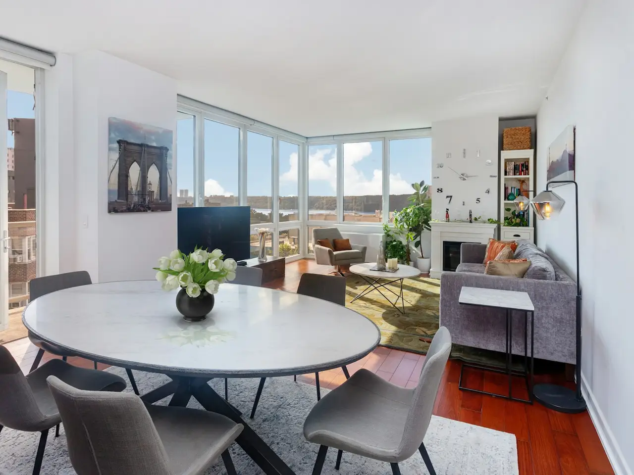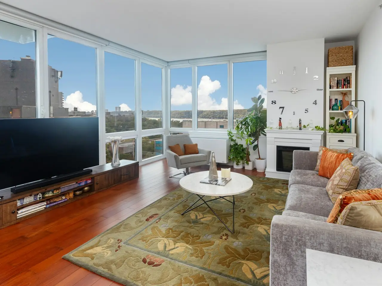 Floor to ceiling windows with city to river views