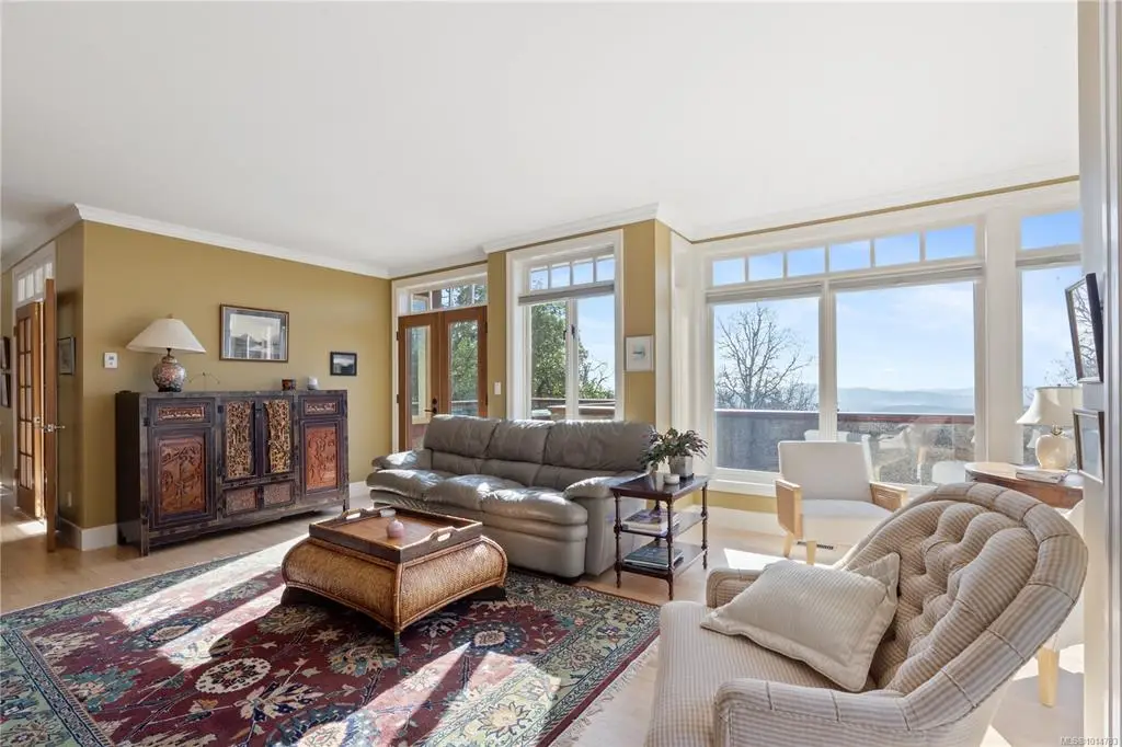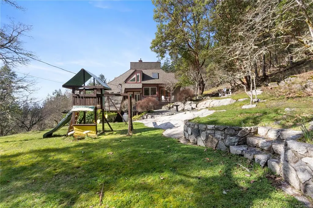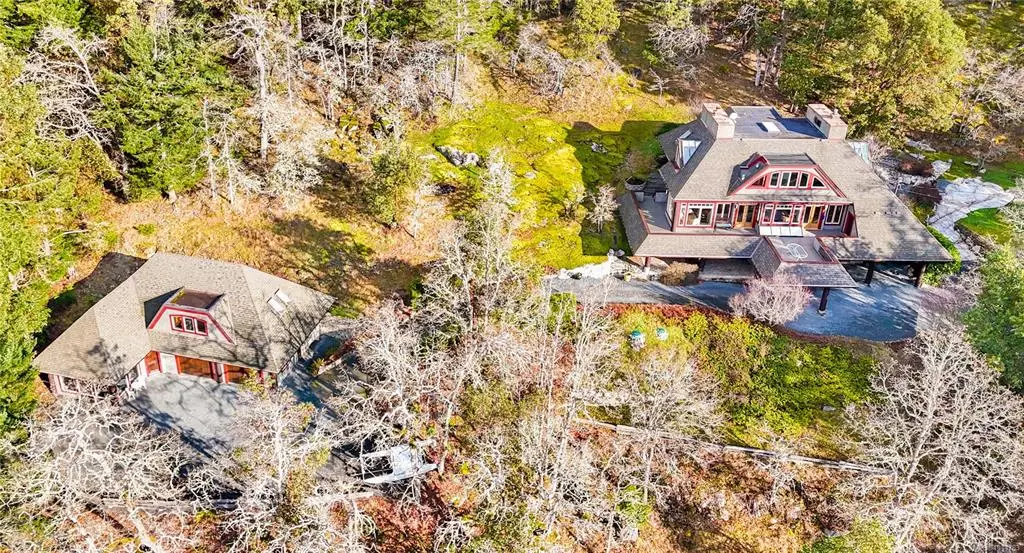 A private and and quiet view property in Central Saanich. Sitting on 10 Acres and backing on to Dean Park, this is one of the highest elevation homes on the peninsula. With full Southern exposure boasting views as far as the Olympic Mountain Range, the Saanich Inlet and Cordova bay. Entertain with ease in the beautiful modern custom kitchen and enjoy a summer evening with family and friends on the large wrap around deck. This home offers 4 bedrooms, 4 bathrooms, a Den, office and plenty of dining and living space. Outside there is more than ample parking for cars, Boat, RV or Trailer. A large detached 2090sqft Garage/Coach house allows storage for up to 6 cars in heated comfort with plenty of space for motorbikes or other things. This garage could also be converted in to additional living space. A car collector or Hobbyists dream offering great value in a desirable location. Come and see the views, space, privacy and nature in this truly unique property.