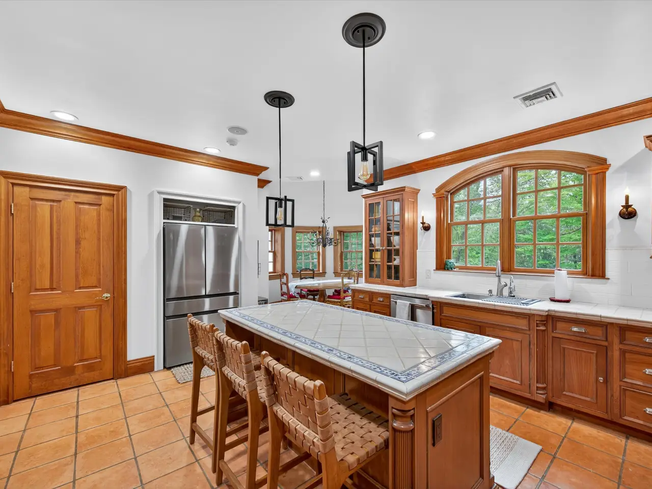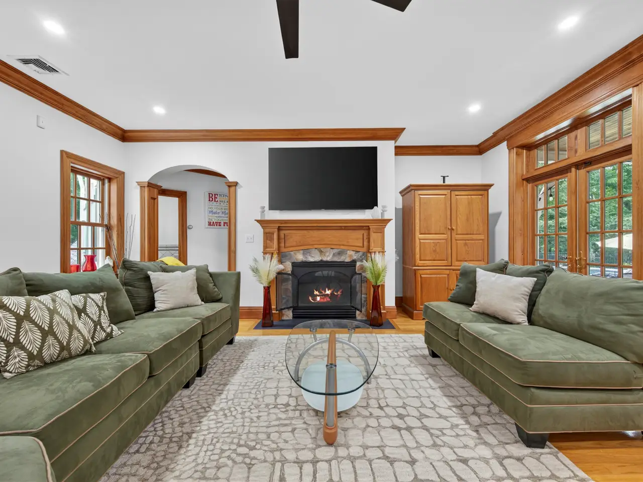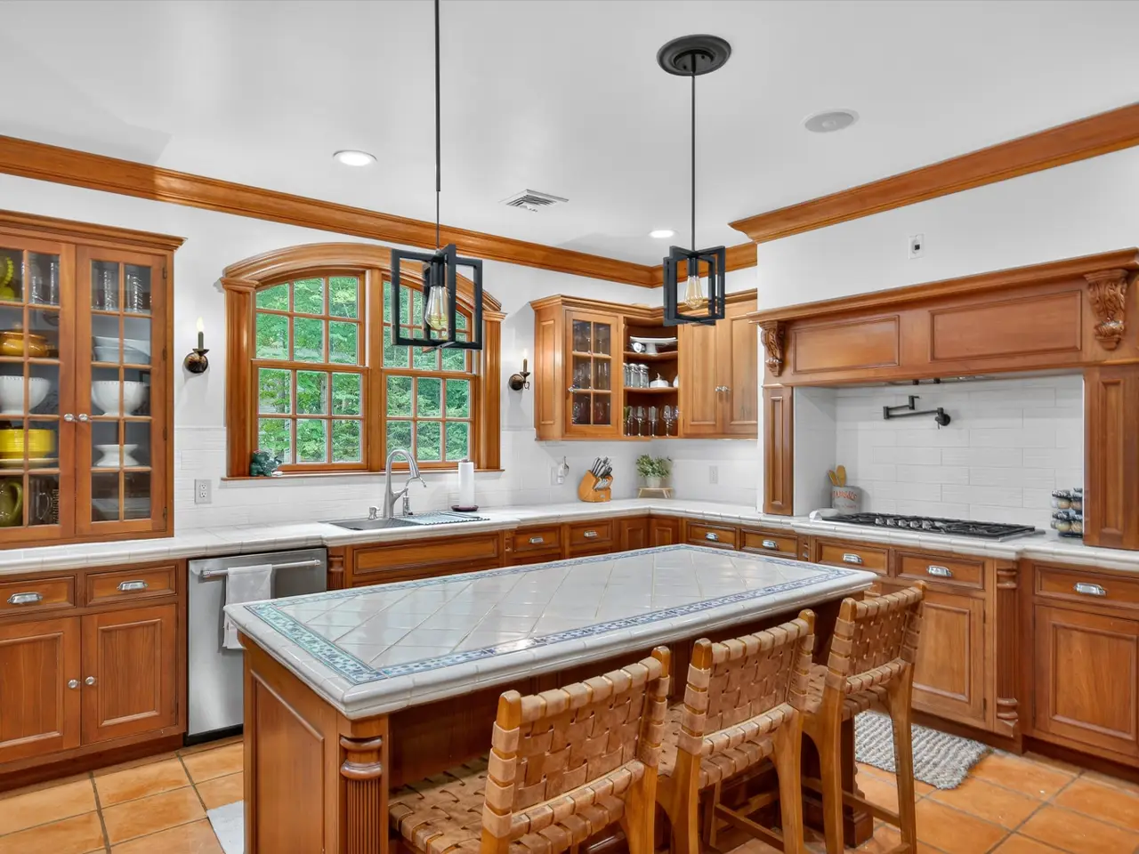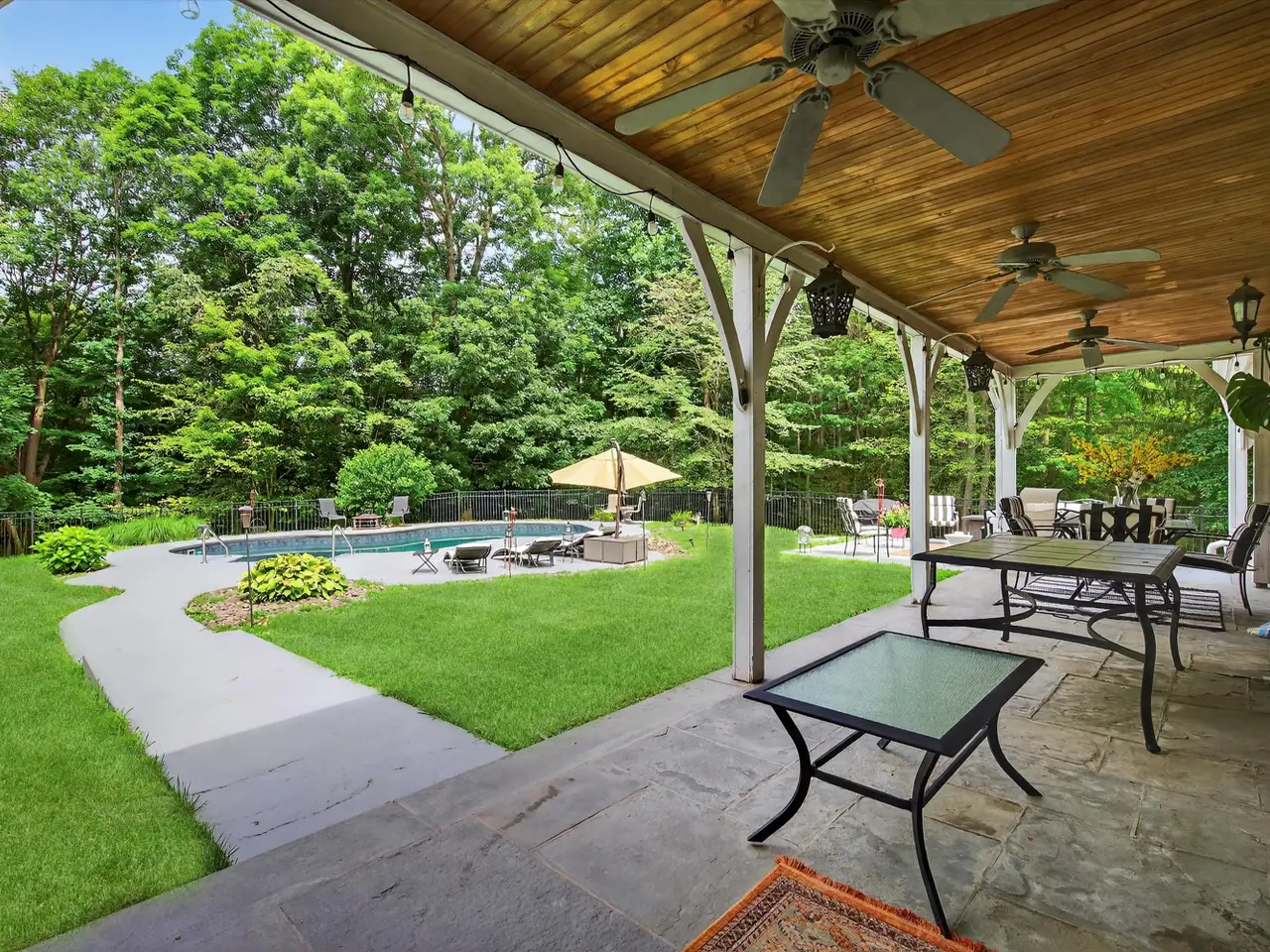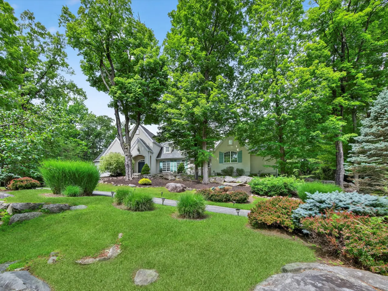 Welcome to "LE CHATEAU des VERTS" – Lives like a ranch, entertains like a castle. Discover a slice of the French countryside, perfectly perched in the Hudson Valley. Inspired by the rolling hills of Provence and meticulously crafted with timeless elegance, this one-of-a-kind home is known to its neighborhood residents as "The Castle on the Hill." It's more than a house; it's a tranquil retreat for those seeking an escape from the city, without sacrificing style or convenience. Nestled on over an acre of serene, maturely landscaped grounds, Le Château des Verts offers a true sanctuary just 30 miles north of Manhattan. The design immediately captivates you as you arrive, with a grand two-story turret and custom arched windows accented by slate-blue shutters—a nod to the classic beauty of French architecture. Step through the double front doors into an inviting foyer. The radiant floors guide you through the sprawling first-floor living area, where natural light pours in from every window, creating a warm, airy atmosphere. To the left, the formal dining room is perfectly positioned for memorable gatherings, with east-facing windows that capture the beauty of the Hudson Valley sunrise. The heart of the home is the French-Country eat-in-kitchen. Here, custom cabinetry and woodwork, along with pull-out spice drawers on either side of the five-burner stove, blend practicality with elegance. The turret space provides the ideal nook for a circular breakfast table, while the center island offers additional seating and prep space. For unwinding or entertaining, the home features two elegant living rooms, each with its own fireplace. Walls of French glass doors illuminate these spaces, offering seamless views and access to your backyard oasis, complete with a heated, in-ground saltwater pool. This is where you'll find yourself on summer afternoons, soaking in the sun and enjoying a peaceful moment. The North Wing of the home, or the "Owner's Wing," is a private escape. A nearby second bedroom, ideal for a nursery or home office, features its own set of French glass doors leading to the garden. The Owner's suite is a haven of relaxation, with high ceilings and another set of French doors that amplify the natural light. It leads to an ensuite bathroom with dual vanities, a luxurious jacuzzi tub, and a custom shower. A walk-in closet with built-ins completes this wing. Continuing to the west wing of the home, a half-bathroom, laundry room, and a spacious bonus room offer flexibility—perfect for a billiards room, library, or secluded living area. Upstairs, two generous guest bedrooms share a full bathroom, ensuring comfort and privacy for visitors. An unfinished space also leaves room for additional quarters. The walkout lower level provides a versatile living space with a full bath. A large room, currently used as a walk-in closet, has endless potential for a jaw-dropping hobby space—from a private wine cellar to a state-of-the-art recreation room with a golf simulator. A full gym and an attached three-car garage complete this incredible home. This is more than a property; it's a lifestyle you've been dreaming of.