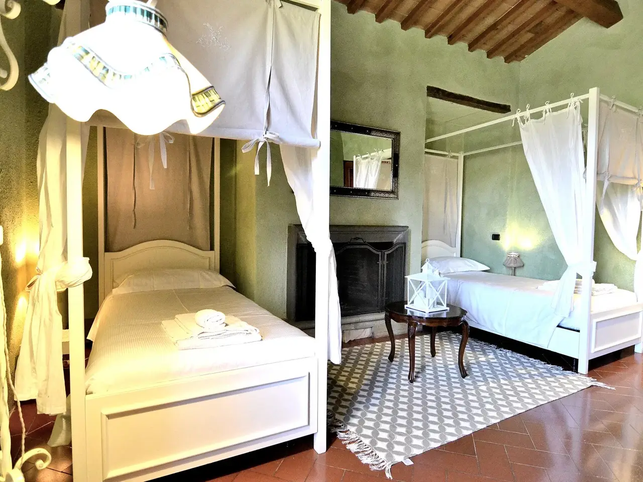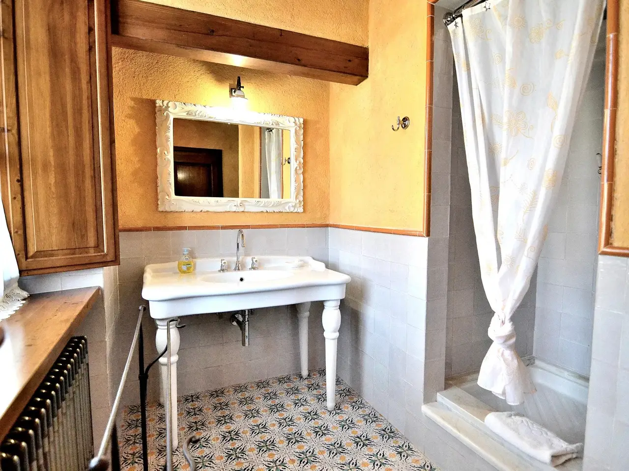 Exclusive villa completely renovated, in a panoramic position on all sides of the property. Large infinity pool equipped with sunbeds for all guests, umbrellas and a large gazebo with table and chairs. Veranda, large garden and parking area. The villa is ideal for up to 14 guests. 7 bedrooms and a total of 9 bathrooms. Air conditioning, Wifi, mosquito nets on the windows. Heated jacuzzi. 4 km from all services. Quiet and safe area, strategic for visiting all of Tuscany! Excellent and suggestive location on top of a small hill covered in vineyards and olive groves. 360 degree panoramic view. The sun sets almost in front of the veranda, furnished with a heated jacuzzi and sofas, and the swimming pool. The villa is located between Florence and Siena a few kilometers from medieval villages such as Certaldo, San Gimignano and Monteriggioni. Even the main villages of Chianti can be reached in a short time. Nearby there are also many wineries and farms where you can taste local wine and other typical products. Florence and Siena can both be reached in 30 minutes by car. You can also reach the center of Florence in 40 minutes by train from the small station of Certaldo (just 6 km from the villa, with free parking to leave your cars). The property has a large plot with a parking area inside the electronic gate. The villa is on two floors. On the ground floor you will find: - A Tuscan-style living room with sofas, fireplace, large satellite TV and table for 14 people. - A service bathroom with toilet and sink, accessible from the living room itself. - A large bedroom with comfortable queen size bed, sofa, wardrobe and private bathroom with shower, toilet, bidet, sink. The sofa located in this room can be transformed into a double bed if necessary. - A laundry room with washing machine, dryer, separate waste collection, etc. - The veranda, adjacent to the living room, is on a higher level than the pool area. Here you will find sofas to relax while enjoying the magnificent panorama and also a bathroom with shower, toilet, sink, also ideal for when you use the pool. Under the veranda we have recently (January 2022) installed a jacuzzi for up to 4 people. The roof of the veranda is waterproof, as is that of the gazebo located in front of the kitchen, on the side of the garden. - The swimming pool is 12 x 6 meters, infinity model. To reduce the amount of chlorine, the pool has a latest generation salt disinfestation system. In addition, a corner of the pool has a hydromassage (which can be activated by the special plug). The pool area is also bordered by a net that divides it from the rest of the garden, without impacting the aesthetic aspect, and is accessible via a small gate that can be closed in order to safeguard the safety of any children in your group. On the first floor: - 4 DOUBLE BEDROOMS each with large private bathroom inside. All rooms with large queen or king size bed, wardrobe, chairs or armchairs, mosquito nets on the windows, air conditioning. - 2 CONNECTING ROOMS (one double, the other twin): These two rooms are connected by a door that can be closed, since both rooms have a private door to the "common" corridor. The master bedroom also has a private bathroom, like all the others inside. The twin room, where you will find two single canopy beds, does not have a private bathroom inside. However, a large bathroom is located in the same corridor where the bedrooms are located, so twin guests can use the bathroom.