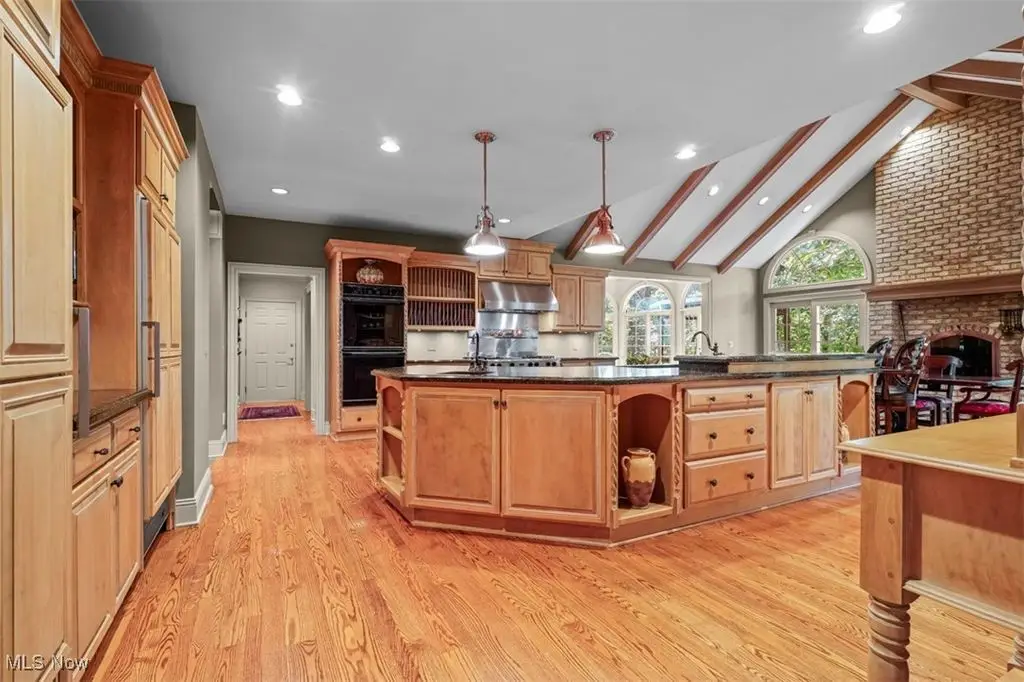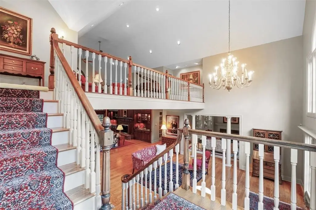 Welcome to this Canyon Lakes retreat, a custom-built residence set on a 1.6-acre double lot in Chagrin Falls (Bainbridge Township, Kenston Schools). Designed in 1993 as the sellers' "forever home," every choice reflects a commitment to quality living hardwood floors, beamed ceilings, moldings, built-ins, solid doors, brass fixtures, elegant wallpapers, and finishes that stand the test of time. With more than 6,500 sq. ft. above grade plus 3,500 sq. ft. in the walkout lower level, the home offers both open gathering spaces and private rooms for quiet moments. A soaring wall of windows topped by a stunning Palladian window floods the great room with light, while the kitchen, sunroom, formal dining and living rooms, and library provide versatility for daily living and entertaining. A walk-in pantry, mudroom, laundry, two powder rooms, and a 3-car garage complete the first floor. Upstairs, the owner's suite includes a sitting area, walk-in closet, and spacious bath with dual vanities, soaking tub, and shower. Guest en-suite and Jack-and-Jill bedrooms are thoughtfully arranged. The lower level is designed for fun and function perfect for game day, sleepovers, or holiday gatherings. Multiple recreation areas, kitchenette, full bath, and exercise space open to patios and wooded views. Decks with a gazebo invite entertaining or quiet mornings surrounded by nature. Located in sought-after Canyon Lakes, close to highways, shopping, and the Village of Chagrin Falls, this property is more than a house it's a home where memories are made, and quality is felt in every detail.
