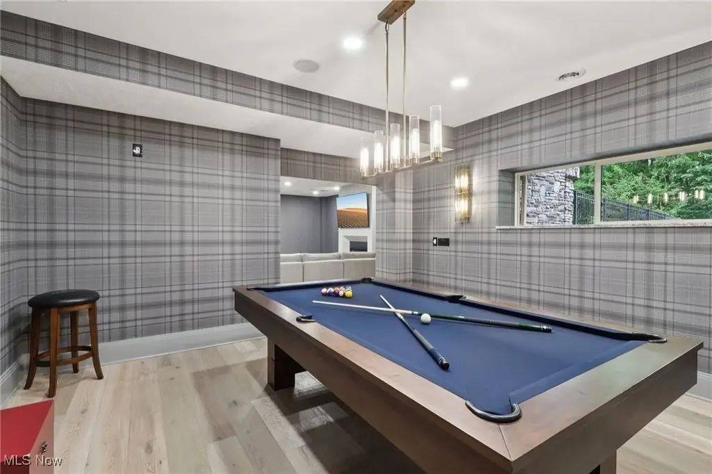 Lower level entertainment area with billiards and poker rooms