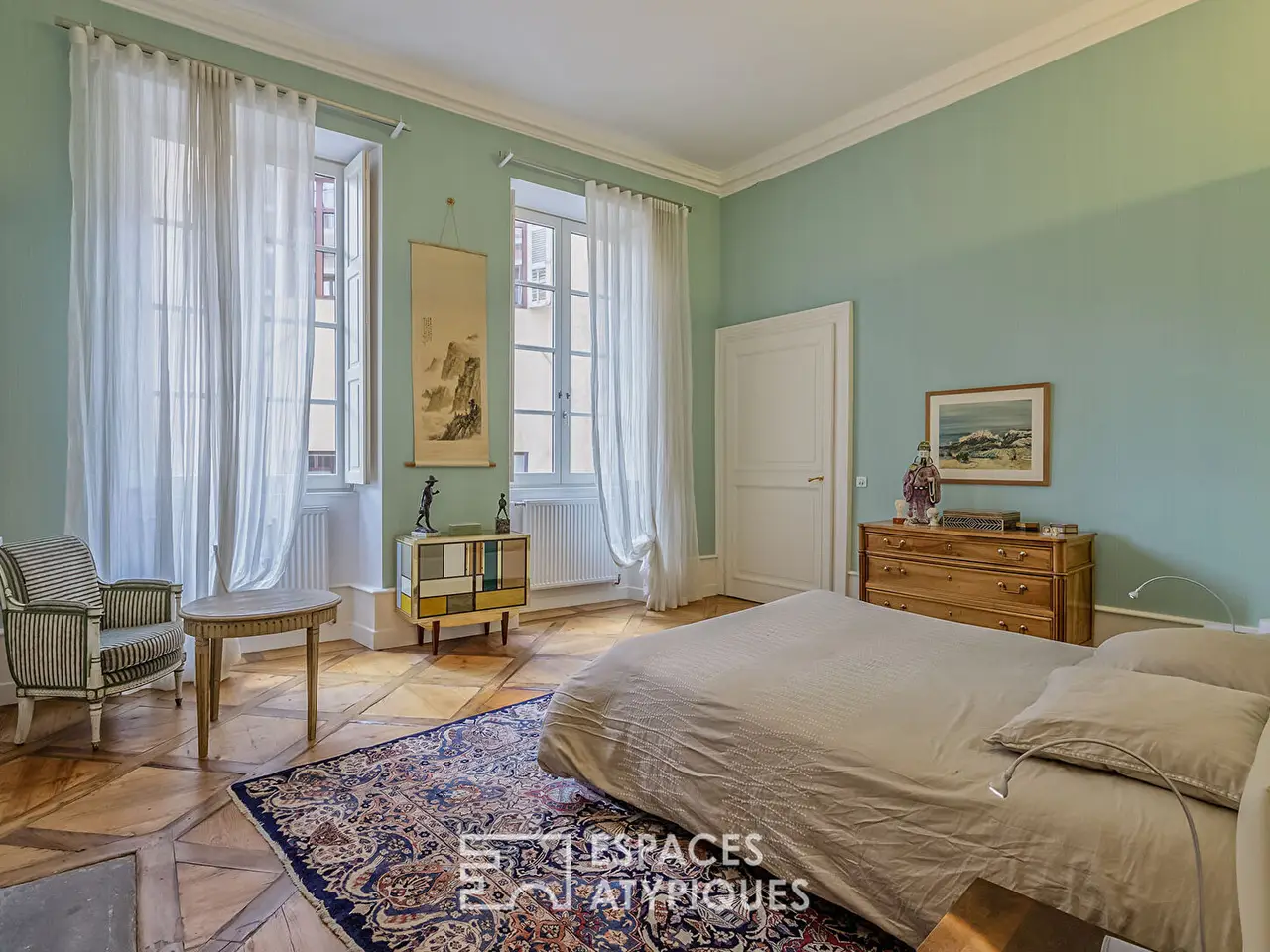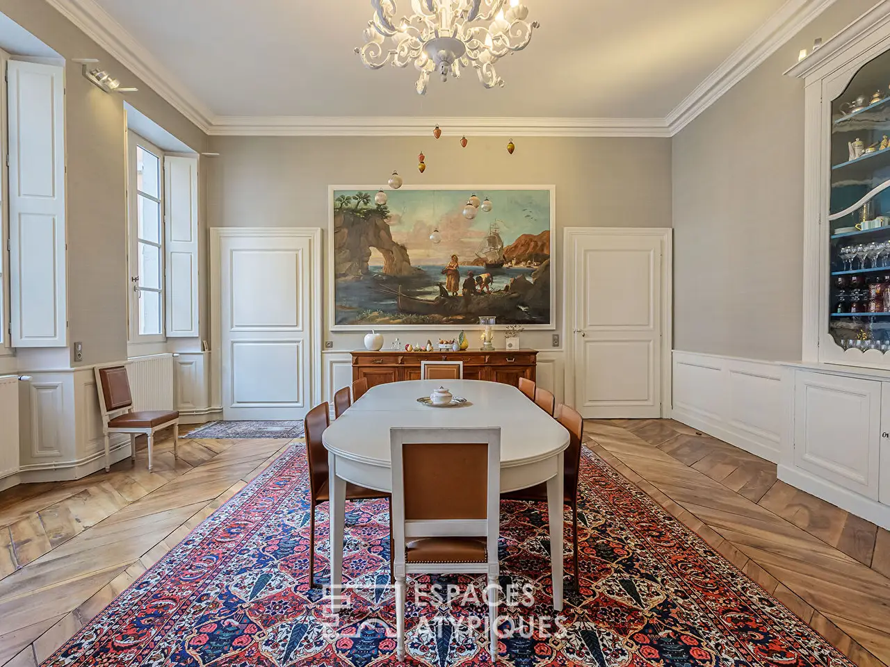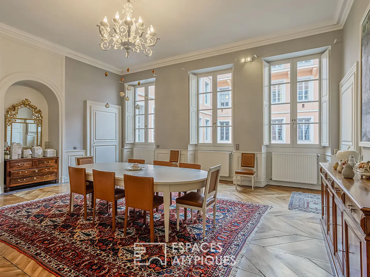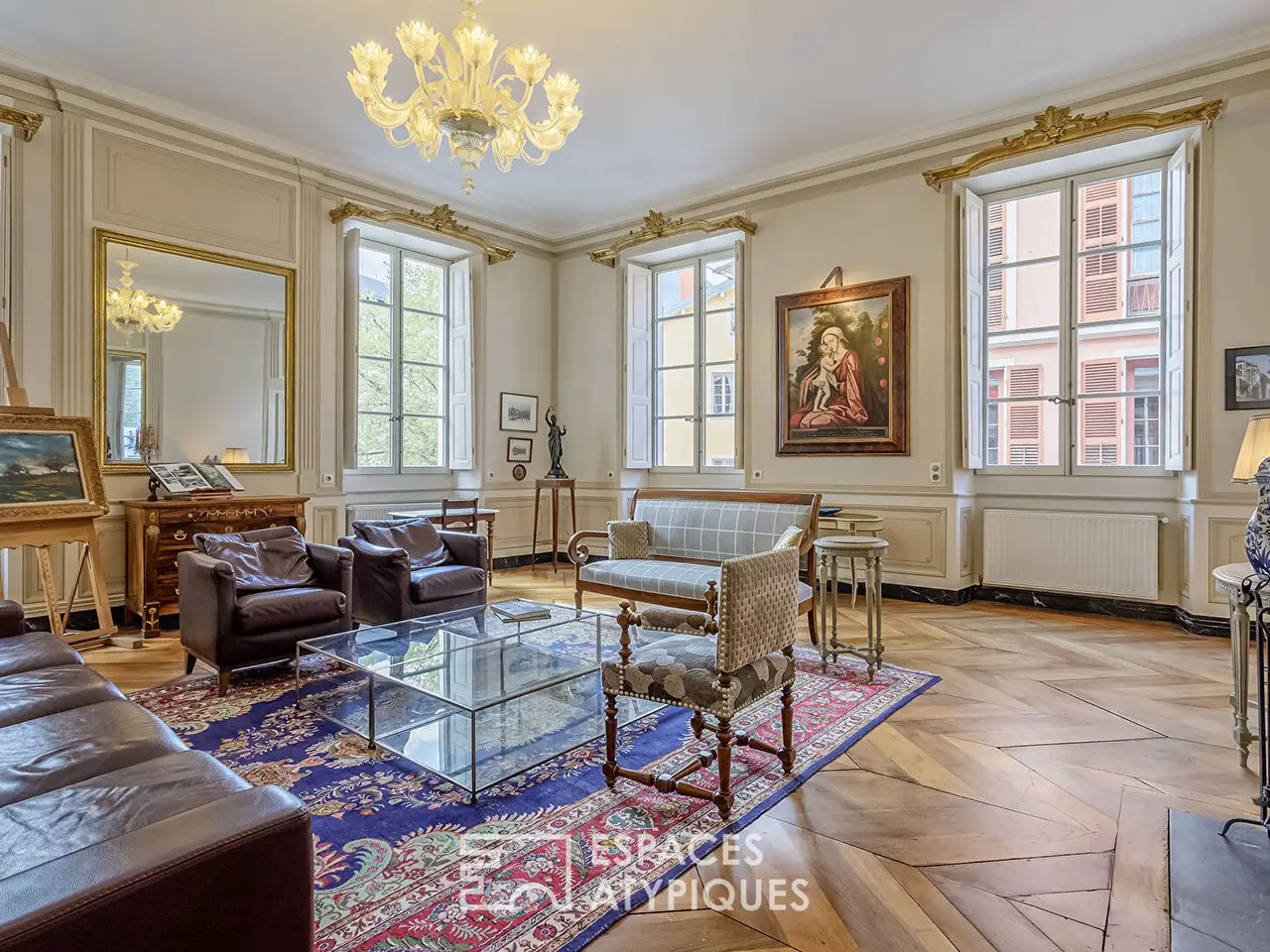 In the benevolent shadow of the Chateau des Ducs de Savoie, in the historic center of Chambery, a confidential and sumptuous universe opens up: a 360 sqm bourgeois apartment, nestled on the first floor of a private mansion steeped in history. Built by the Count of Boigne for his son, this rare living space combines the refinement of the past with the sweetness of contemporary everyday life. Upon entering, the gaze rises under the high ceilings adorned with delicate moldings, slides over the parquet floors patinated by time, then opens onto a generous living room where the light caresses the walls and reveals, over the hours, the noble views of the Sainte-Chapelle and the Place du Chateau. Receptions take place in a room designed for convivial elegance, while gastronomy enthusiasts will find in the fitted kitchen a setting for their art. Three bedrooms offer their guests a cozy intimacy, each with its own bathroom. An office with Napoleonic charm and a library, which can become a fourth bedroom, extend the spirit of distinction that inhabits this place. Every detail has been carefully preserved: frescoes, moldings, original architectural elements. Everything contributes to making this address a living tribute to the art of hospitality and the Savoyard soul. Among the rare amenities: a private garage with direct access to the apartment, a recent elevator, two cellars, an attic, as well as a peaceful interior courtyard, a true haven in the heart of the city. This property is an ode to timeless elegance, a rarity for lovers of architecture and history. Co-ownership of: 8 lots (No procedure in progress).Energy Class: D / Climate Class: C Estimated annual energy costs: between EUR3,320 and EUR4,580 (2021 base)More information on the risks associated with this property: www.georisques.gouv.fr.REF. 2000EAAdditional information* 9 rooms* 4 bedrooms* 1 bathroom* 2 shower rooms* Floor : 1* 3 floors in the building* Parking : 1 parking space* 8 co-ownership lots* Annual co-ownership fees : 1 246 €* Property tax : 3 504 €* Proceeding : NonEnergy Performance CertificatePrimary energy consumptiond : 180 kWh/m2.yearHigh performance housing*A*B*C*180kWh/m2.year27*kg CO2/m2.yearD*E*F*GExtremely poor housing performance* Of which greenhouse gas emissionsc : 27 kg CO2/m2.yearLow CO2 emissions*A*B*27kg CO2/m2.yearC*D*E*F*GVery high CO2 emissionsEstimated average amount of annual energy expenditure for standard use, established from energy prices for the year 2021 : between 3320 € and 4580 €Agency feesThe fees include VAT and are payable by the vendorMediatorMediation Franchise-Consommateurswww.mediation-franchise.com29 Boulevard de Courcelles 75008 ParisInformation on the risks to which this property is exposed is available on the Geohazards website : www.georisques.gouv.fr