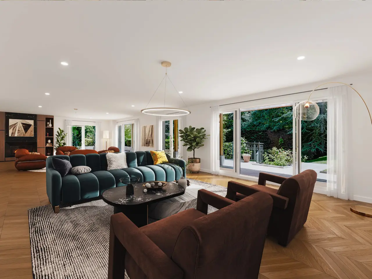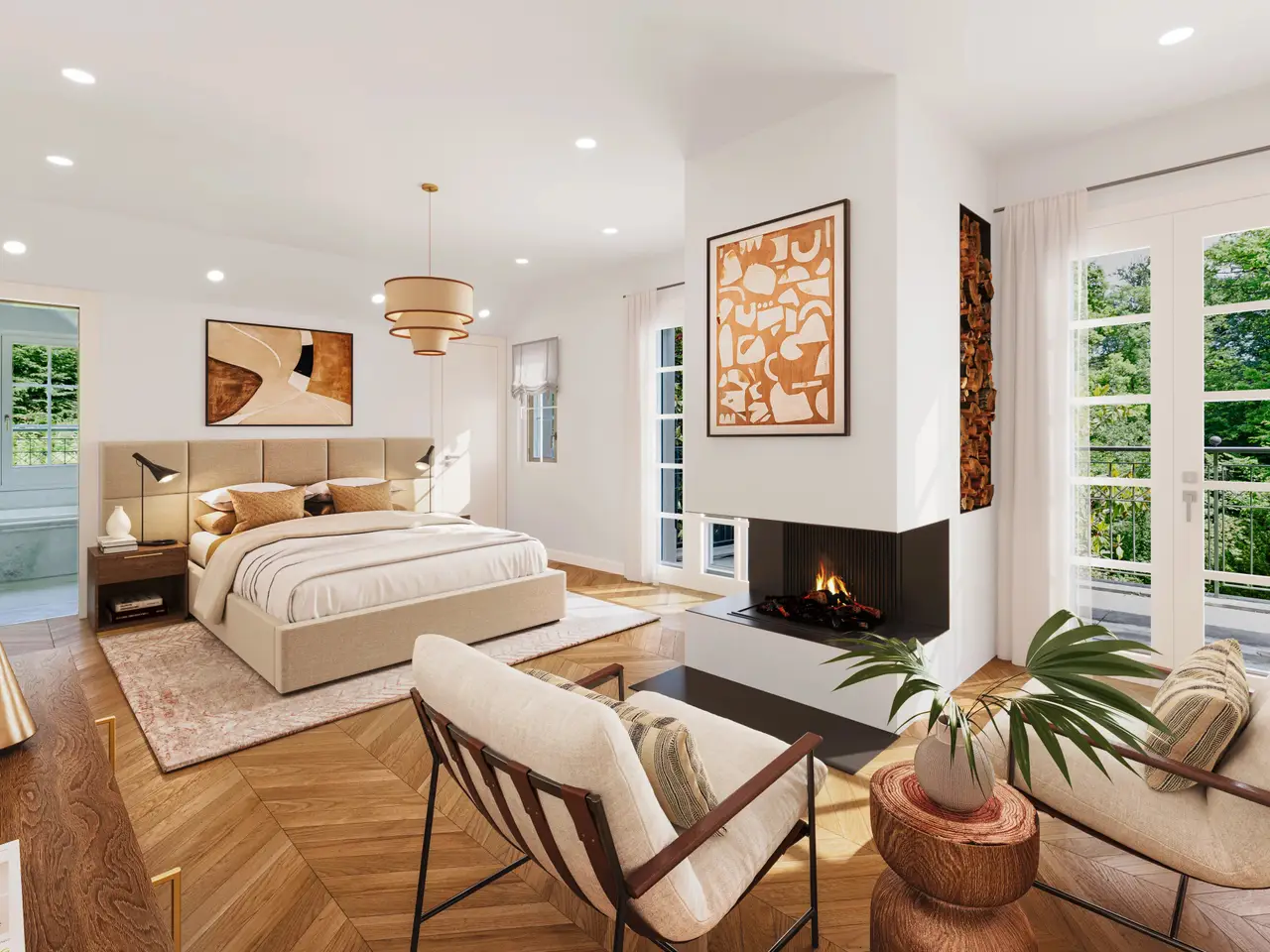 Situated in an unspoilt environment, just a few minutes from the center of Geneva, this remarkable property boasts almost 900 sqm of living space, set in approx. 4,500 sqm of wooded grounds. From the moment you enter, the generous volumes and flowing layout of the reception rooms create a welcoming atmosphere. Several living rooms with fireplaces offer different living spaces, bathed in natural light and opening onto the garden and swimming pool. Upstairs, the sleeping quarters comprise five large suites, some with fireplaces or balconies, offering each guest a comfortable and refined private space. The lower level, also on the garden level, is dedicated to well-being and relaxation. Here you'll find a spa area, gym, massage room, wine cellar and a large garage for several vehicles. Outside, the swimming pool blends harmoniously with the terrace, which can also be accessed from an oriental-style lounge designed to prolong moments of calm and conviviality. Discreet, rare and elegant, this property offers incomparable quality of life in one of Geneva's most sought-after areas on the right bank.