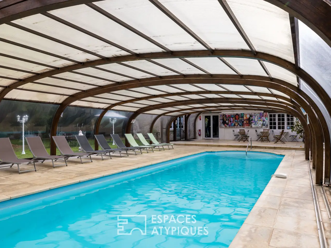 Located in Champenard, a charming little village in the Eure region, just one hour from Paris and the Normandy coast, this rare property captivates with its authenticity and exceptional potential.Built in 1897, this complex of six authentic stone buildings offers over 1,200 sqm of living space in the heart of a 12,000 sqm green park.The property combines old-world charm with generous volumes.The living spaces in the shared house are arranged around a vast 80 sqm living room with an open fireplace, a fitted and equipped kitchen, numerous games rooms, and direct access to a veritable relaxation area comprising an indoor (heated) swimming pool, a gym with sauna, a mezzanine wellness area, and basement bathrooms.The 22 bedrooms and 19 bathrooms are located in each of the 6 outbuildings. Several offices, library spaces, a unique cinema room, a separate studio, three garages, and a workshop complete the property.The property is ideal for entertaining family and friends in a unique setting. Outside, nature envelops the buildings in its tranquility.The park, punctuated by mature trees, charming paths, and a tennis court, invites relaxation and conviviality in a peaceful and inspiring setting.A general refresh will reveal the full character of this atypical property, which lends itself equally well to an investment project, a family reunion, or a shared second home.With its character, its volumes, and its timeless atmosphere, this estate stands out as a unique address where every stone tells a story and everything contributes to creating a real estate favorite.ENERGY CLASS Shared house (365sqm): G / CLIMATE CLASS: FEstimated average annual energy expenditure for standard use, based on energy prices for the years 2021, 2022 and 2023: between EUR12,570 and EUR17,080ENERGY CLASS Private house (367sqm): D / CLIMATE CLASS: DEstimated average annual energy expenditure for standard use, based on energy prices for the years 2021, 2022 and 2023: between EUR6,930 and EUR9,430Information on the risks to which this property is exposed is available on the Georisques website: www.georisque.gouv.frREF. 12994EAEAdditional information* 43 rooms* 22 bedrooms* 19 bathrooms* Outdoor space : 12158 SQM* Property tax : 14 095 €Energy Performance CertificatePrimary energy consumptiong : 428 kWh/m2.yearHigh performance housing*A*B*C*D*E*F*428kWh/m2.year91*kg CO2/m2.yearGExtremely poor housing performance* Of which greenhouse gas emissionsf : 91 kg CO2/m2.yearLow CO2 emissions*A*B*C*D*E*91kg CO2/m2.yearF*GVery high CO2 emissionsEstimated average annual energy costs for standard use, indexed to specific years 2021, 2022, 2023 : between 12570 € and 17080 € Subscription IncludedAgency feesThe fees include VAT and are payable by the vendorMediatorMediation Franchise-Consommateurswww.mediation-franchise.com29 Boulevard de Courcelles 75008 ParisInformation on the risks to which this property is exposed is available on the Geohazards website : www.georisques.gouv.fr