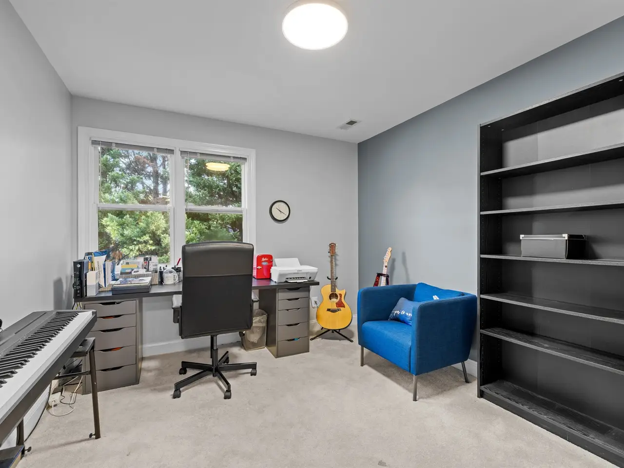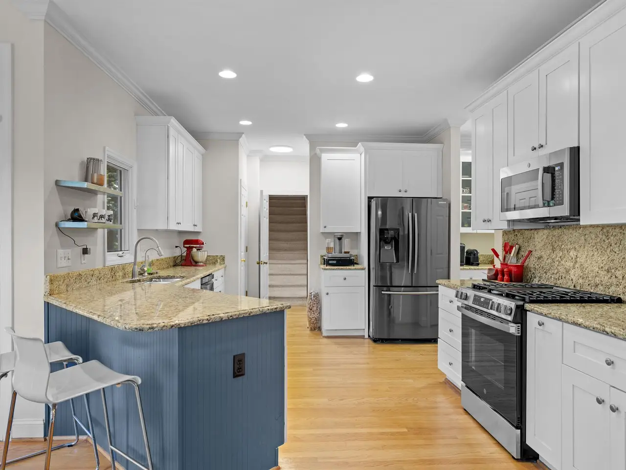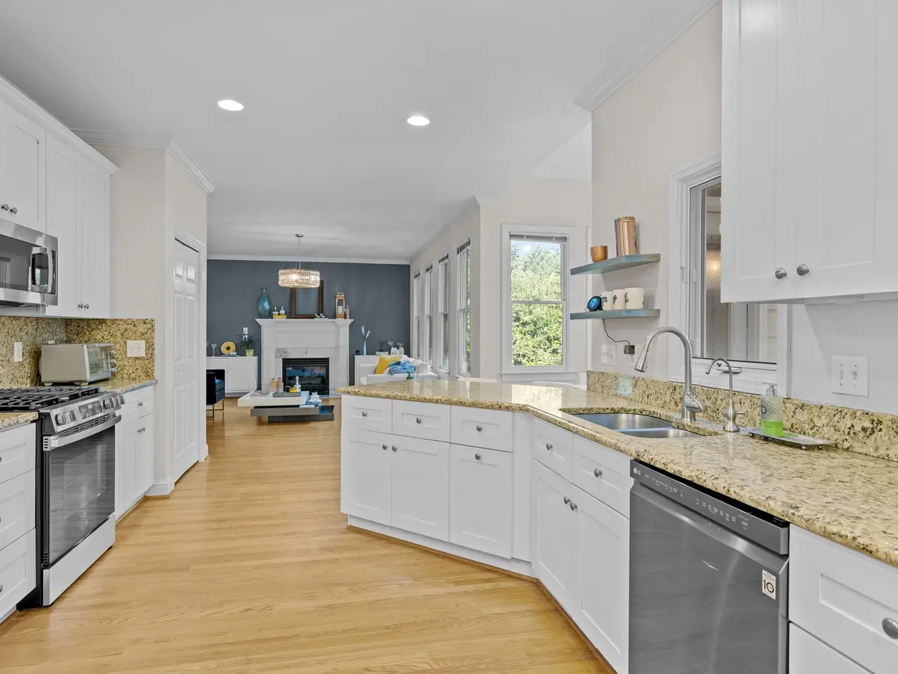 Abundant space and natural light define this beautifully updated home in the sought-after Kent Woodlands neighborhood, just a short distance to Culbreth Middle School and Carrboro High School. The spacious interior features fresh carpet upstairs, granite countertops and crisp white cabinetry. A separate staircase leads to a private bonus room, perfect for guests or a home office. The finished third floor offers soaring ceilings, custom built-in bookcases, and a versatile flex space ideal for work, play, or relaxation.