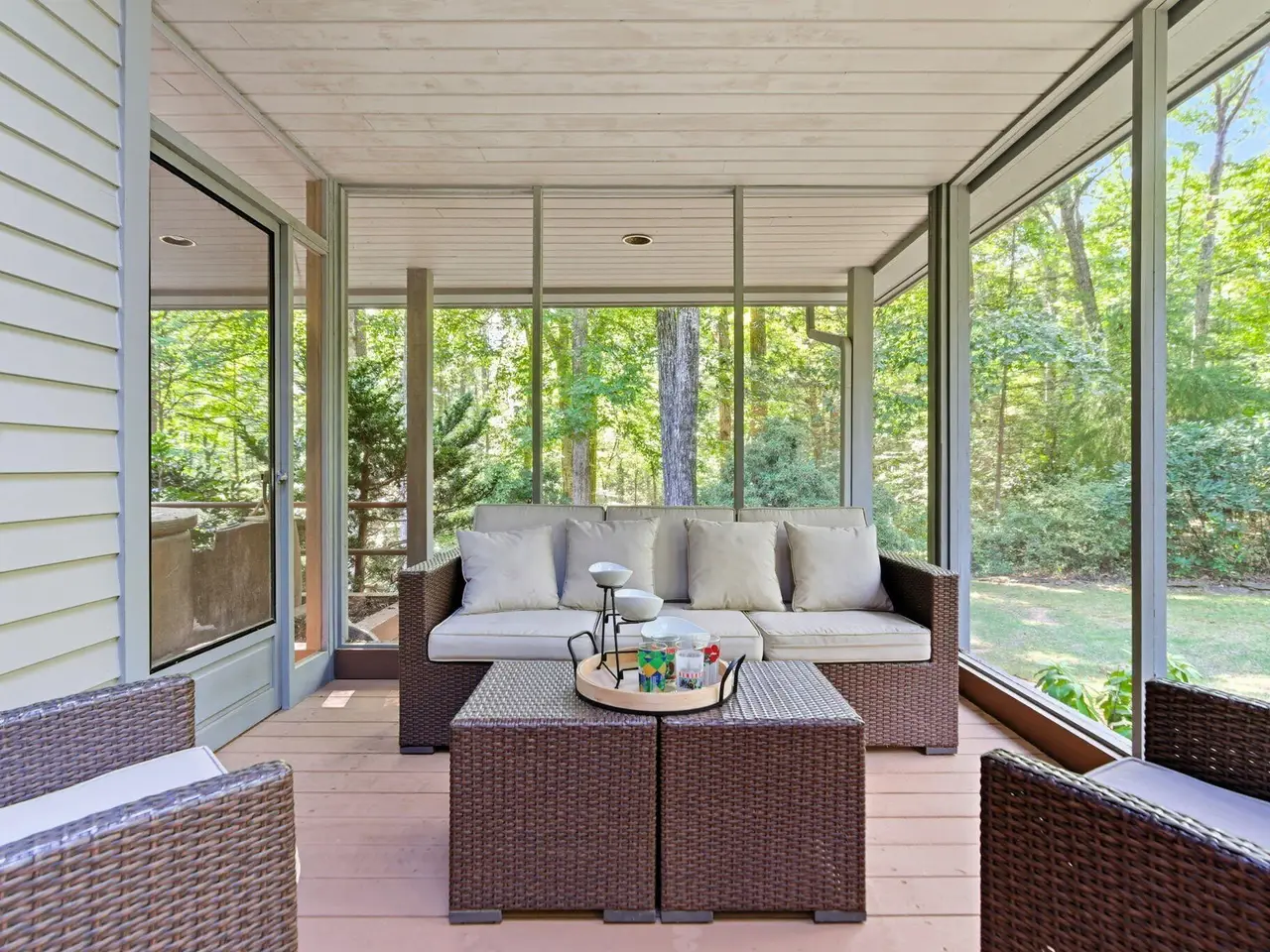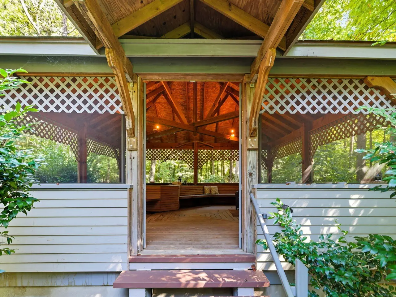 ****Last Chance before Nov 10th, Home coming off the Market, Act Now. Seller unexpectedly relocated to Spain. Dramatic price reduction, priced well below market estimates. One of a kind estate property, recently upgraded with all permits. Act Quickly! $25000 seller credit!**** Newly remodeled contemporary home on 3.39 spectacularly landscaped very private acres in Stoneycreek off New Hope Church Road. Minutes to Durham-Duke, Hillsborough, Chapel Hill-UNC, easy access to 85/40, near numerous nature preserves & walking trails. 3700+ square feet including new guest suite with full bath, kitchenette and private entrance. 10-15+ ft Vaulted Ceilings, spacious living-dining room with fireplace and large picture windows overlooking lush gardens. 3 bedrooms (all with ensuite full baths) plus additional bedroom-sitting room and 4th full bathroom. Large primary suite includes huge walk-through, cedar lined closet, spa-like bathroom, and separate open flex space for gym, office, nursery, etc. Stainless steel appliances in kitchen along with separate pantry and laundry room, 2- car attached garage with built in storage and shelves. Beautiful sunroom and separate screened porch frame large family room - office. Grounds include the 2-car attached garage, separate trellis-lined carport and huge custom screened and covered Gazebo with dining area, hot tub, wet bar and food prep space, with 1-car garage and workshop underneath. Separate irrigation well for watering gardens and lawn. Purposefully designed walking trails around perimeter and beautiful arched bridge across year round bubbling creek. Private entrance gate leads to brick paved circular driveway. Current owner just completed extensive remodel with architectural plans, engineering and full county permits in July 2025 including new guest suite, oak hardwood floors, solid wood doors, upgraded HVAC system, and numerous architectural upgrades. An unexpected move out of the country necessitates sale of dream home. Sale price includes plans for kitchen remodel with all specs, drawings, and pricing, ready to go. Almost impossible to find an estate quality home with this kind of land and privacy so close to everything. Truly a unique opportunity