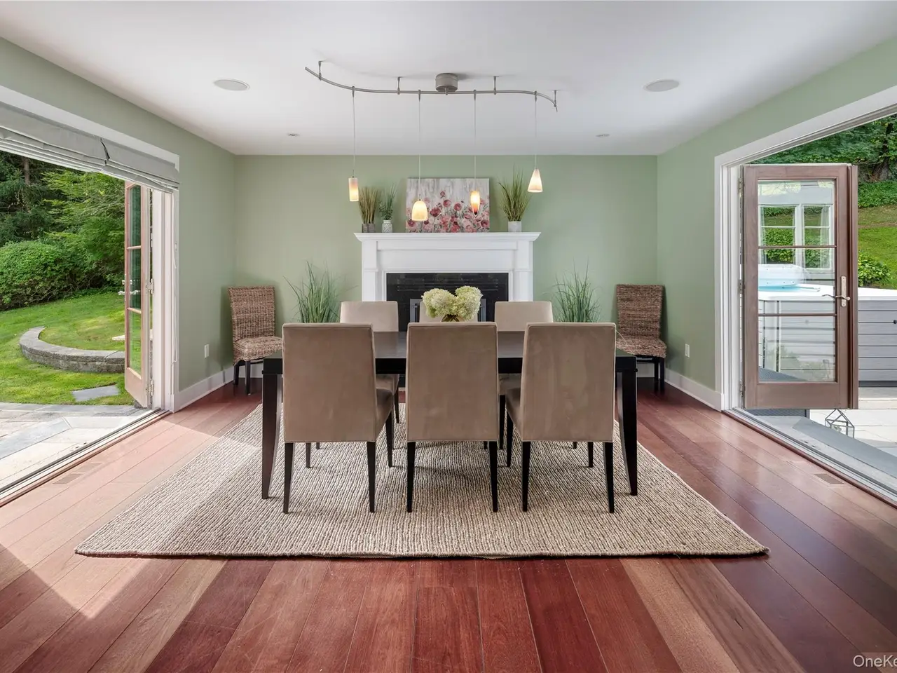 French doors to opposing patios