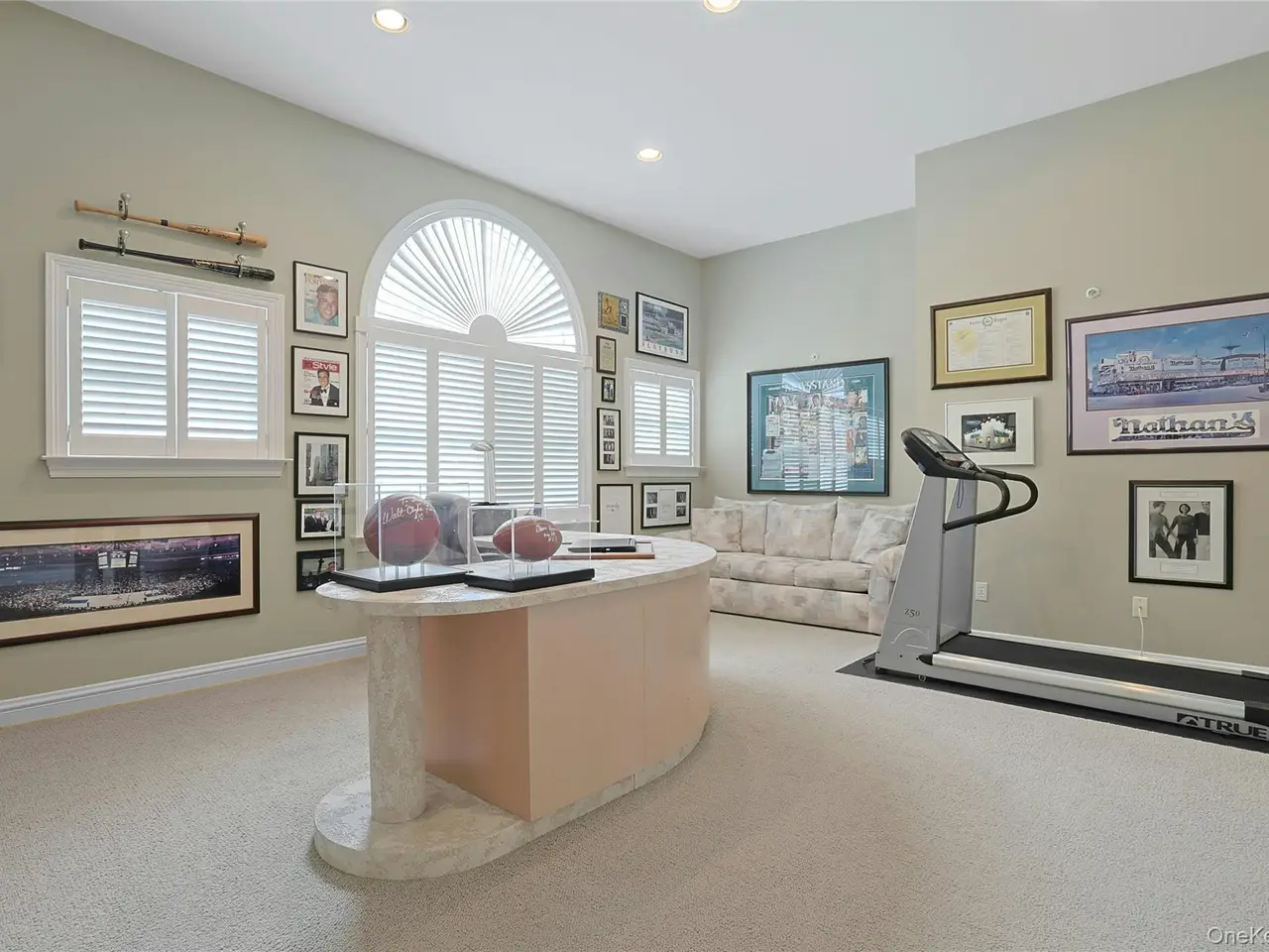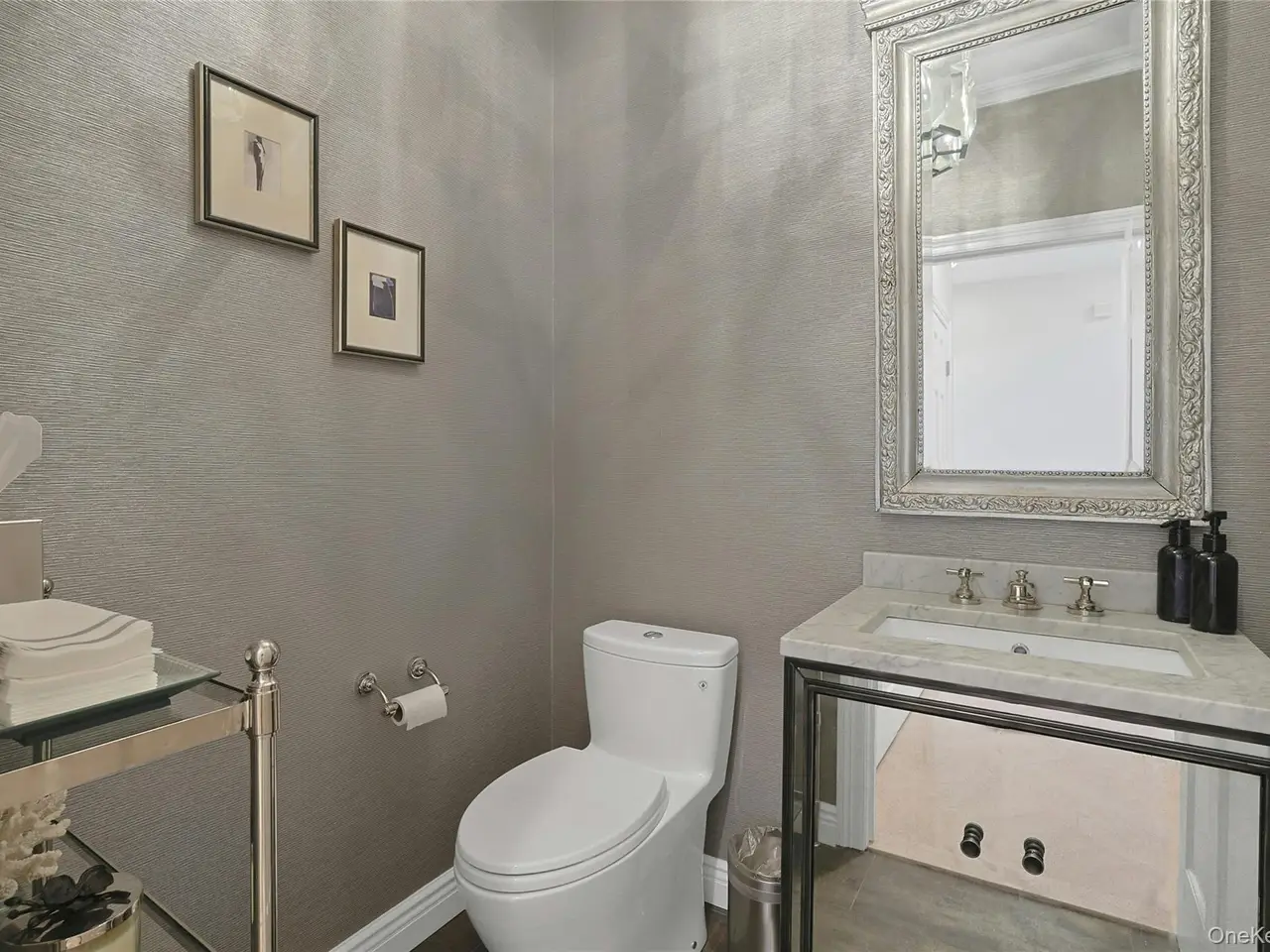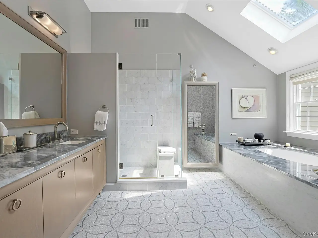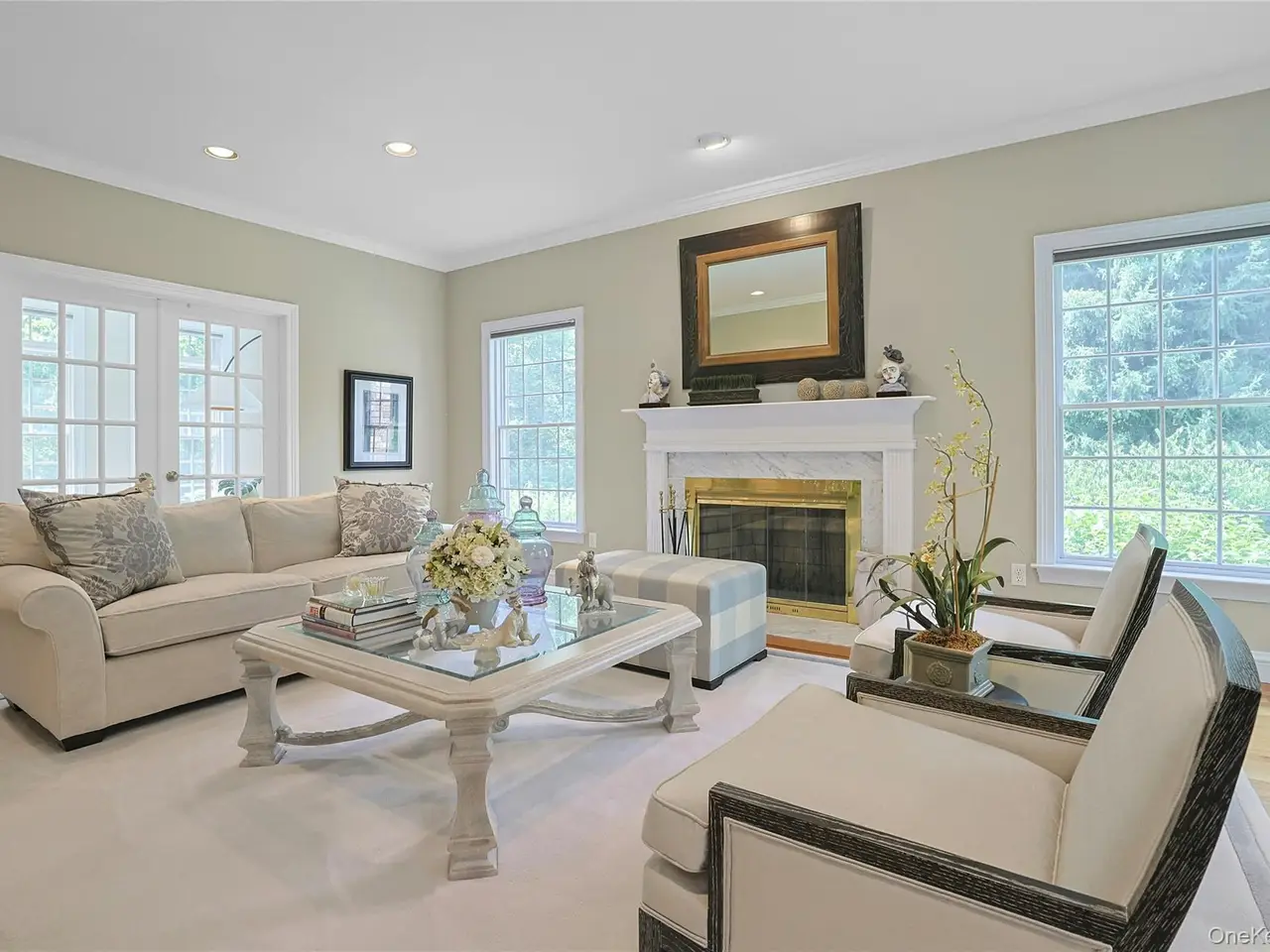 Living like a four-bedroom, this gracious and spacious three-bedroom plus bonus room modern Colonial shines from top to bottom from the meticulous maintenance and updates by the original owners. A welcoming, grand two-story entry introduces a large formal living room brightly illuminated by large front- and side-facing windows, recessed lighting and a wood-burning fireplace. French doors add light from the adjoining sun room, which can easily serve as a home office. Host feasts or fests in the traditional front-facing formal dining room. The kitchen is a cornucopia of delights: custom white wood cabinetry, natural stone countertops, subway tile backsplash, massive center island with plenty of prep space and a breakfast bar for quick dining, and high-end stainless-steel appliances including two Wolf electric convection ovens, a Wolf induction cooktop, large Sub-Zero refrigerator/freezer, built-in Sharp microwave, Miele dishwasher and Sub-Zero wine fridge. Open to the family room is the adjoining breakfast area with built-ins and sliding glass door to the deck for easy BBQ or dining alfresco. Large, rear, south-facing windows and a sliding glass door to the deck beam natural light throughout the spacious family room with its skylit cathedral ceiling, built-in cabinetry and back staircase ascending to the upper level. A powder room and a well-organized laundry/mud room with access to the three-car garage complete the main level. A sweeping staircase ascends to the upper level, home to three bedrooms, three bathrooms and a bonus room, which include the luxurious front-to-back primary suite endowed with a king-sized bedroom, an adjoining sitting or exercise area, walk-in closet, and an elegant, private, skylit, spa-like ensuite bath with wide, two-sink vanity, spa tub, separate shower stall, and radiant heat; two comfortably-sized bedrooms include a front-facing bedroom with two closets and private ensuite bath with shower over bathtub, and a rear-facing bedroom with door to hall bath with two-sink vanity and shower over bathtub; and an extra-large bonus room with closet, which can serve as a den, guest quarters, lounge, office, study, etc. All upper-level rooms have hardwood flooring beneath wall-to-wall carpeting. Designed for entertainment, the finished walk-out lower level showcases two large recreation spaces with a sliding glass door to a large deck, an exercise area (possible in-law or au pair space) and a full bath with shower. Solid, poured concrete foundation, recently updated mechanicals, an automatic backup generator and a newer roof to top it off. Lovely landscaping envelopes the residence. A velvety green lawn rolls out in the back yard, ideal for a catch or lounging about. Sited on a private cul-de-sac just a short drive to schools, shops, town and train. A gem!