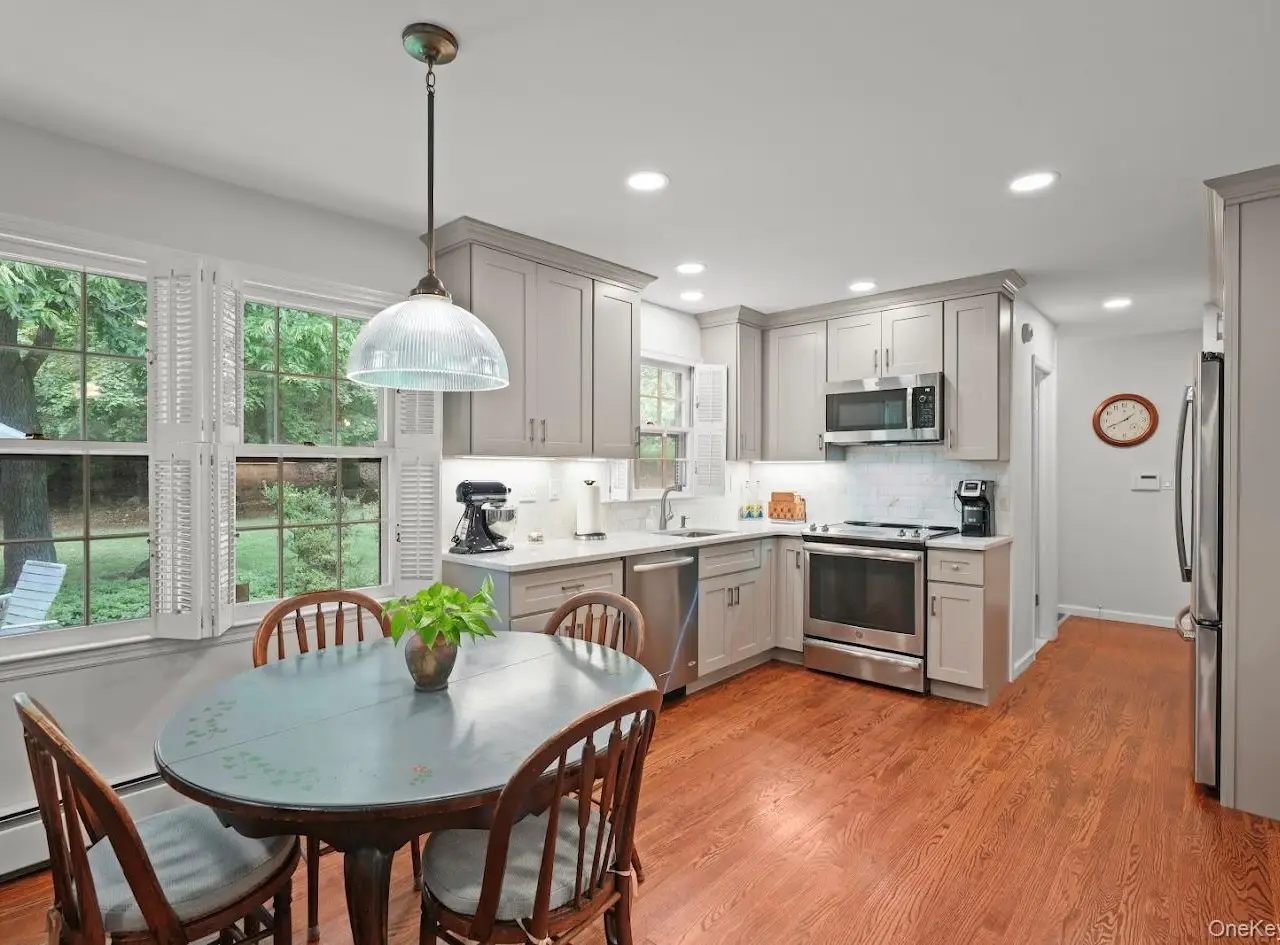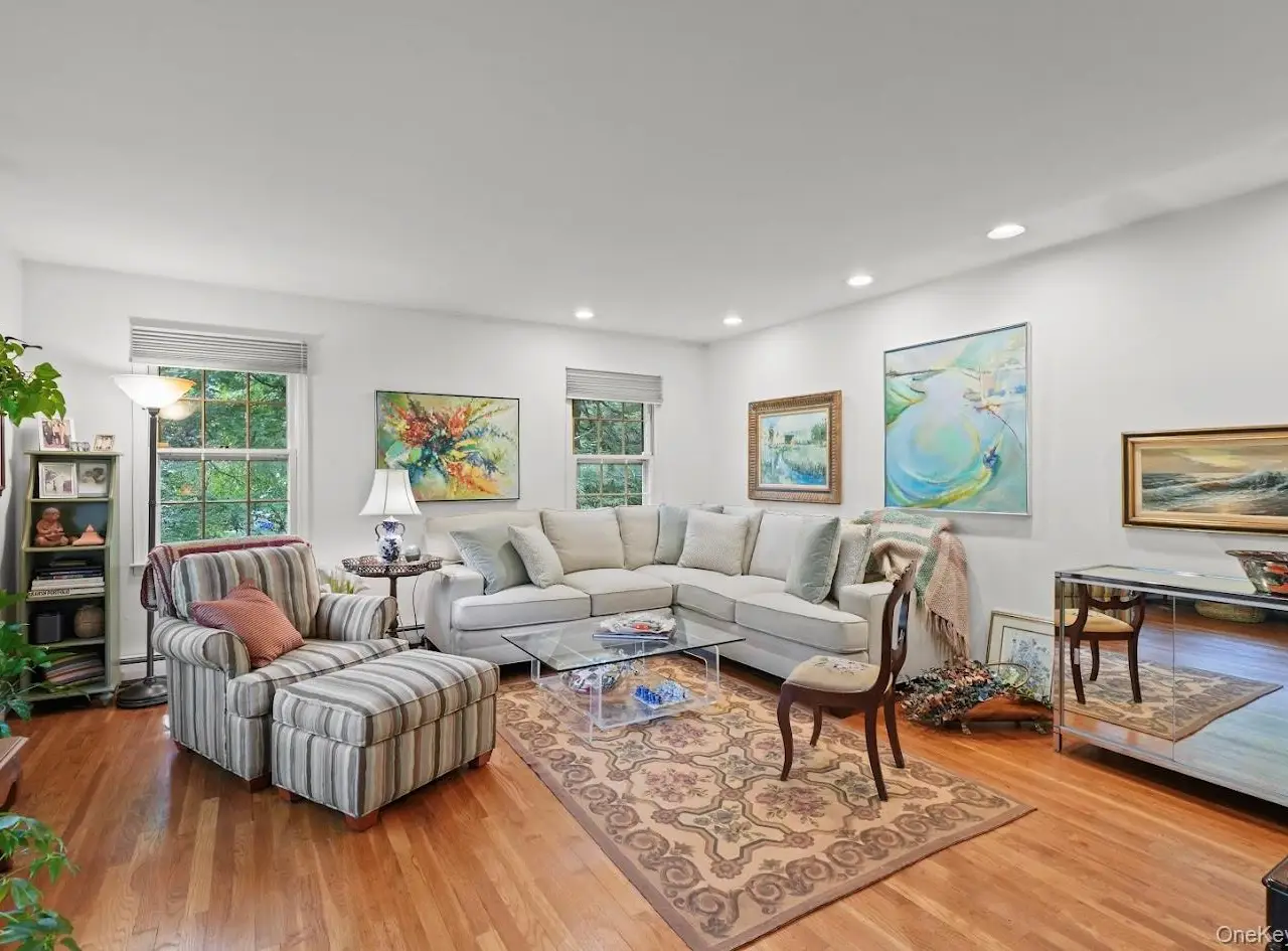 AO as of 9/29. Beautifully sited on a lovely & picturesque acre plus of perfectly flat property on a highly desirable street in the Chappaqua school district, this gracious colonial lives like a four bedroom home. The first floor boasts a formal dining room and living room with oversized windows, a combination eat in kitchen (renovated 2019) and family room with a wood burning fireplace and sliders to the yard, renovated powder room mud room with laundry and garage & driveway access. The upstairs living space features a primary bedroom with en suite bathroom, two bedrooms, a bonus room with a door & closet and full hall bathroom with tub/shower combination. Hardwood floors flow throughout with the exception of one of the bedrooms. The 1000 sq ft unfinished lower level (not included in total s.f) can be an incredible playroom/recreation room when finished and offers an abundance of storage. The stunning open kitchen with custom Coline cabinetry, quartz countertops and breakfast bar seating, recessed lighting and pantry cabinets is a highlight. Improvements made after 2018 include a new roof, boiler and hot water heater. All bathrooms have been completely renovated in the recent years. This meticulously maintained and quality built home with very low taxes situated in a neighborhood that is ideal for biking/walking/play and a picture perfect piece of property is a combination not to be missed!