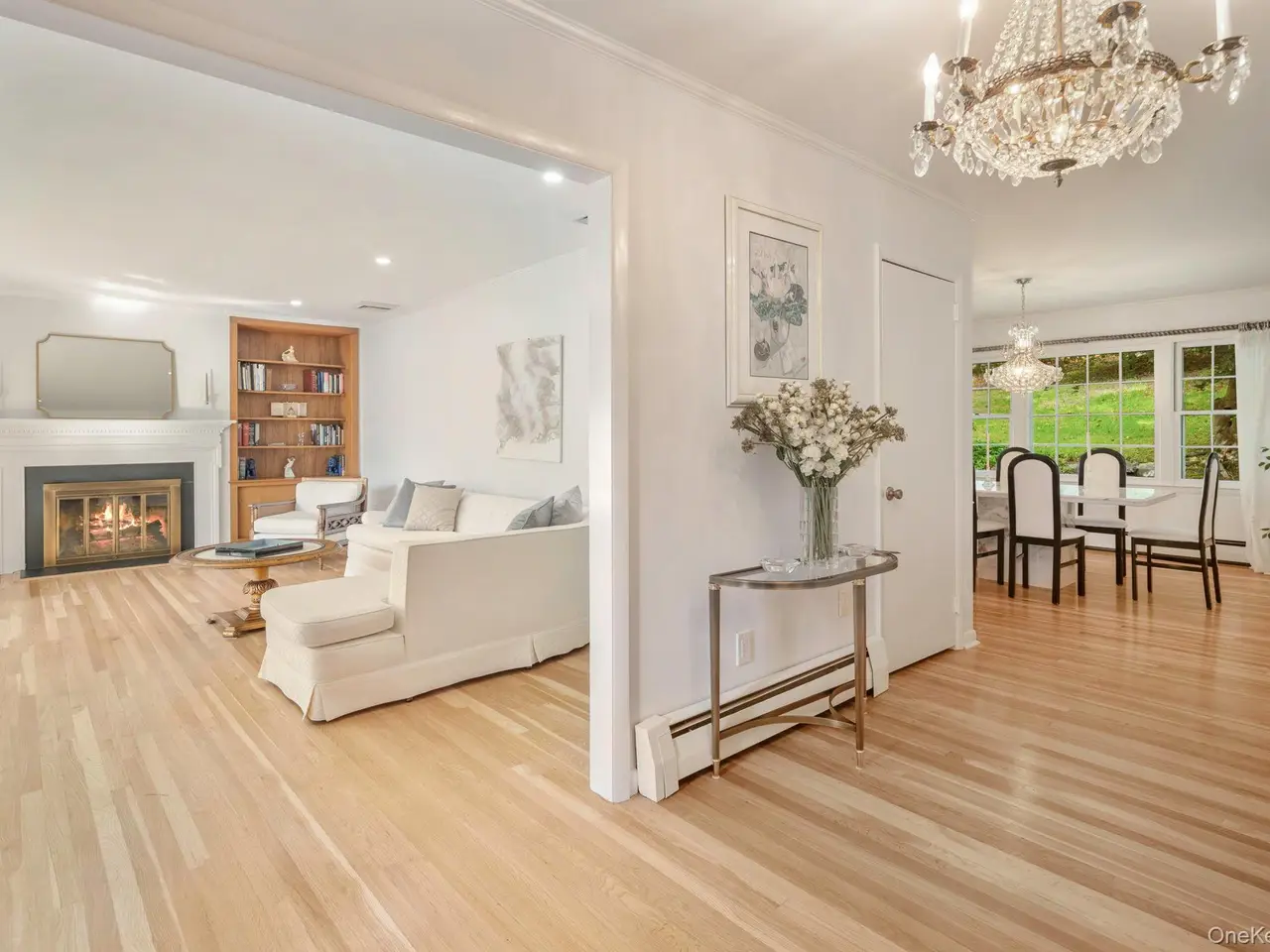 Welcome to this sparkling sun-filled ranch, this beautifully updated 4 bedroom/2.1 bath home offers an easy living floorplan, lovely landscaped property and easy access to top rated schools, shops and commuter train. Over 2000 sq ft, on an acre, offering privacy amidst a neighborhood feel. Newly renovated bathrooms, updated kitchen, freshly painted interior, and gleaming newly refinished white oak floors throughout beckon. The many windows allow natural light to flow into an impeccably maintained interior in move-in condition. Enjoy morning coffee on the slate patio overlooking the landscaped backyard. The updated white kitchen features quartzite counters, glass tile backsplash, a peninsula and opens onto an appealing breakfast room. The Formal Living Room features a cozy fireplace, crown molding and wall of windows. The Formal Dining Room is gracious in size and offers a built-in corner cupboard and wall of windows. The King size primary bedroom has a newly renovated en-suite full bath, walk-in closet and door to the backyard. additional bedrooms offer flexibility for den, home office, playroom. There is a newly renovated hall bath and powder room. The main level laundry/mud room provides an easy transition from the 2 car garage into the living space and backyard. The finished basement with high ceilings and door out is ready to be finished as a playroom or additional living space. Many additional improvements such as a new roof, recessed LED lighting, updated electrical, combined with low taxes make this a compelling offering. Won't last, schedule your appointment to view today!