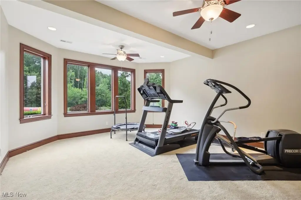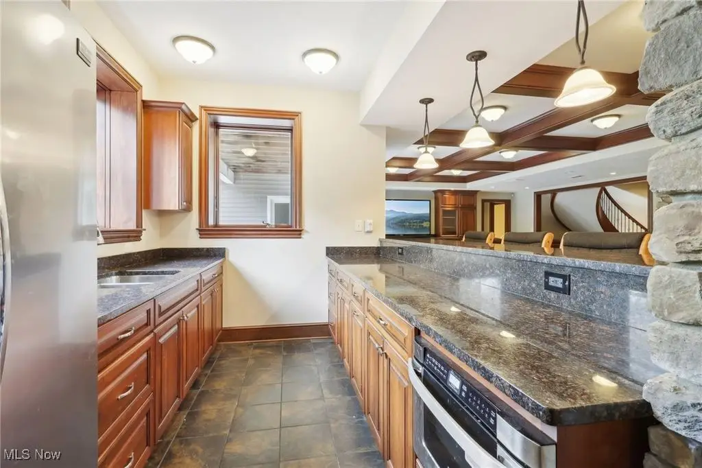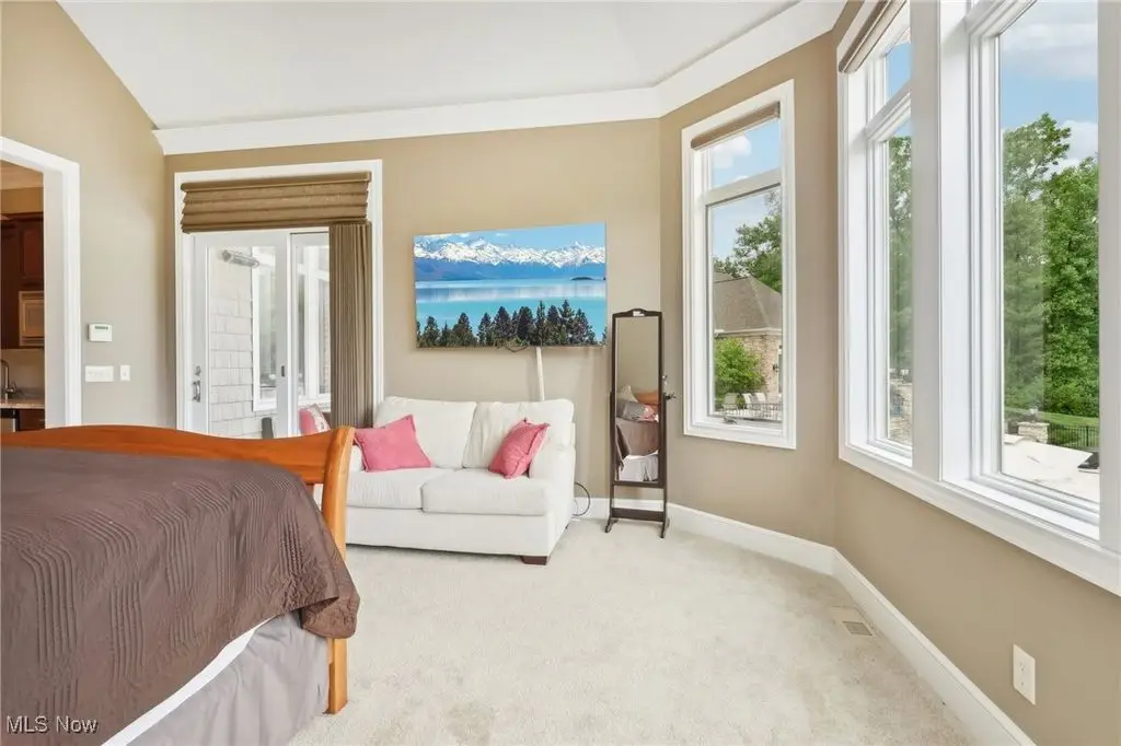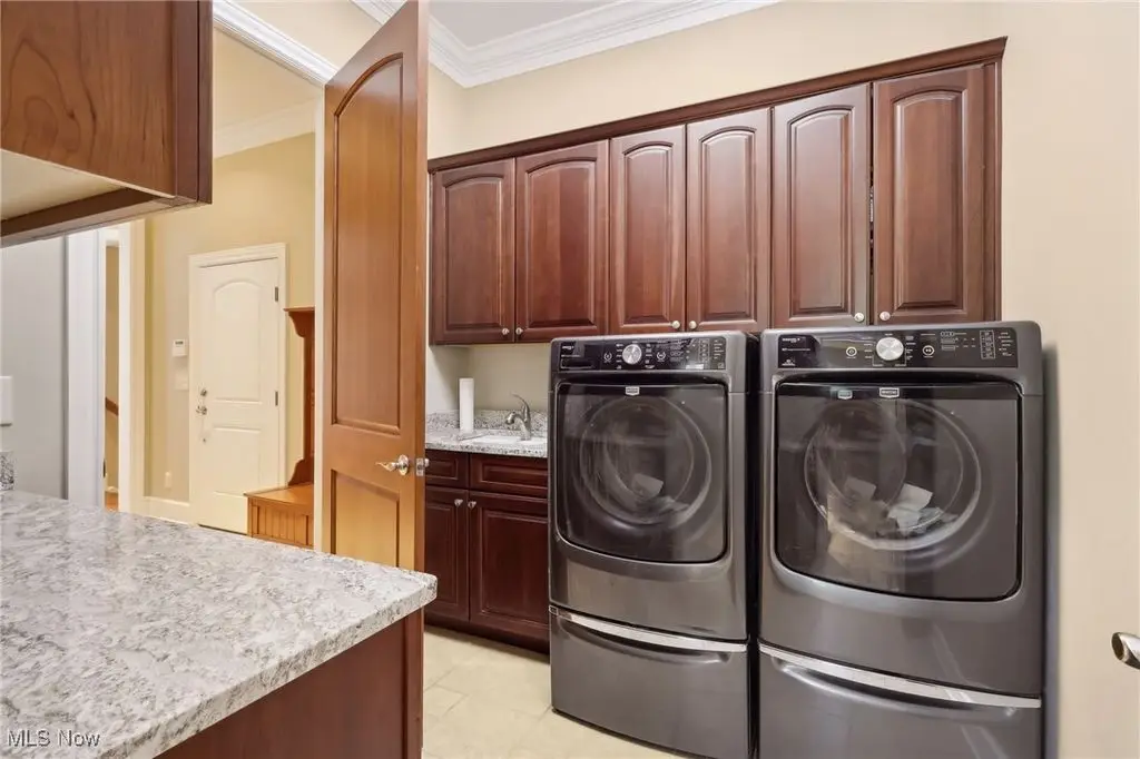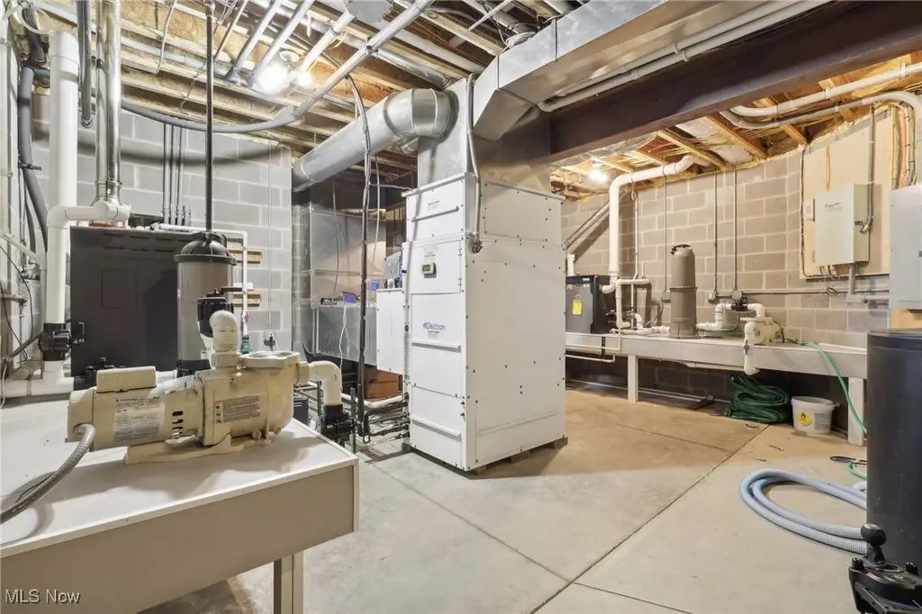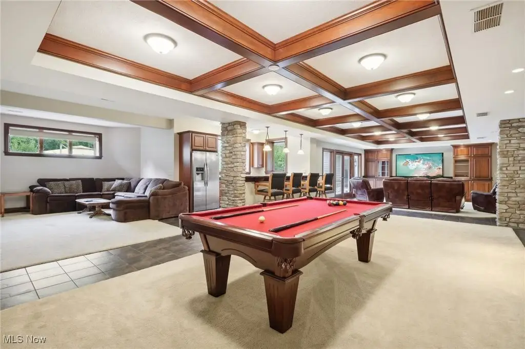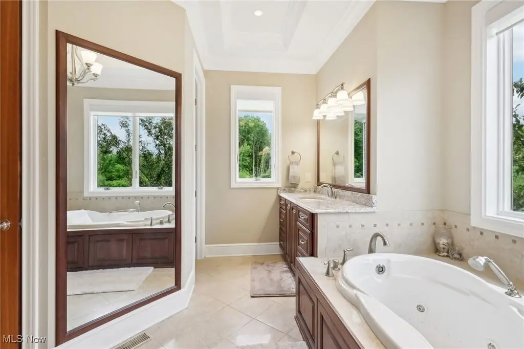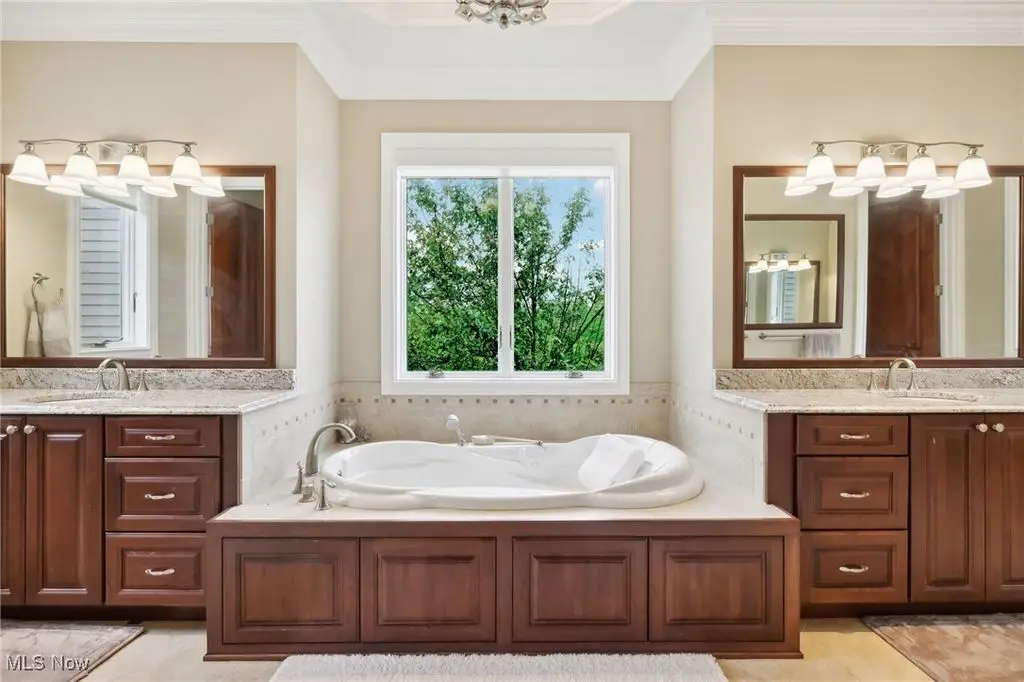Luxury 3-Acre Estate in the Historic Chardon area...This elegant cul-de-sac home blends timeless craftsmanship with modern luxury. Inside, 10-foot ceilings, 8-foot solid cherry doors, Brazilian cherry flooring and a dramatic two-story white marble foyer with a custom cherry wood and wrought iron spiral staircase set the tone.The two-story great room features a wall of windows overlooking wooded grounds, a two-story patio, inground heated pool, and a hot tub with a waterfall feature. Beyond the formal dining room is the freshly painted kitchen with cherry cabinetry, granite counters, stainless Thermador appliances, walk-in pantry, new tile backsplash, breakfast nook, and a large island with seating for five.A first-floor office/bedroom, laundry, mudroom, and an owners' suite with floor-to-ceiling windows, power shades, dual walk-in luxury closets, and spa-style bath complete the main level.Enjoy an indoor 16x36 pool with Travertine tile, hot tub, and a Dectron humidity control system which also aids to heat the pool room. Upstairs are three bedrooms - one a princess suite - with private baths.Outdoors, the Travertine-tiled pool area offers a new built-in grill with new granite countertop, hot tub, and expansive patio. The finished walk-out basement adds a second kitchen, cherry coffered ceilings, bedroom, work-out room and full bath. Parking includes an attached 4-car garage plus a detached heated 3-car garage with a finished loft.