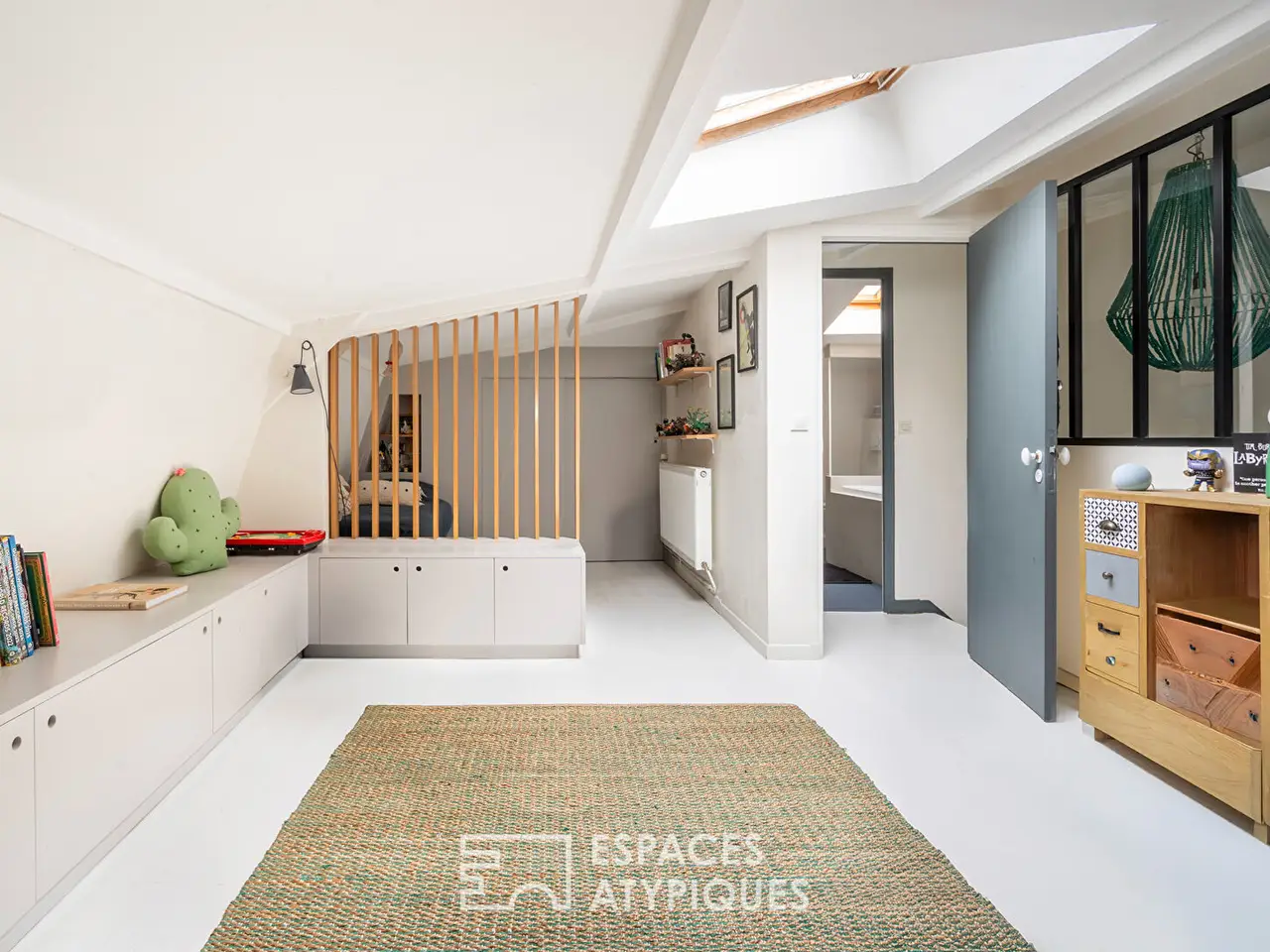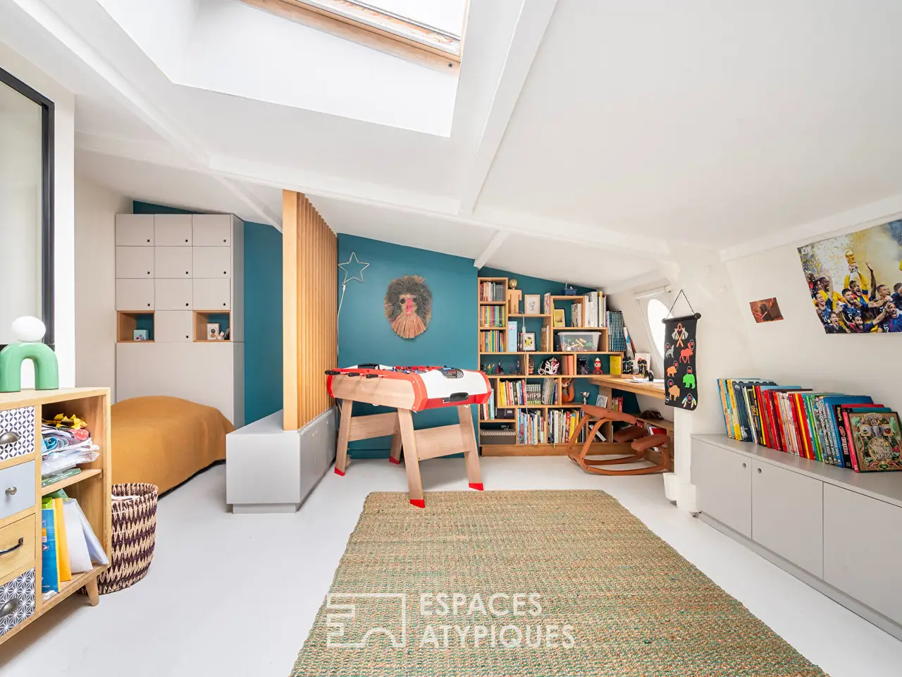 Nestled in the quiet of a one-way street, just two minutes from the Charenton-Écoles metro station, this freehold townhouse offers a rare respite from the heart of city life.Set back slightly from the street, it enjoys an ideal location, close to shops and the Bois de Vincennes, while maintaining a warm and intimate atmosphere.With a total floor area of ??133 m2, the house captivates from the entrance with a custom-made glass roof that elegantly defines the space while letting in natural light. The period parquet flooring and functional Prussian stove infuse the living room with an authentic feel, opening onto a custom-made kitchen made of raw wood, whose exposed grain brings a soft and natural feel.The high ceilings accentuate the feeling of space, while a separate toilet completes this first level.On the mezzanine floor, an office space with built-in storage and a secondary living room invite quiet and convivial moments, perfect for a movie night or a reading nook.A laundry room and a vaulted cellar complete this cleverly designed level.On the first floor, two bright bedrooms share a landing with a zellige-tiled bathroom, polished concrete, and a toilet, combining artisanal elegance and modernity.The top floor, approximately 32 m2, houses a beautiful modular space currently divided into two sleeping areas, a bathroom with polished concrete flooring, and a toilet.This space, bathed in light, offers multiple possibilities depending on each individual's needs?a teenager's bedroom, a master suite, or a play area for the little ones.Redesigned by an architect, this house was carefully designed to maximize every square meter and provide a smooth and harmonious daily life for the whole family.At the front, a small outdoor space, directly accessible from the street, offers a sunny spot to set up a few plants or a bistro table?a pleasant extension of the house, rare in this sought-after area.A confidential address combining charm, functionality, and a relaxed lifestyle, perfect for a family looking for a practical and inspiring place in the heart of Charenton-le-Pont.Metro L8 Charenton-Écoles: 2-minute walkShops: 2-minute walkSchools: 4-minute walkREF. 13104Additional information* 5 rooms* 3 bedrooms* 1 bathroom* 1 bathroom* 4 floors in the building* Property tax : 2 273 €Energy Performance CertificatePrimary energy consumptione : 279 kWh/m2.yearHigh performance housing*A*B*C*D*279kWh/m2.year59*kg CO2/m2.yearE*F*GExtremely poor housing performance* Of which greenhouse gas emissionse : 59 kg CO2/m2.yearLow CO2 emissions*A*B*C*D*59kg CO2/m2.yearE*F*GVery high CO2 emissionsAgency feesThe fees include VAT and are payable by the vendorMediatorMediation Franchise-Consommateurswww.mediation-franchise.com29 Boulevard de Courcelles 75008 ParisInformation on the risks to which this property is exposed is available on the Geohazards website : www.georisques.gouv.fr
