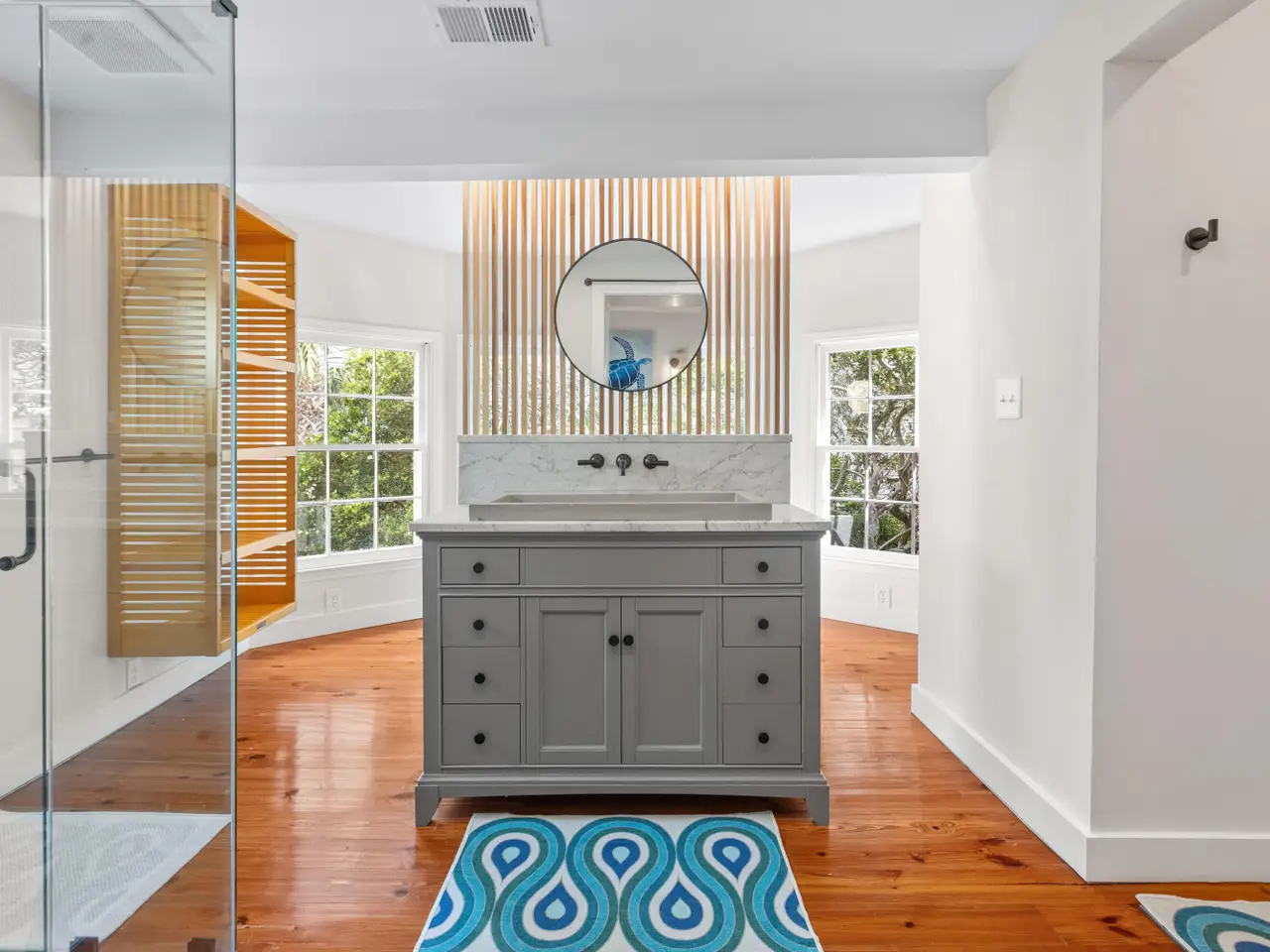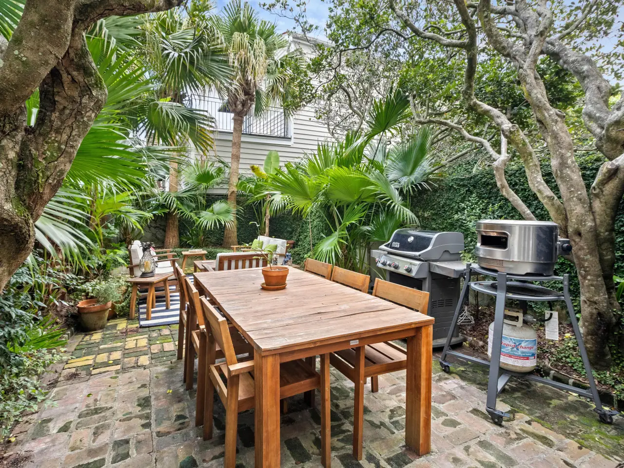 Classic Charleston Single on lower Tradd Street, between King and Meeting. It has been previously updated while retaining its charm and history. You enter through the front door into a formal living room with a fireplace. The separate dining room offers cozy banquette seating. The generous kitchen and sitting room lead to a magical private & gated courtyard. The courtyard offers enough room for multiple sitting areas and configurations. A half bath is on the main floor. The three bedrooms are on the second floor. Two of the bedrooms feature ensuite baths. The master bath is spa-like with a large soaking tub. The laundry area is conveniently located on the second floor. On-street parking for two vehicles through permits.