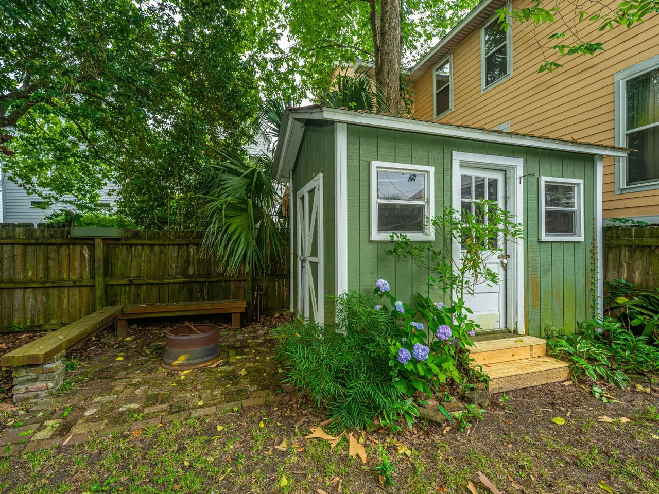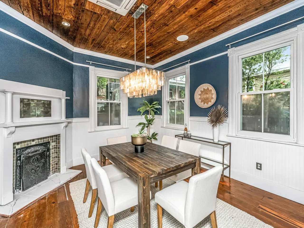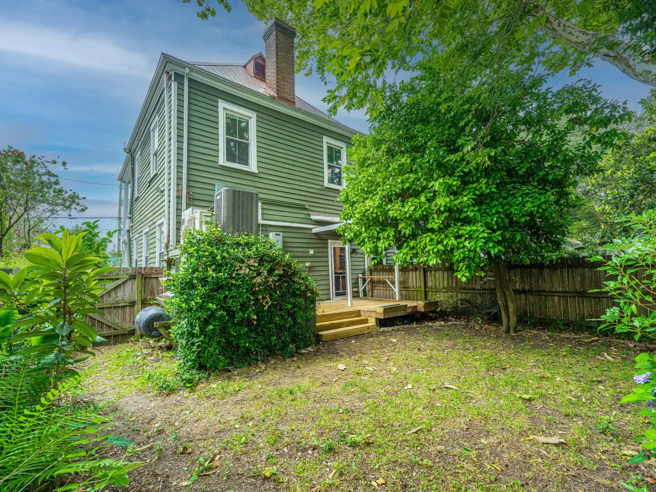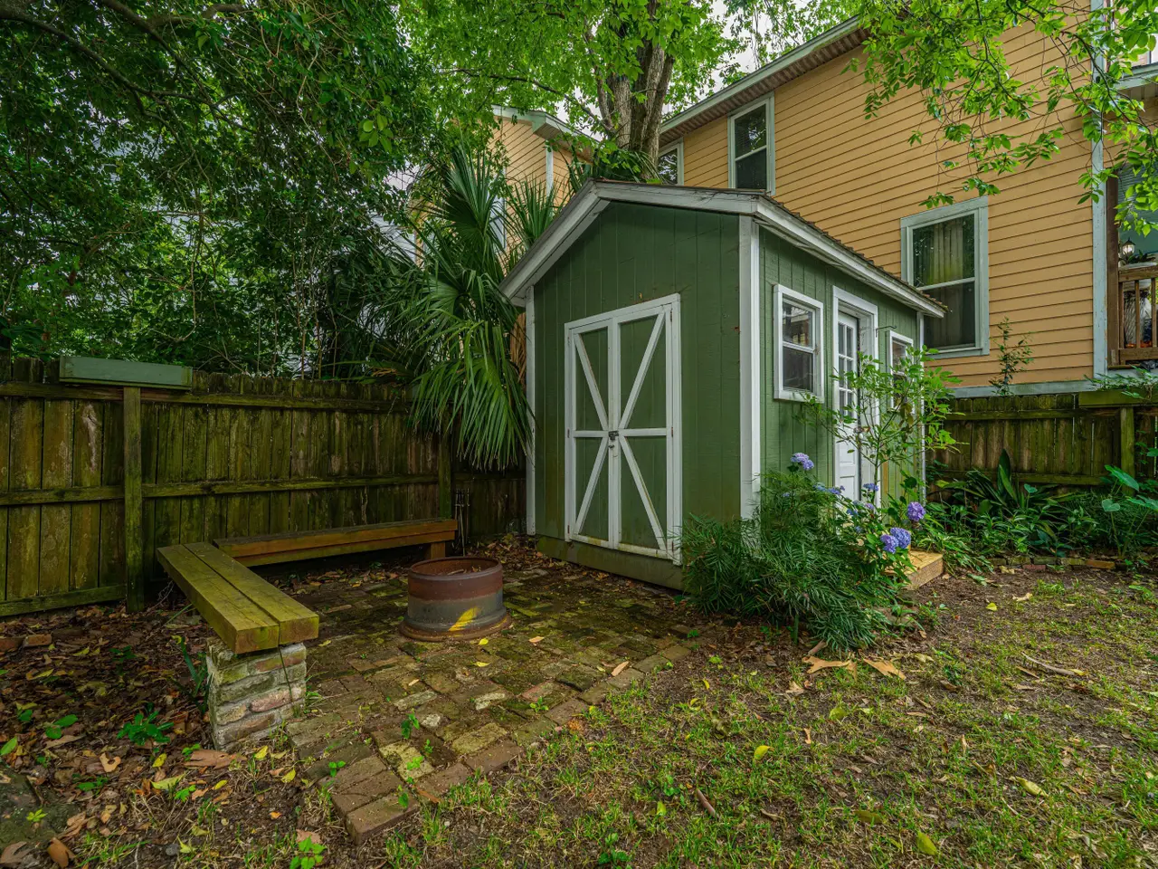Nestled in the heart of Charleston's historic Westside, this elegant Charleston Single home seamlessly blends timeless charm with thoughtful updates. Boasting three generous bedrooms and two full baths, this classic residence welcomes you with gleaming wood floors, detailed crown molding, and abundant natural light throughout. The inviting living room features a cozy fireplace, while the formal dining room, also with its own fireplace, sets the stage for memorable gatherings. The renovated kitchen offers modern functionality with a touch of Southern grace. The kitchen is a true showpiece, featuring walls and ceiling crafted from repurposed wood salvaged from the home- offering a warm, authentic nod to the past while embracing modern functionality. All three spacious bedrooms are tucked away upstairs for added privacy, with the primary opening to the iconic double piazzas that overlook the quiet street and lush backyard. It also has its own fireplace, an inviting retreat! A durable and stylish metal roof adds long-term peace of mind and architectural appeal. Step into the beautifully landscaped courtyard, where Old Charleston brick, a raised deck, and a serene seating area create a perfect outdoor retreat. Mature flora, a fruiting grapefruit tree, and a charming shed add character and convenience to this enchanting property. This is Charleston living at its finest. Schedule your showing at this classic home today.