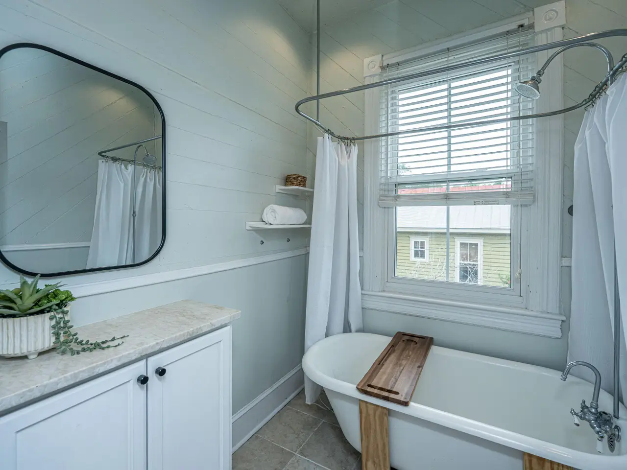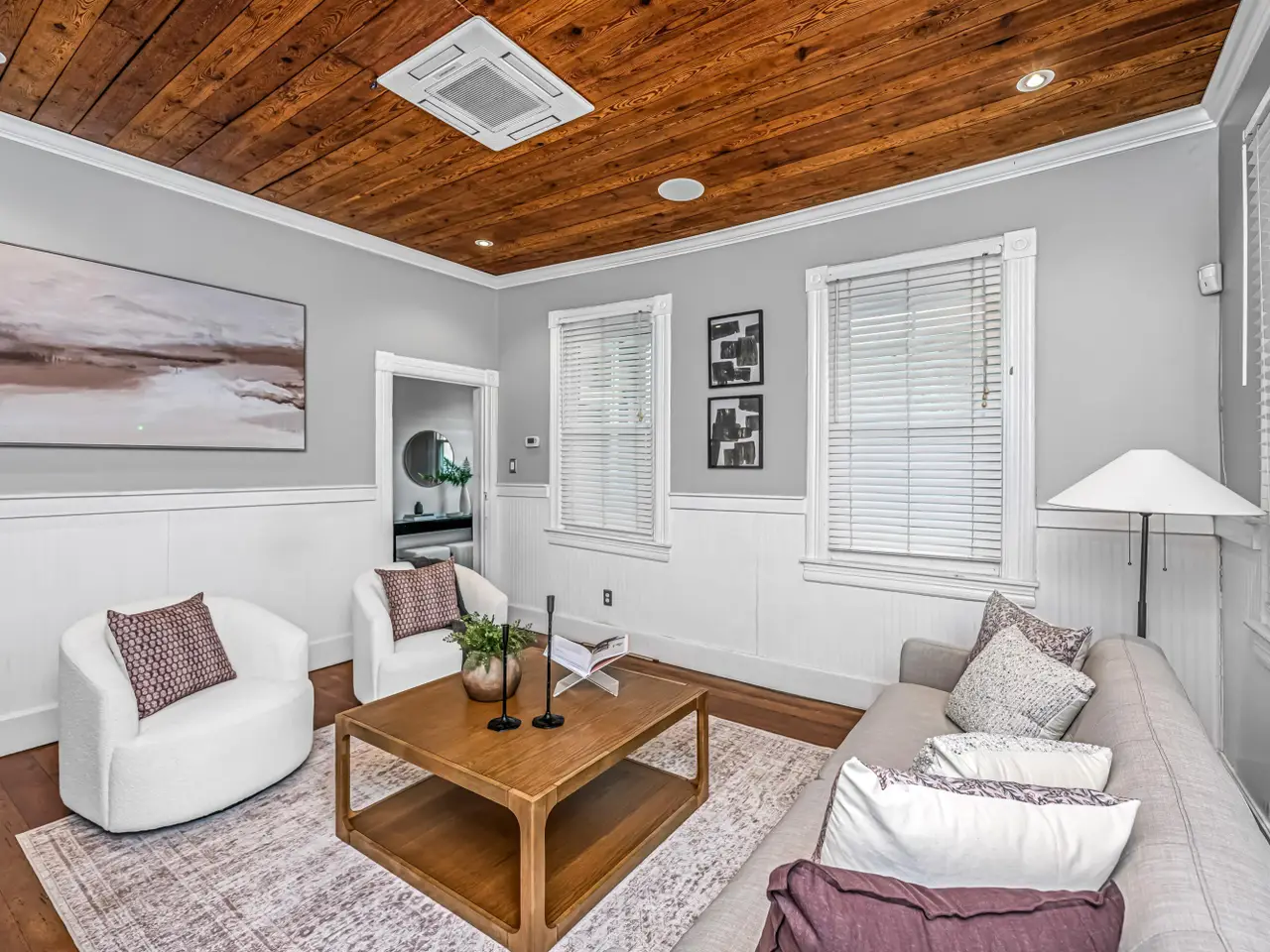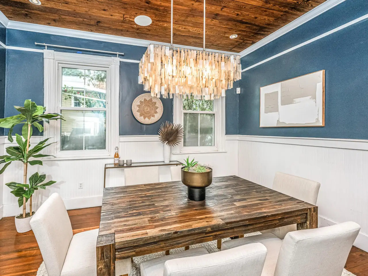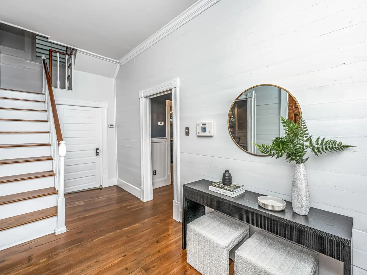 Nestled in the heart of Charleston's historic Westside, this elegant Charleston Single home seamlessly blends timeless charm with thoughtful updates. Boasting three generous bedrooms and two full baths, this classic residence welcomes you with gleaming wood floors, detailed crown molding, and abundant natural light throughout. The inviting living room features a cozy fireplace, while the formal dining room, also with its own fireplace, sets the stage for memorable gatherings. The renovated kitchen offers modern functionality with a touch of Southern grace. The kitchen is a true showpiece, featuring walls and ceiling crafted from repurposed wood salvaged from the home- offering a warm, authentic nod to the past while embracing modern functionality. All three spacious bedrooms are tucked away upstairs for added privacy, with the primary opening to the iconic double piazzas that overlook the quiet street and lush backyard. It also has its own fireplace, an inviting retreat! A durable and stylish metal roof adds long-term peace of mind and architectural appeal. Step into the beautifully landscaped courtyard, where Old Charleston brick, a raised deck, and a serene seating area create a perfect outdoor retreat. Mature flora, a fruiting grapefruit tree, and a charming shed add character and convenience to this enchanting property. This is Charleston living at its finest. Schedule your showing at this classic home today.