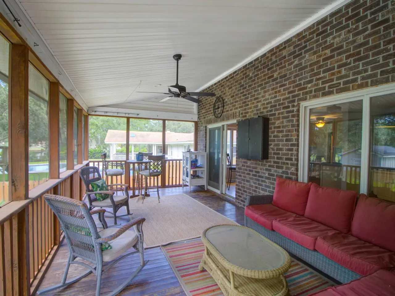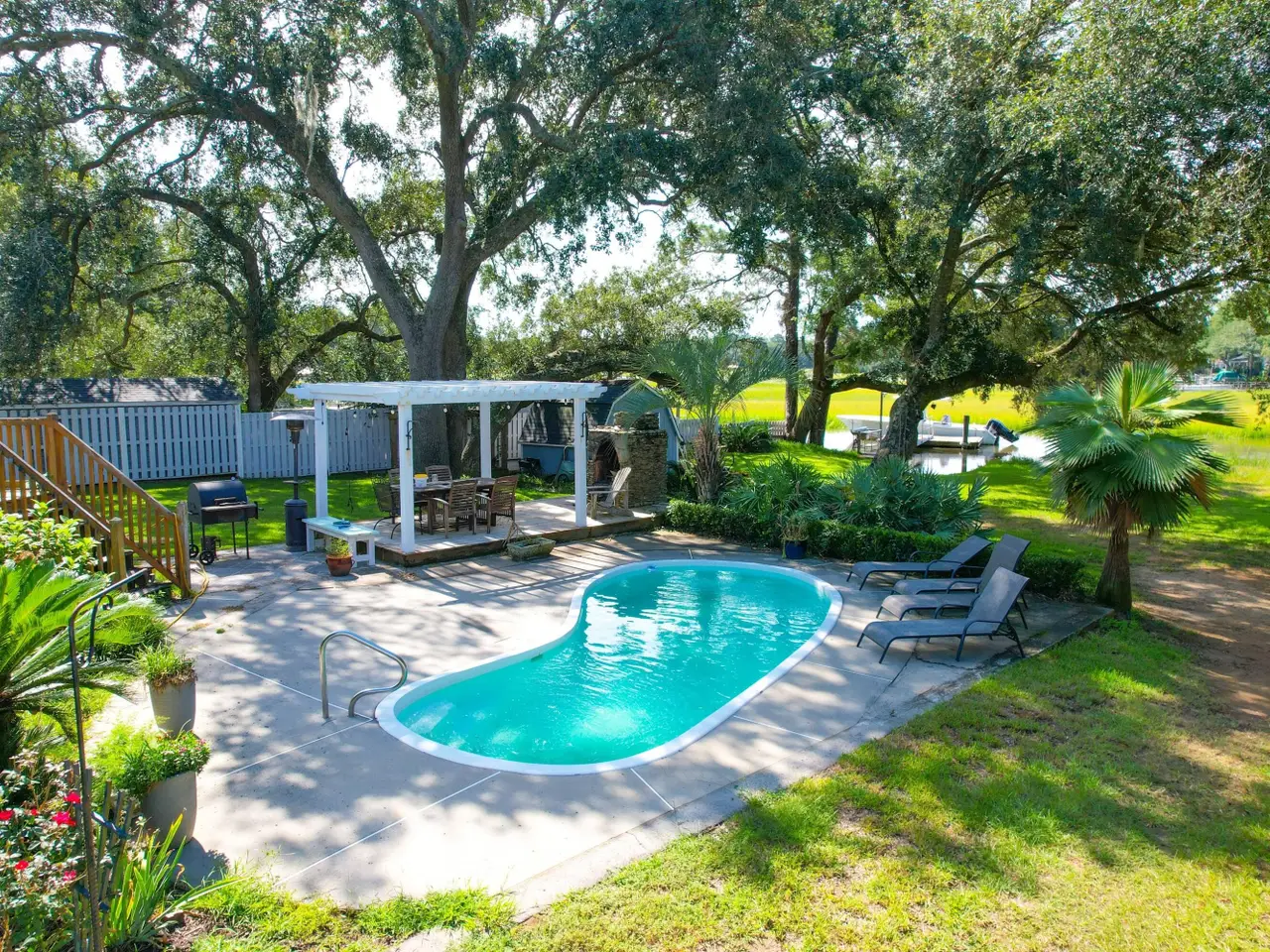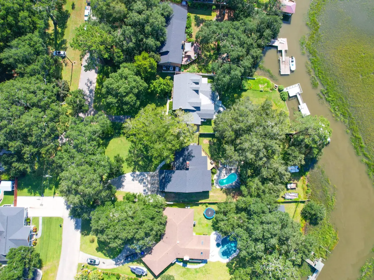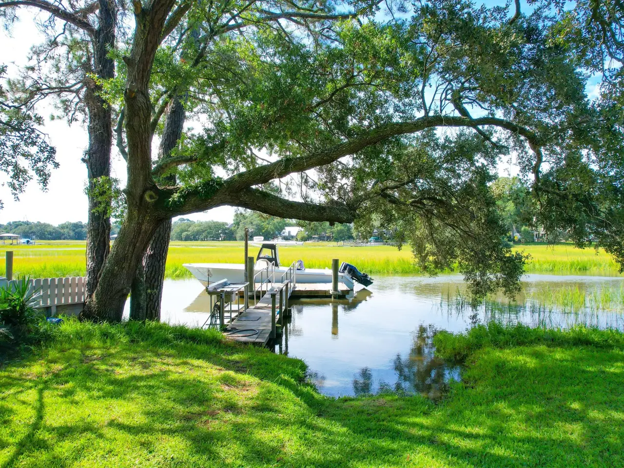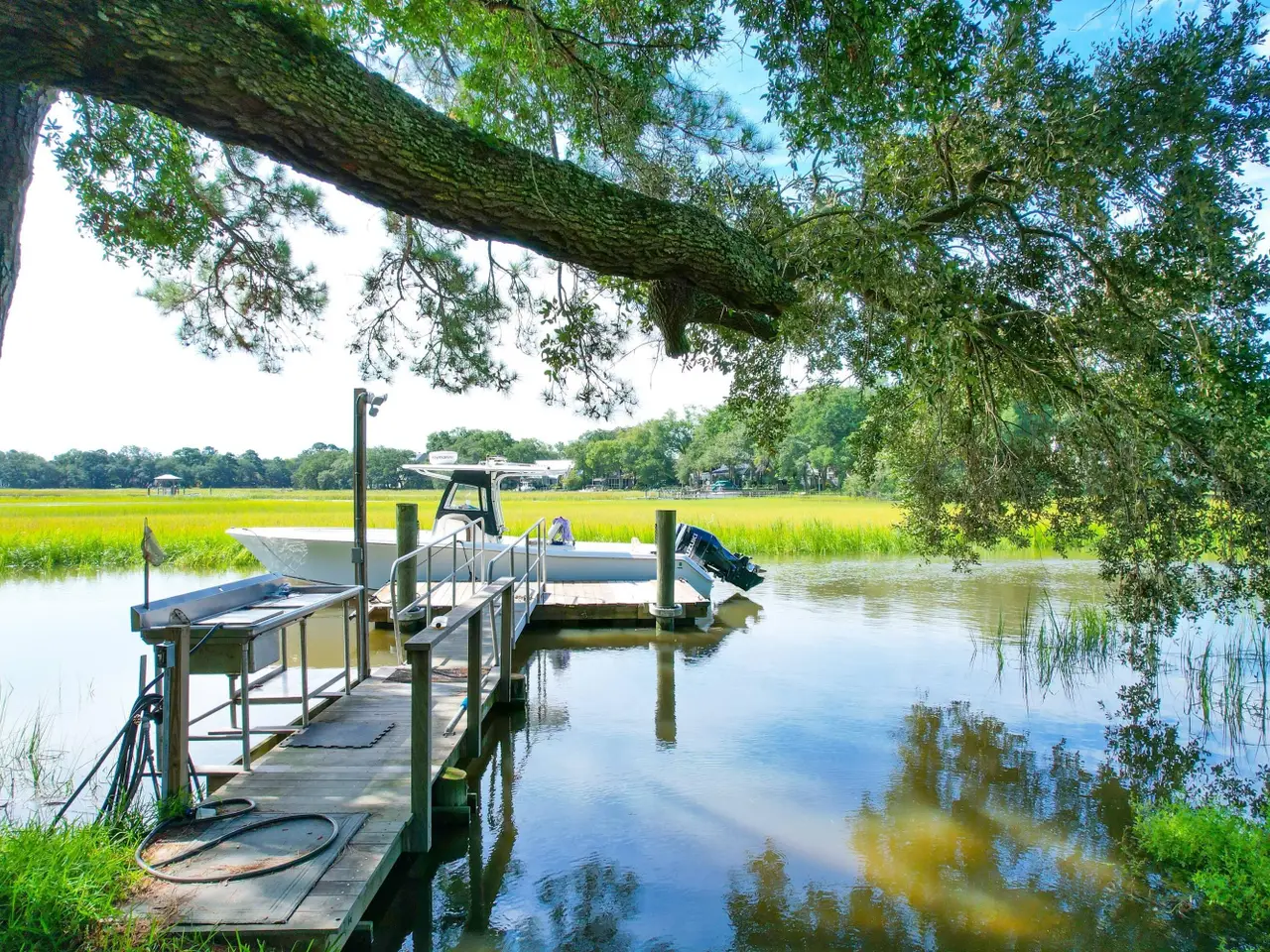 Deepwater Home is located on one of the deepest waterfront lots in the neighborhood, framed by grand oaks on Simpson Creek just off James Island Creek. 5 minutes by boat to Charleston Harbor. First floor primary suite with sundeck is overlooking creek and pool. This home is the perfect size for comfortable family living. The outside deck, pool and dock with floater really make this home a wonderful place to live. New Roof 2021. Fenced backyard on 2 sides. 7 minutes to downtown, MUSC and hospitals.