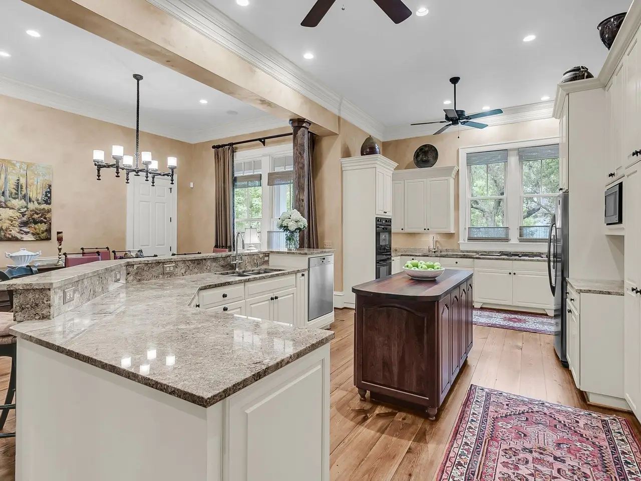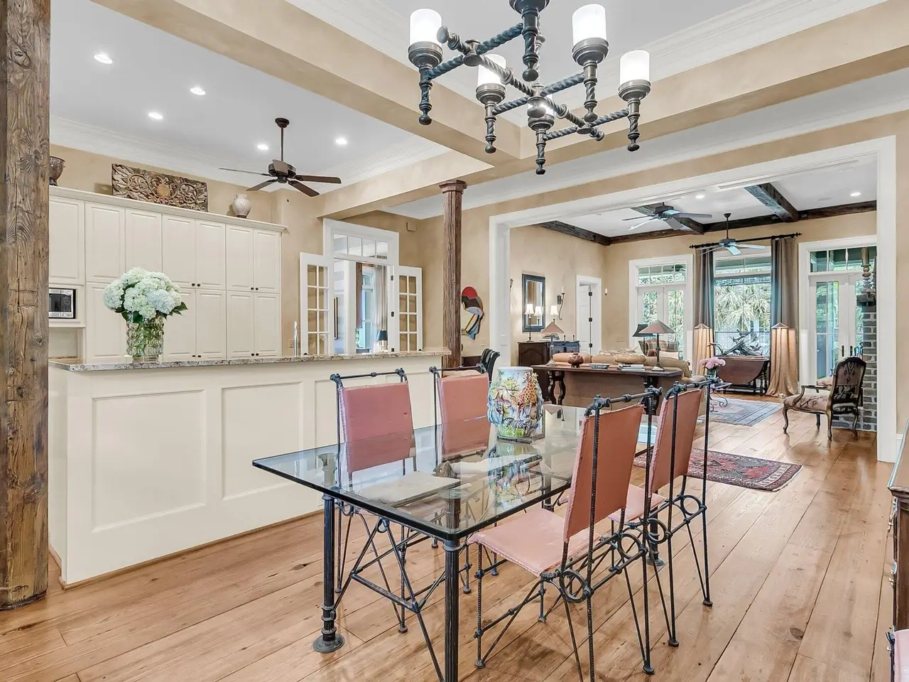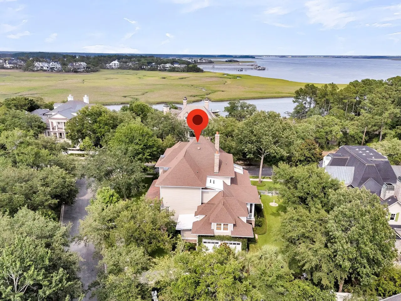 A truly iconic home with unique architectural features combining the best of traditional style with Lowcountry living. This immaculate custom built home is perfectly situated on a large corner lot on one of Daniel Island's most coveted streets with views of the marsh, Ralston Creek and the Wando River. This home also comes with a PENDING FULL GOLF MEMBERSHIP - skip the 9+ year waitlist and start playing golf the moment you move in! This magnificent home exudes southern charm from the moment you walk in the front door. As you stand in the gracious foyer and admire the soaring 12-foot ceilings throughout the home, to the left, is the library with Pecky Cypress walls, custom built-in shelving, a wet bar, and a gas fireplace. To the right of the foyer is theformal dining room, which flows into a Butler's pantry and the gourmet kitchen. The walk-in pantry/china closet is easily accessible to the dining room. One of the two powder rooms in the home sits adjacent to the dining room. The dining room could easily be converted to a first floor bedroom or media room if desired. The open floor plan concept is designed for comfort with ample room for entertaining. The kitchen is a chef's delight with a center island, stainless steel appliances, a large eat-in area, two separate sink areas, a Butler's pantry, a walk-in pantry/china closet, an "entertainer's closet", two dishwashers, a wine fridge, ice maker and a warming drawer. The kitchen flows into the Great Room, which features exposed solid oak beams, a large brick gas fireplace with reclaimed wood mantle flanked by free standing old wormy chestnut veneer hutches, and access to both the screened in porch and the wrap around front porch. The office nook in the rear hall on the first floor has a built-in mahogany wood desk and Pecky cypress wainscoting and is conveniently located next to the side entrance to the home and to the second powder room. The large laundry room/mudroom on the first floor features a sink and closet, a laundry chute from the second floor, a second refrigerator and a stand alone wine cooler. On the second floor is the oversized owner's suite, which features "his" and "hers" bathrooms, two separate walk-in closets and French doors that open to a large balcony. Special features of "her" bathroom include bidet, jacuzzi tub and oversized vanity, while "his" bathroom features a walk-in shower and single vanity. Two large guest bedrooms upstairs feature en-suite bathrooms, generous walk-in closets with HVAC vents and ceiling fans. The attached FROG serves as the 4th bedroom/home office and features a vaulted ceiling, 3 walk-in closets, a wet bar and a full bathroom. The second floor also features a large utility room that could easily be converted to a second laundry room if desired. The third floor of the home, boasts a vaulted ceiling and has over 900 SF of unfinished space that could easily be converted to an additional bedroom & bath, media room, playroom, home office or used for additional storage. The side yard garden, with mature landscaping and views of the river and marsh, offers endless entertainment options for creating an oasis with a pool, cabana, pool house and outdoor kitchen, if desired. The home features over 1,400 SF of porches and Ipe decking. The screened in porch, overlooking the private side yard garden, features a vaulted cypress ceiling. Reclaimed heart pine floors & stairs and custom wood millwork grace the entire home. An elevator services both the first and second floors, as well as access to and from the 2-car attached garage, which features a separate workshop. Other special features of this home include: lightning rod protection, irrigation system and exterior landscape lighting, water filtration system in the kitchen, built-in surround sound speakers, 2 Rinnai tankless hot water tanks, and 17 ceiling fans throughout the home. Library, dining room, and back hall windows have sun screened factory installed windows; most other windows in the home have locally installed 3M sun protection. This special home, recognized for its quality and craftsmanship, must be seen in person to be fully appreciated. Daniel Island is conveniently located near the airport, downtown Charleston and the fabulous SC beaches! Daniel Island Park amenities include 2 private golf courses, 2 resort style pools, cabana bar, fire pits, tennis courts, pickleball courts and state of the art fitness center. Community amenities include miles of walking/biking trails, multiple playgrounds, community boat dock, shops, restaurants and the Credit One Stadium - a great venue for concerts and sporting events.
