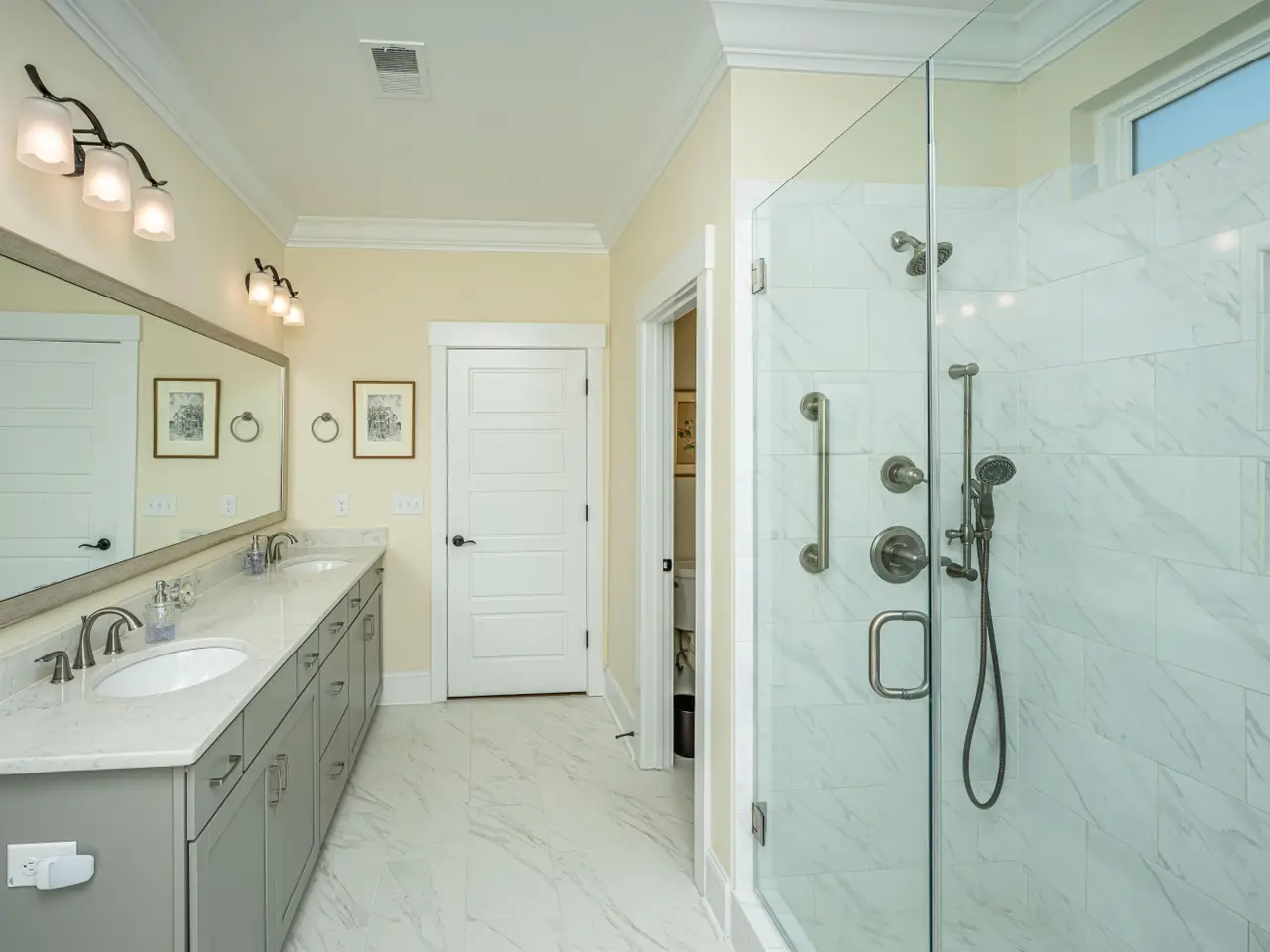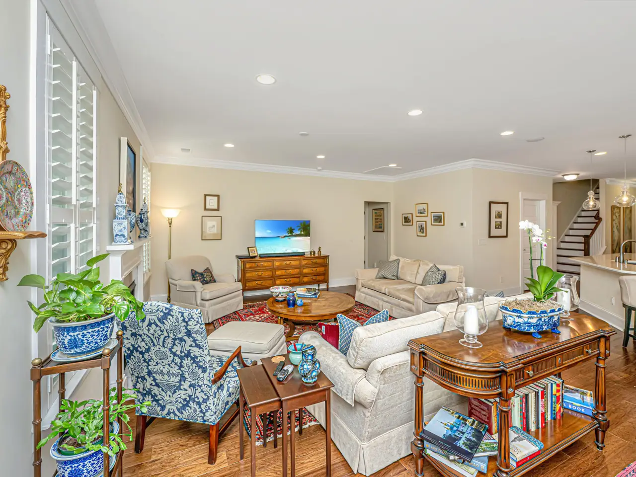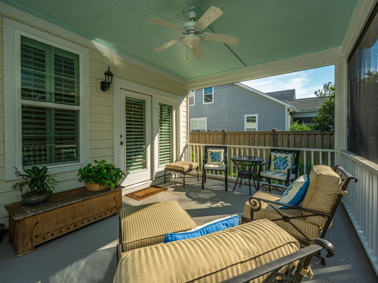 Stunning two story with double porches, laminate floors throughout, master suite on the first floor and a large screened porch overlooking an exquisite professionally installed landscaped rear yard! Other features include plantation shutters throughout, large formal dining room, newer Bosch dishwasher, gas fireplace, huge open kitchen and great room, nice sized brick patio, and when the rear yard was upgraded french drains were installed on both sides of the home. There are numerous large and walk in closets. Plus a walk in attic area! And this is a no pet home. The owners have meticulously maintained it for the last seven years! You can assume the ten year HVAC warranty. The Village at Stiles Point has a five acre recreation field with tennis, basketball, baseball and playground. Grocery store and pharmacy across the street and just a short ten minute drive to historic downtown Charleston where there are a plethora of fine dining and historic sites.