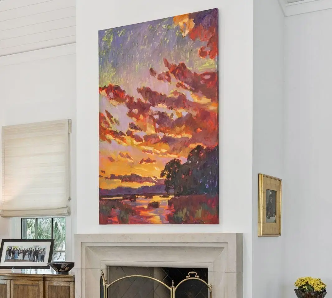 Hand-carved stone fireplace