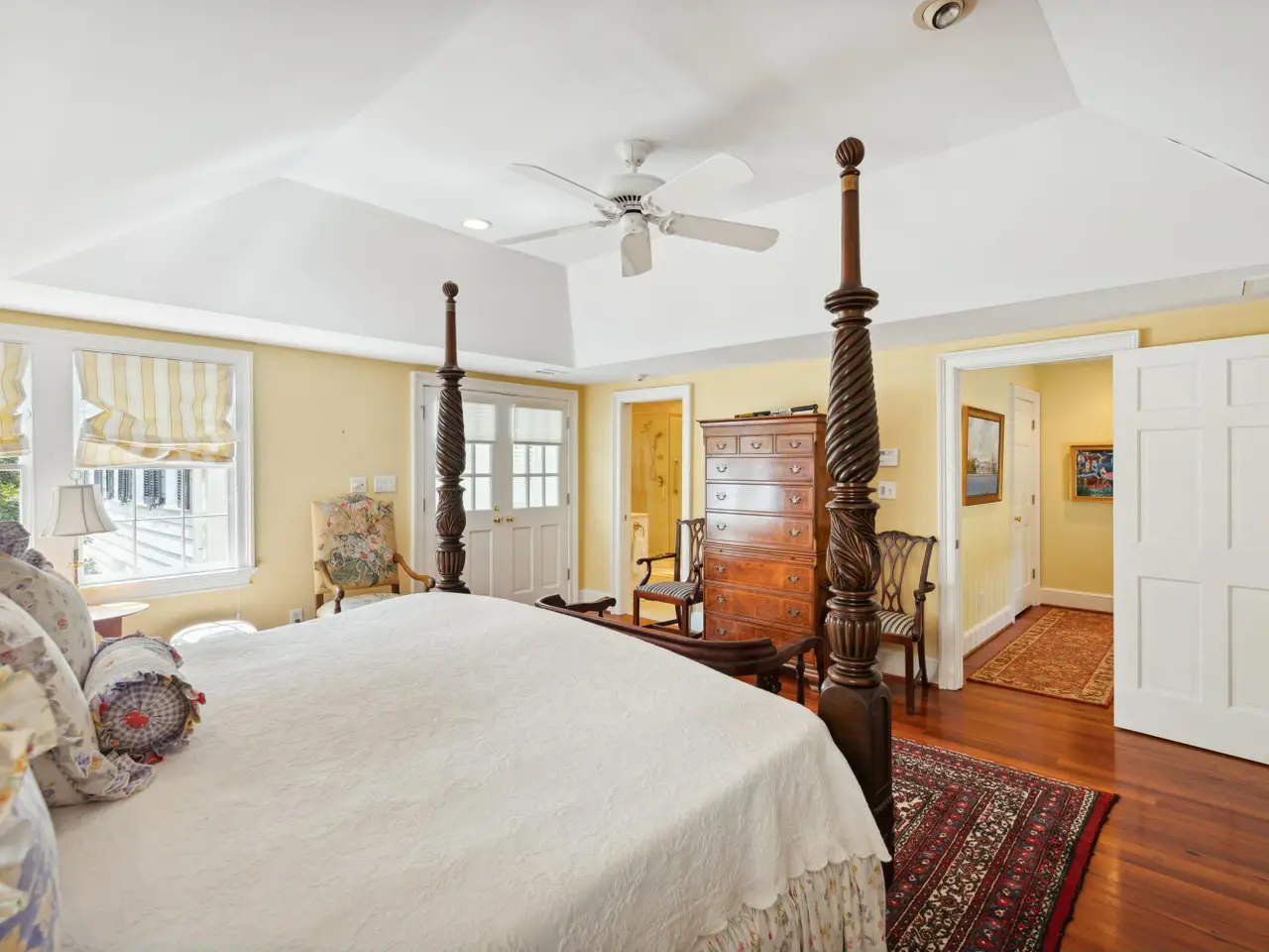 Private primary suite with rear stair