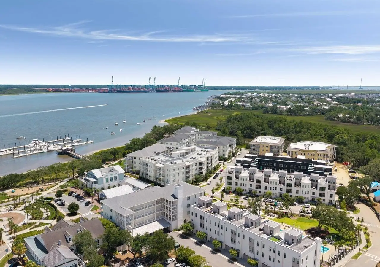 Stunning PENTHOUSE coastal 3 bedroom 3.5 bath retreat with big water views. Reside in arguably one of the most appealing condominium communities on the highly desirable Daniel Island. Ride the elevator and walk to everything from your waterfront home including shops, restaurants and concerts. Boating is directly out your front door at The Daniel Island Yacht Club or the Carefree Boat Club. Steps away travel downtown on the DI Ferry. Top notch private community fitness, pool, cabana and grilling facilities all included. This IS the lifestyle you have been dreaming of. Reside full time or lock and go with The Waterfront concierge offerings. Large luxury primary suite with custom walk in closet, gourmet eat in kitchen, upgraded appliances, ice maker, wine refrigand office space; two additional bedroom suites and large wrap around porch. Carefree living and never have to move your car! Regime fee includes most utilities, insurances and much more.