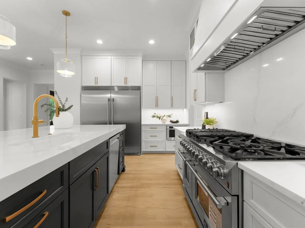 This duplex perfectly blends classic elegance with modern living, making it a truly exceptional property in a prime location. Five beds/six baths! Enter through a metal door into an inviting foyer highlights meticulous attention to detail. The chef's dream kitchen-with custom cabinets, professional-grade appliances - a 60-inch built-in ref. and 48-inch gas stove with grill, and a massive island is a perfect space for culinary creations. Family room, with fireplace and wet bar, flowing seamlessly to the covered patio with fireplace and grilling area, for fun and relaxation. A flex rm on main floor study/bed and full bath. The master bedroom with tiled gas fireplace and luxurious bath is a private oasis. All other bedrooms are en suite with built-in closets ensuring comfort and convenience. 3rd-floor with wet bar and full bath is an ultimate entertainment space, perfect for hosting gatherings and to enjoy! A fenced yard with irrigation, landscaping lights, and pillar lights elevate outdoor space and curb appeal. Up to $15,000 closing cost if builder's preferred lender.