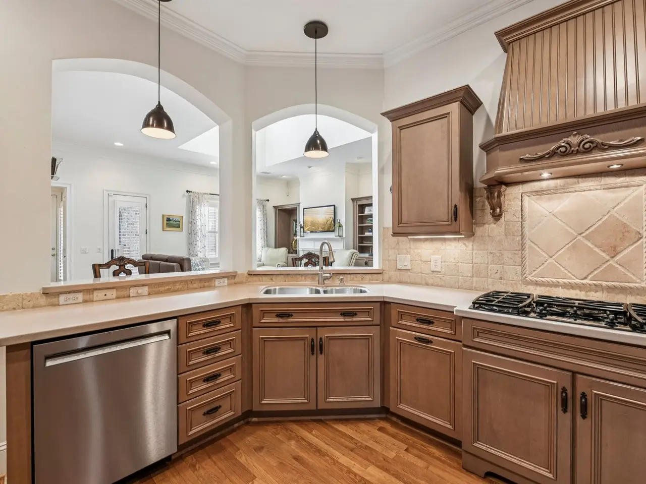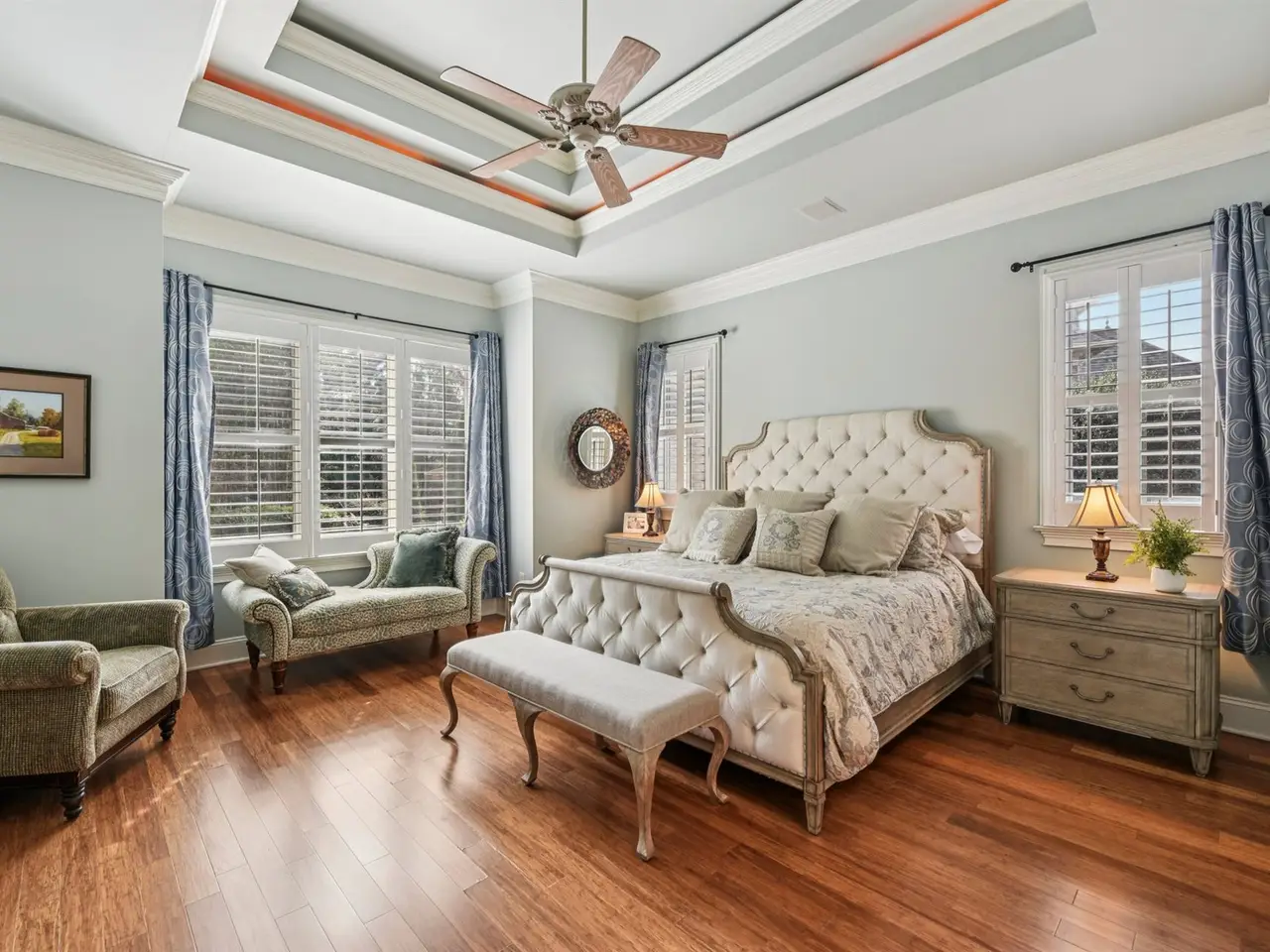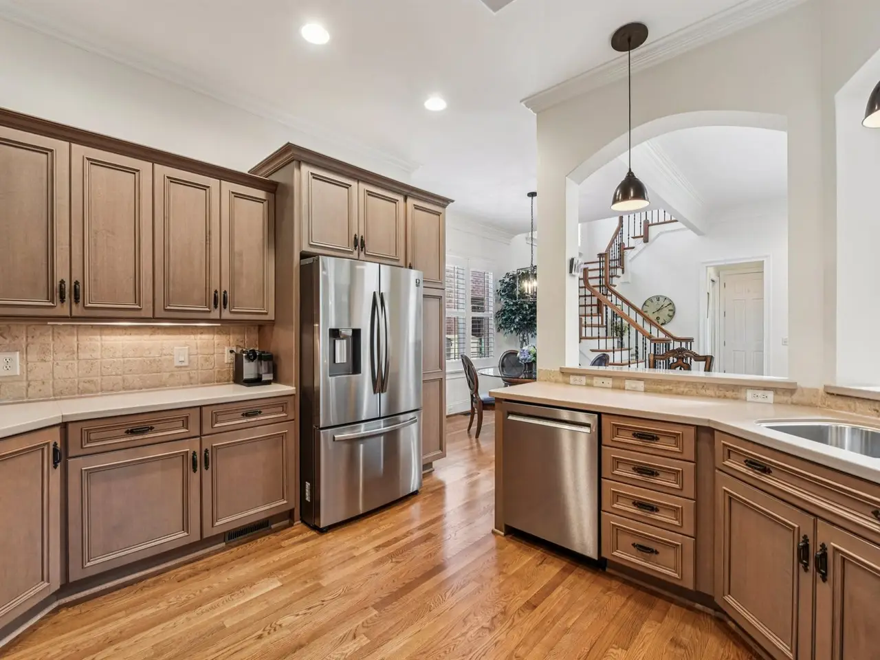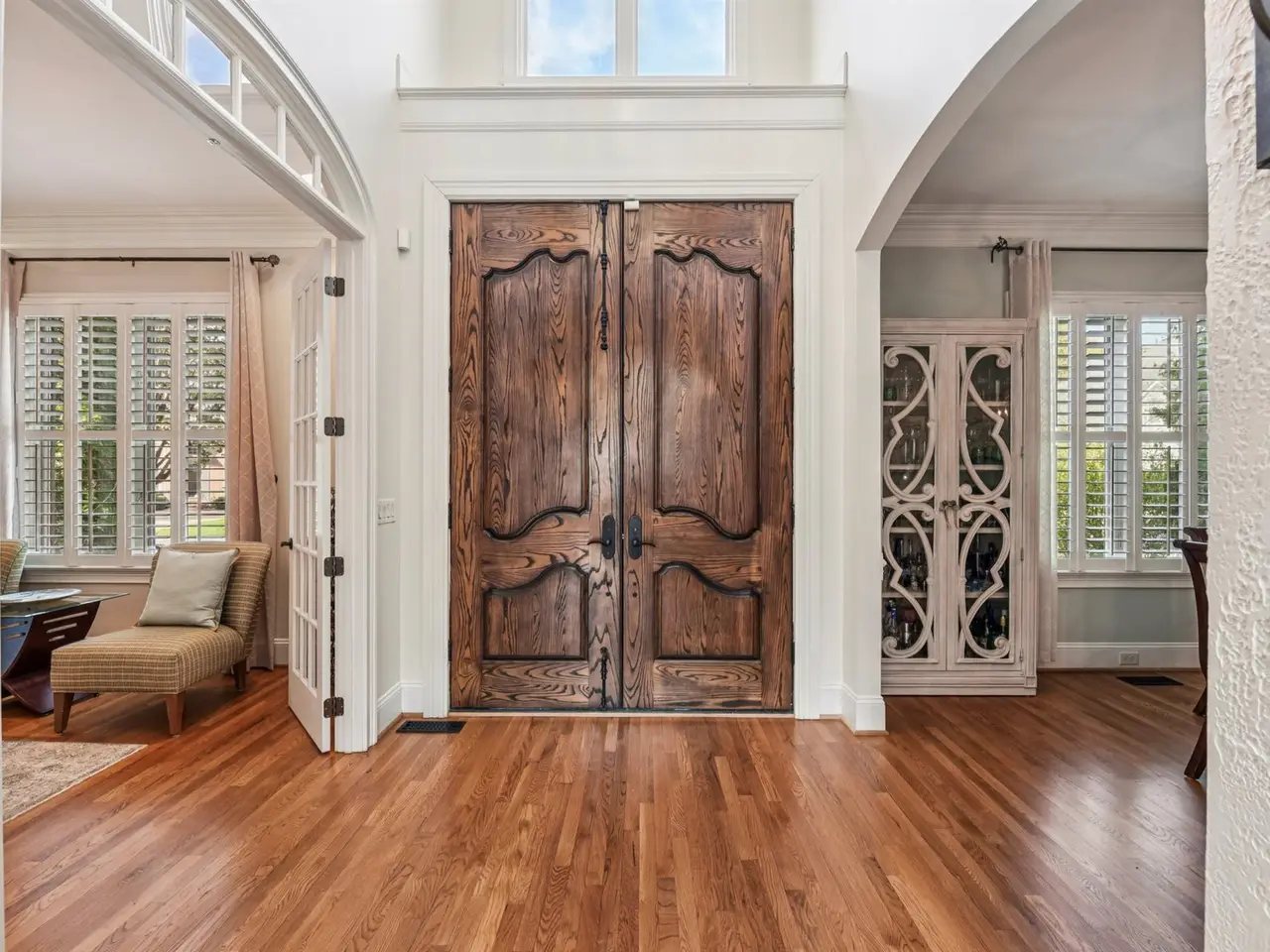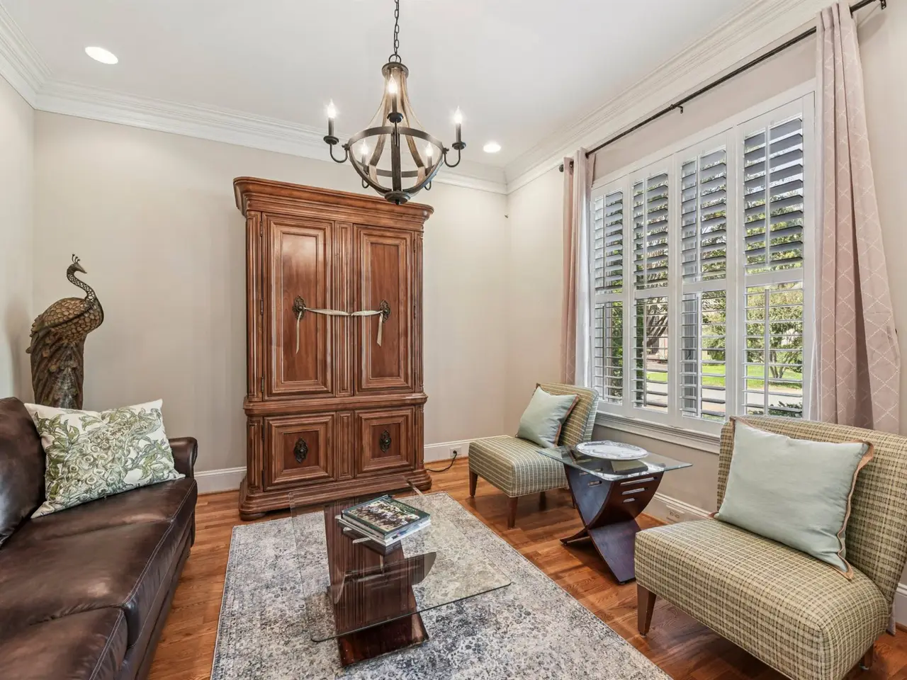 Exquisite European Custom Home Adjacent to Providence Country ClubWelcome to this extraordinary European-inspired custom home in the coveted Vanderbilt neighborhood?just a short walk to Providence Country Club and minutes from Waverly, Rea Farms, and Blakeney. From the moment you arrive, the gas lanterns and hand-carved mahogany double doors set an unmistakable tone of elegance and craftsmanship.Step inside to discover detailed millwork, designer lighting, and architectural accents that define luxury throughout. The cozy dining room features built-in storage, while French doors lead to a flexible room that can serve as an office, wine room, or intimate sitting area.The grand two-story great room is filled with natural light from expansive windows and anchored by a gas fireplace flanked by custom built-ins. Graceful arched openings connect the great room to the gourmet kitchen and breakfast area, creating a warm and open flow perfect for entertaining or casual living. The kitchen features custom cabinetry, a stunning range hood, and high-end finishes designed for both function and beauty.The main-level primary suite offers serenity and style, highlighted by a dramatic tray ceiling with rope lighting. The spa-like ensuite bath includes dual vanities, a large jetted tub, separate shower, water closet, and spacious walk-in closet.Eight-foot doors and site-finished hardwood floors span the main level, complemented by a beautifully designed laundry room with custom built-ins and tile flooring.Ascending the staircase, you'll find an open landing overlooking both the foyer and great room, filling the space with light and architectural presence. Two generous bedrooms on this level each offer ensuite baths, prefinished hardwood flooring, and walk-in closets.A secondary staircase leads to a versatile fourth bedroom or bonus suite complete with its own ensuite bath, pre-finished hardwood floors, and tile in the bath, plus a large walk-in storage area?ideal for guests, hobbies, or media use.Plantation shutters enhance both privacy and elegance. The backyard is an inviting outdoor retreat featuring a large gazebo?perfect for entertaining friends or enjoying quiet evenings at home. A fenced yard adds comfort and peace of mind.Recent updates reflect pride of ownership and thoughtful maintenance: two new compressors (2019), water heater (2025), plantation shutters (2019), dining room built-ins (2021), custom laundry cabinetry (2021), refinished downstairs hardwoods (2025), upstairs hardwoods added (2019), kitchen refrigerator (2020), and crawl space vent coverings (2019).Exterior details include decorative synthetic stucco accents applied over brick, enhancing the home's European aesthetic and timeless curb appeal.This exceptional home combines architectural beauty, quality craftsmanship, and modern updates in one of South Charlotte's most desirable locations?steps from Providence Country Club, dining, and shopping, yet nestled in an intimate, distinguished community.
