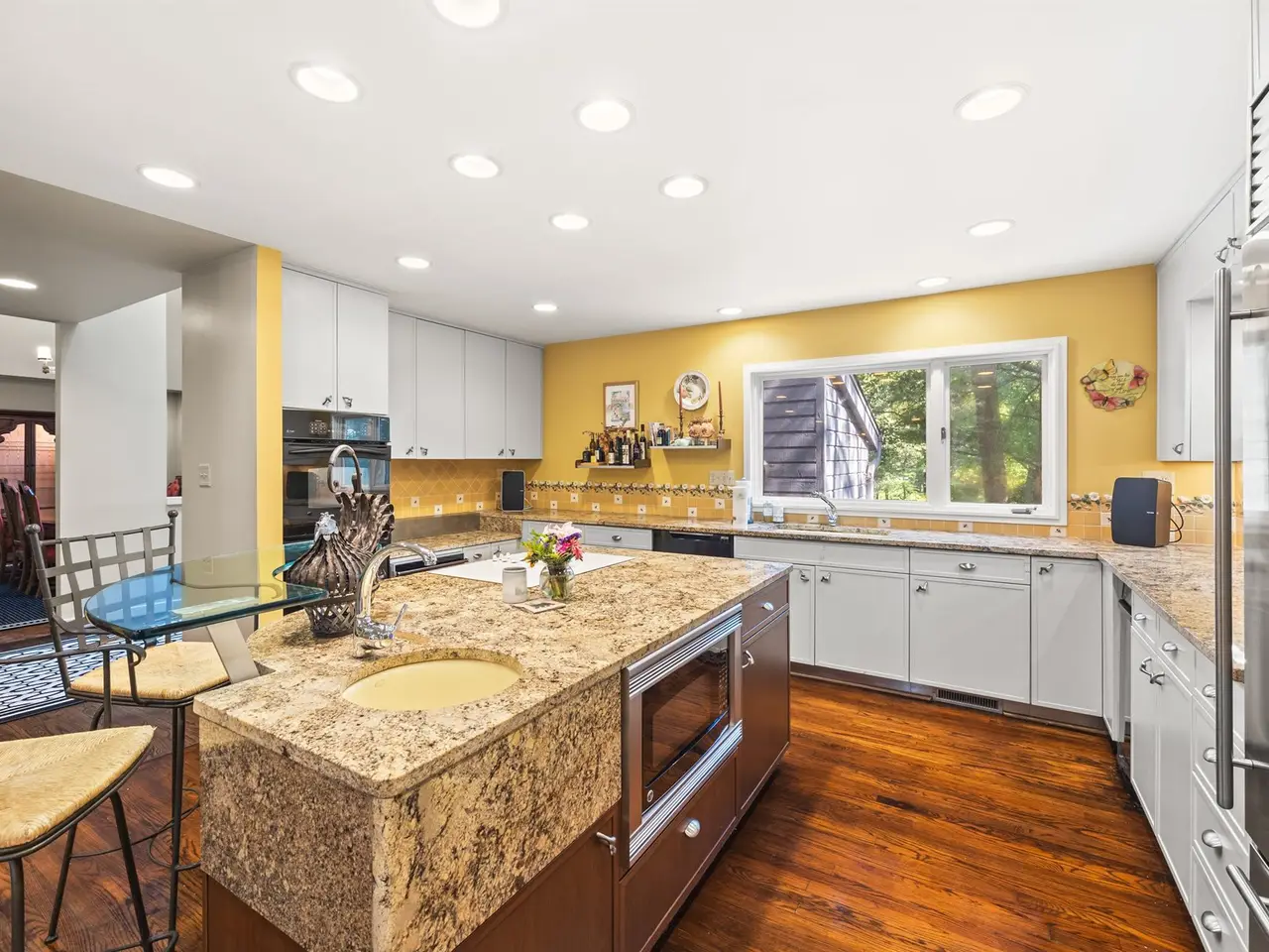Nestled on 4.35 acres in the prestigious Pellyn Wood community near Myers Park, this extraordinary estate offers an unmatched blend of natural beauty and sophisticated design. A private pond with a walking trail and fountain creates a serene backdrop, while multiple outdoor living spaces ? including a screened porch, deck, fire pit, and hot tub ? invite year-round enjoyment. Inside, the home boasts a unique and thoughtfully designed floorplan with expansive living and entertaining areas, a wine cellar with caf?-style seating, and abundant storage throughout. The main-level primary suite features dual private closet corridors, each with built-in cabinetry and vanity space, leading to a luxurious shared shower. The home's five bedrooms, 3 full baths, 2 half baths, and versatile spaces?including a solarium, loft, and recreation room?offer a perfect balance of privacy and places to gather. The kitchen is appointed with a large island, breakfast bar, double ovens, and warming drawer, seamlessly blending style and functionality. A rare offering for those seeking exceptional craftsmanship, natural surroundings, and refined living.