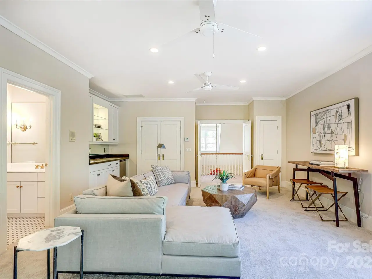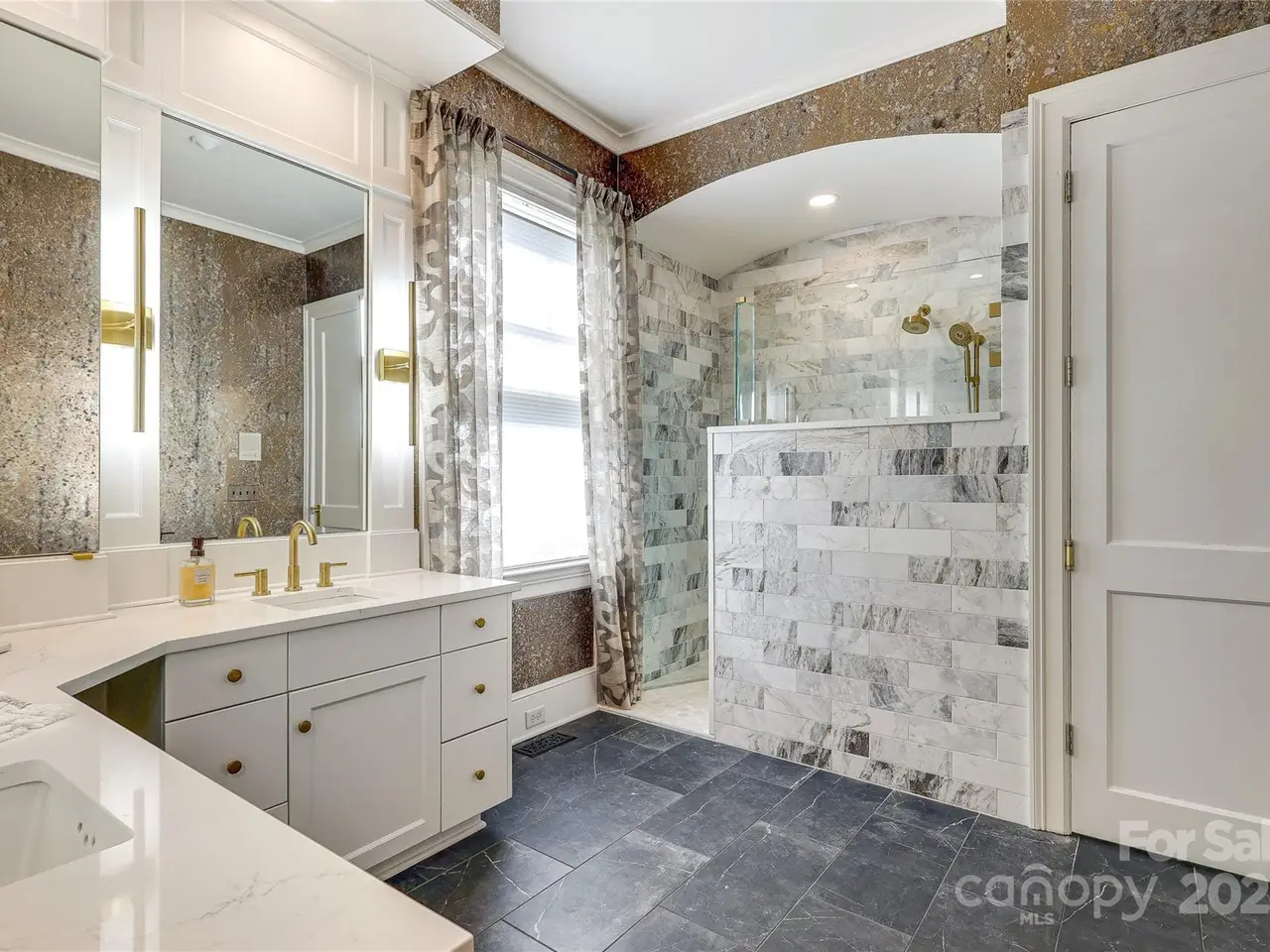 Beautifully updated home in Historic Dilworth! Refinished Brazilian hardwoods throughout the main level, which includes a formal living room with a 12-foot, coffered ceiling and formal dining room. A large, eat-in chef's kitchen has top of the line appliances, custom cabinets, walk-in pantry, and opens to a spacious den with a dry bar and built-in cabinets. French doors lead to a newly renovated outdoor area. First floor primary suite with his-and-her walk-in closets and a fully updated spa like bathroom. New roof in 2023 and main-level HVAC system in 2022. Brand new upstairs carpet, whole-house water filtration system, fresh paint inside and out, Tesla charger, new epoxy flooring in both the oversized two-car garage and the HUGE basement garage workshop. Tons of storage throughout including walk-in, two story attic with built-in shelves. Separate living quarters with full kitchen over the garage. With too many updates and unique features to list, this home is a must see!