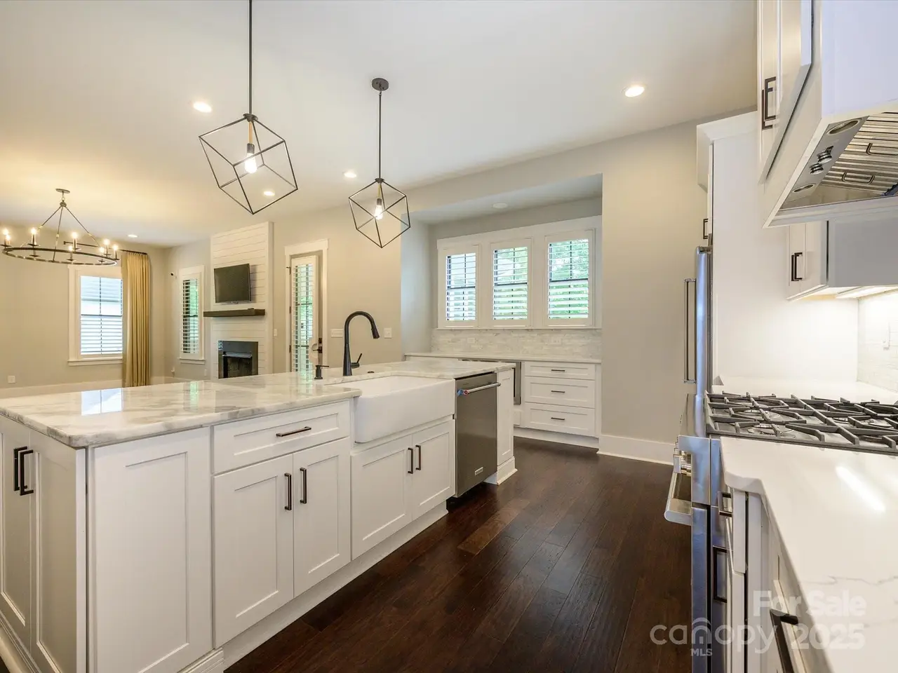 Modern farmhouse with open plan perfect for entertaining. Spacious entry foyer, private office with closet storage. Dining Room with adjacent butler pantry. Great room features a large kitchen area with plenty of cabinets and countertop space, gas range, separate pantry and a large island with built-in breakfast table. Family Room with fireplace/gas logs. Enjoy the outdoors from the sunroom. Drop zone at rear entry from attached 2-car garage along with laundry room including sink and dog washing station. Upstairs primary suite with tray ceiling and primary bath with vaulted ceiling, soaking tub and car wash style shower. Three additional bedrooms upstairs with full bath and one Jack & Jill bath. Upstairs loft area perfect for games/TV/work out etc. Shutters on all windows and all custom drapes remain. Fenced rear yard, irrigation in front and rear yards. Tankless water heater and Green Certification. If you want immaculate and move-in ready, this is it.