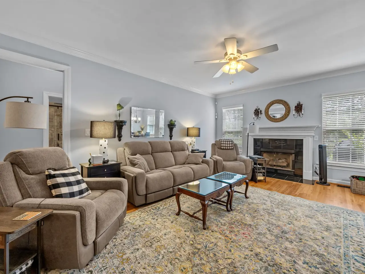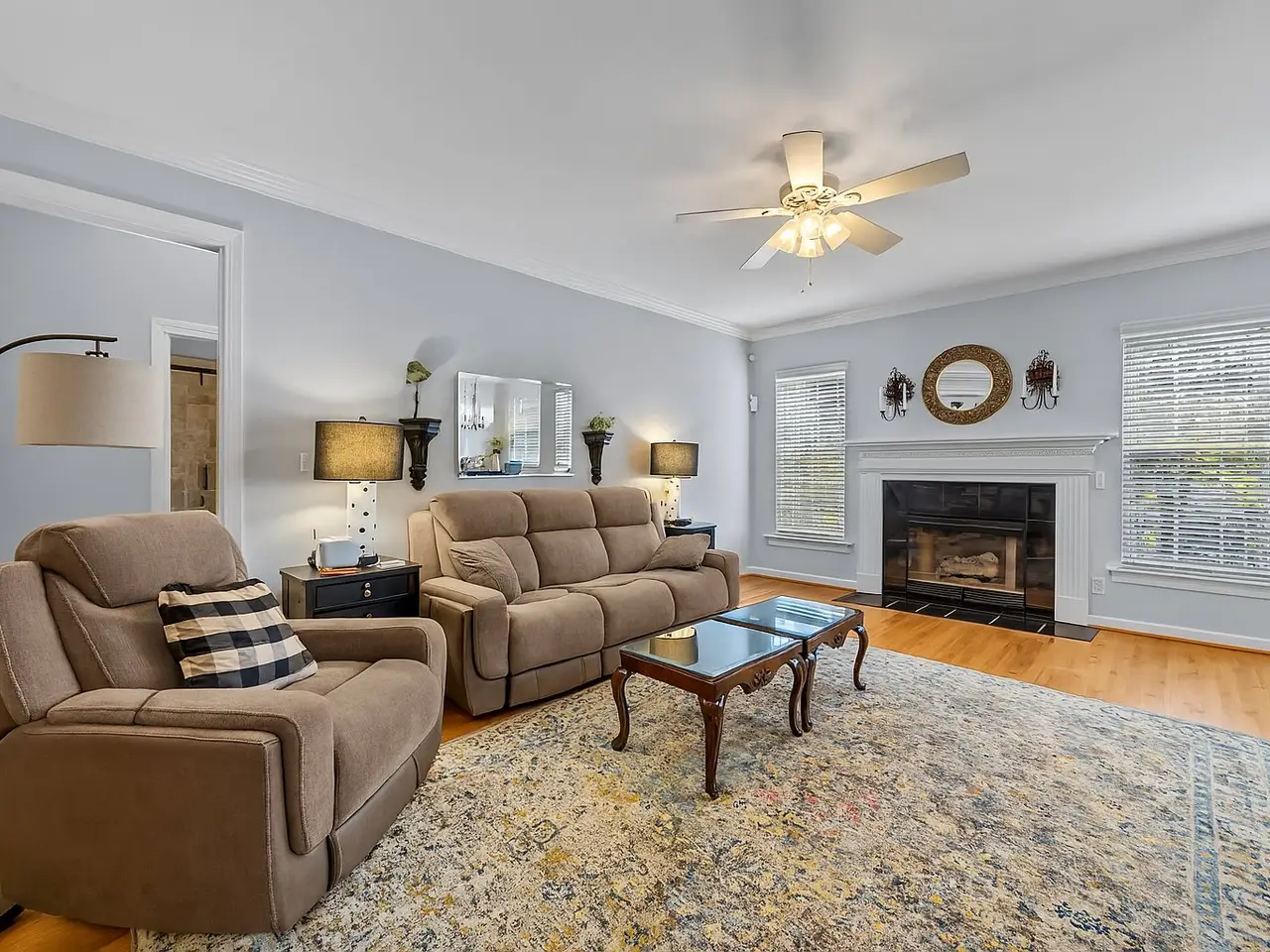 Formal living, dining, and family rooms