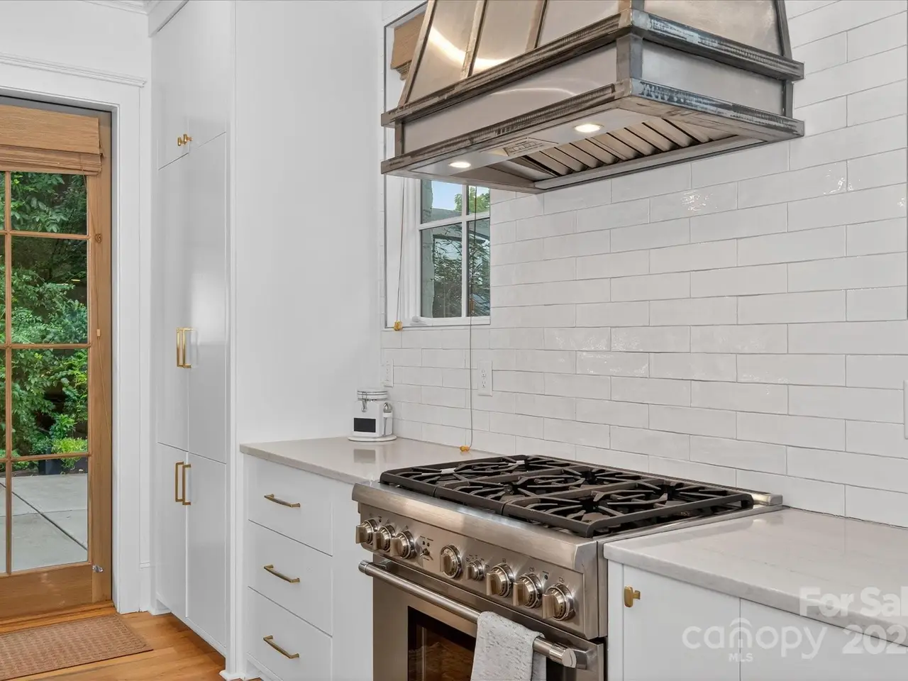 Sophisticated living meets prime walkable Dilworth in this 2019 Grandfather Homes masterpiece. Inspired by the English Farmhouse, this white brick duet lives like a single-family home, featuring white oak hardwoods, soaring ceilings, and sunlit open spaces. The chefs kitchen boasts a quartz-topped island, premium appliances, and seamless flow to the dining area and great room. French doors open to a private patio with a stone fireplace surrounded by lush greenery perfect for indoor/outdoor entertaining. The main floor guest suite offers a full bath and generous closet. Upstairs, the vaulted primary suite features a spa-like bath, expansive walk-in closet, and a wrap-around balcony overlooking serene green space. A secondary bedroom with ensuite bath and laundry complete the level. The third floor hosts a spacious bonus room with wet bar and full bath. This home blends timeless elegance w/modern comfort in one of Charlottes most coveted locations.