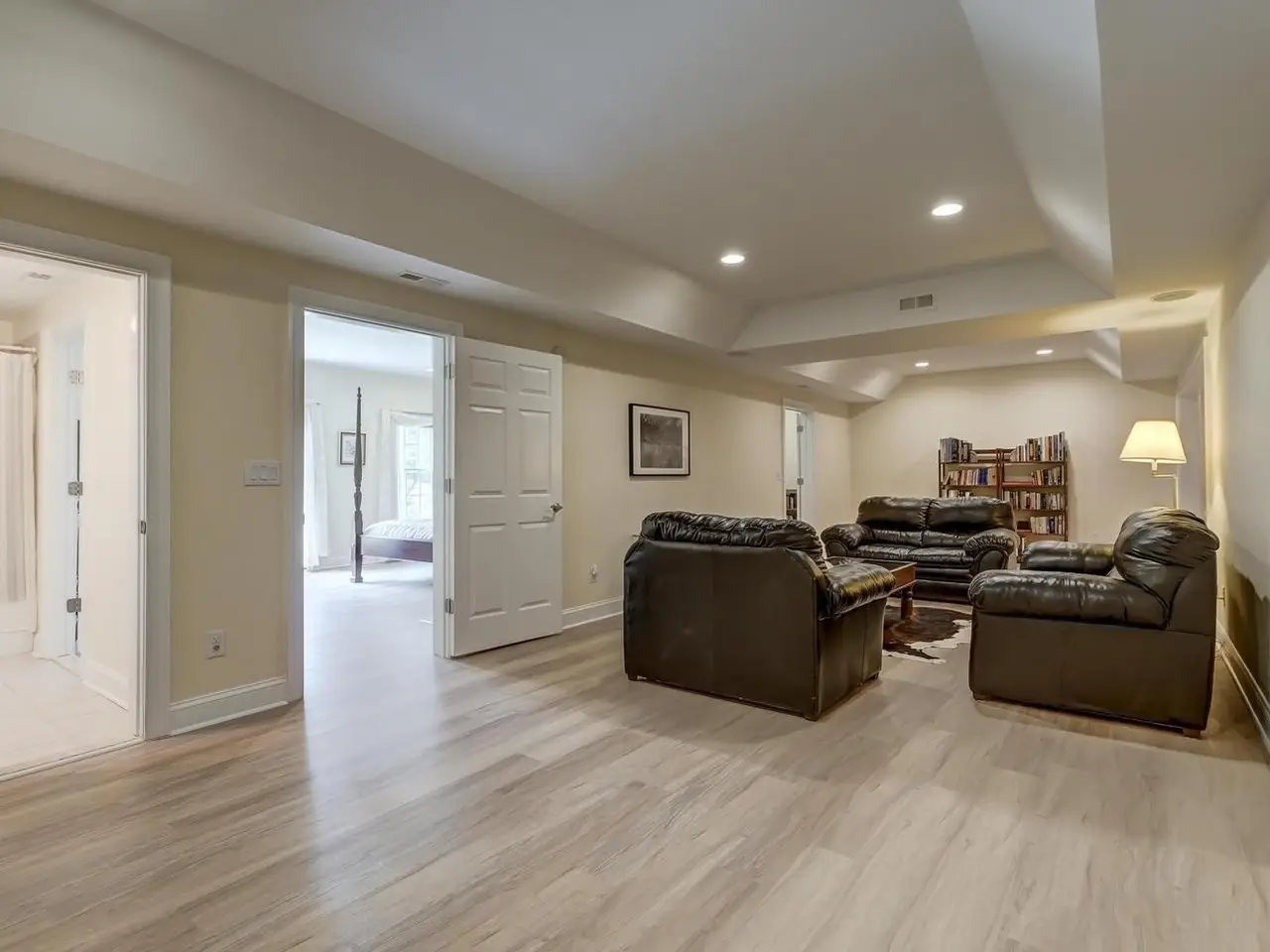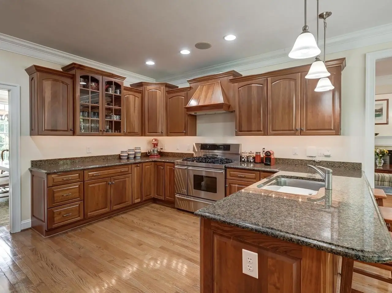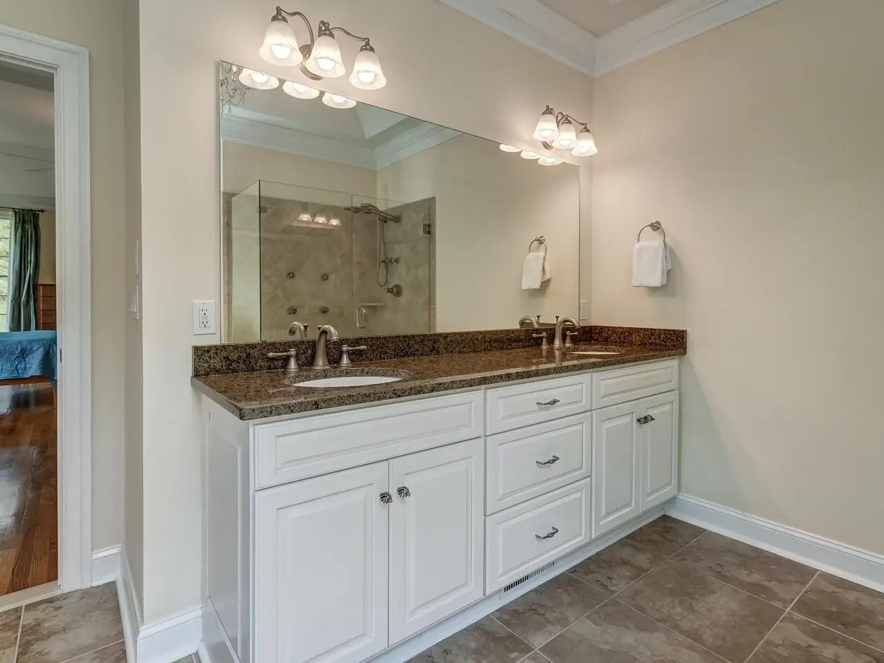 Exquisite Four-Sided Brick Home in Premier Established Community. Great location just 10 minutes from UVA and Hospitals, with easy access to I 64, wineries, and breweries. This custom home features main and second level primary suites, hardwood floors throughout the upper levels, and a fully finished walk-out basement with LVP flooring! The open main level is an entertainer's dream with a two story great room featuring a gas fireplace with built-ins , a gourmet kitchen with all new stainless steel appliances, cherry cabinets and granite, large formal living and dining rooms and a cozy breakfast nook. For flexible living this home boasts a primary bedroom suite on all three levels! The main level primary suite includes a gas fireplace flanked by built in book shelves. If you'd prefer your owner's suite upstairs, there is a cozy suite with a light filled bathroom with jetted tub and shower. Three additional bedrooms on the upper level share two full bathrooms. The finished walk out terrace level includes a large rec room, a bedroom with ensuite and gas fireplace and extra bedroom/home office - great for guests. 3 car garage, & new landscaped yard.,Cherry Cabinets,Glass Front Cabinets,Granite Counter,Fireplace in Bedroom,Fireplace in Great Room,Fireplace in Master Bedroom