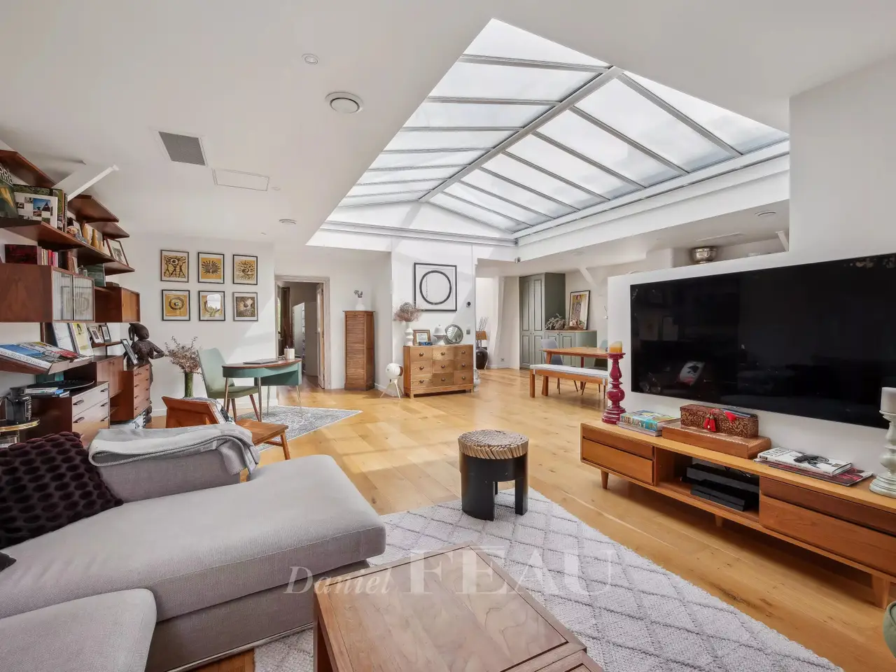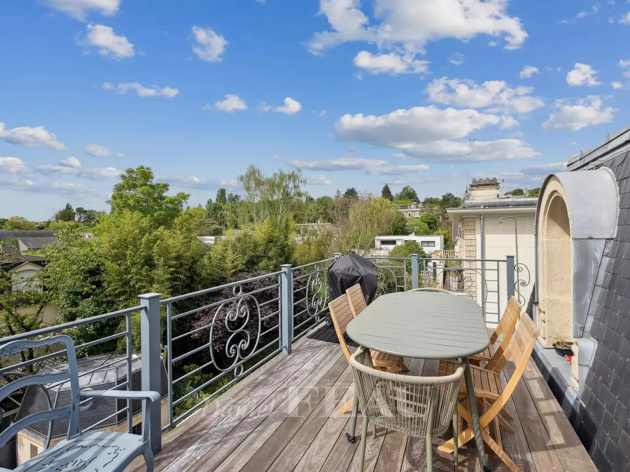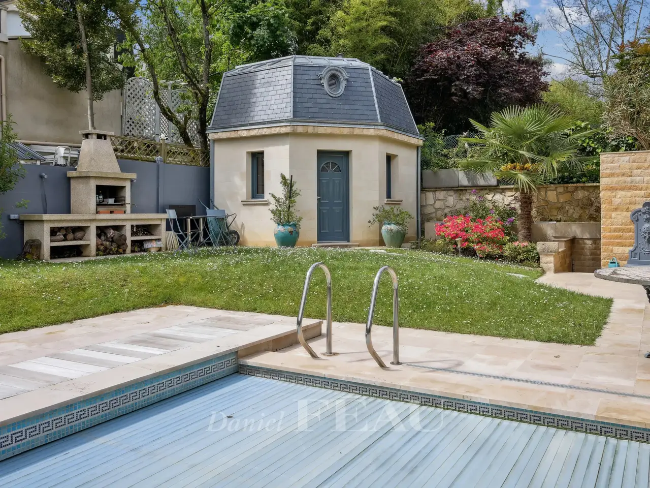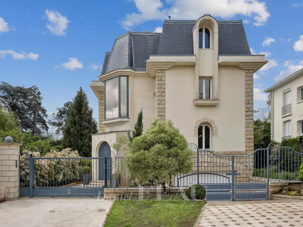 This exceptional 614 sqm mid 20th century property nestled in a cocoon of leafy greenery and benefiting from a landscaped garden is located in the sought-after Domaine de la Prairie d'Aulnay residence on the edge of the Parc de Sceaux and a few minutes from the station. 437 sqm of living space includes a spacious living/reception room with a dining room in a veranda bathed in sunshine, a kitchen with dining facilities, a spacious study and a bathroom. The 1st floor comprises two spacious suites with bath/shower rooms and a south-facing terrace. An entirely renovated split-level and self-contained loft-style apartment includes a spacious living/reception room, a dining room and open-plan kitchen opening onto a terrace, three bedrooms including a master suite with a bathroom and dressing room, and a second bathroom. Ample fitted storage space. The garden-level comprises a self-contained studio apartment. With an indoor swimming pool partially opening onto the exterior, a terrace, a caretaker’s lodge, a sauna with a shower, a utility room, a boiler room and four parking spaces. With easy access to the trunk roads and Orly Airport.