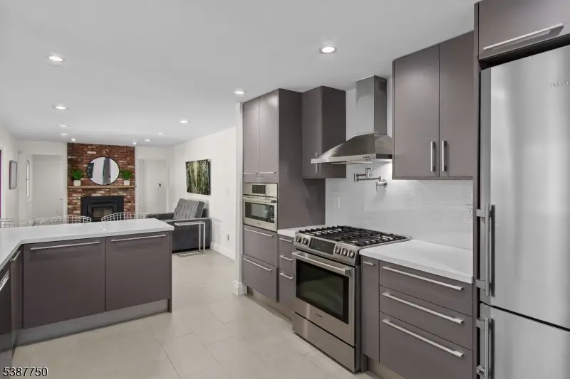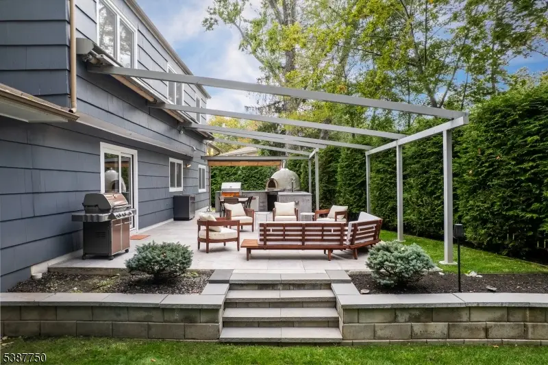 Beautifully updated and thoughtfully designed, this home blends modern style with everyday comfort. Manicured landscaping and a welcoming front porch lead to a spacious interior featuring Porcelanosa tile flooring, recessed lighting, and richly toned hardwoods. Highlights include European tilt-and-turn windows with built-in shades, sleek stainless-steel railings, Metrie modern doors and moldings, a wood-burning fireplace in the family room, a dedicated office, a newly finished lower level, and many automated systems. The open Porcelanosa kitchen is enhanced with designer finishes and flows seamlessly into the living and dining spaces. The primary suite offers custom closets and a private ensuite, while additional bedrooms share an elegant hall bath.The private outdoor oasis is complete with porcelain hardscaping, a retractable awning, and a full outdoor kitchen with pizza oven, Argentinian grill, Heston gas grill, refrigerator, sink, and wood storage. Ideally located near Shepard Kollock Park, walking trails, dog park, and just a short walk to the train.