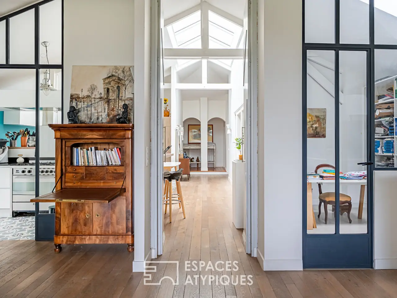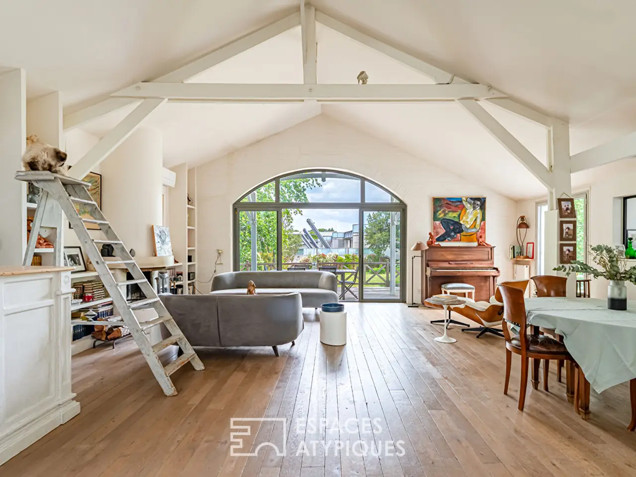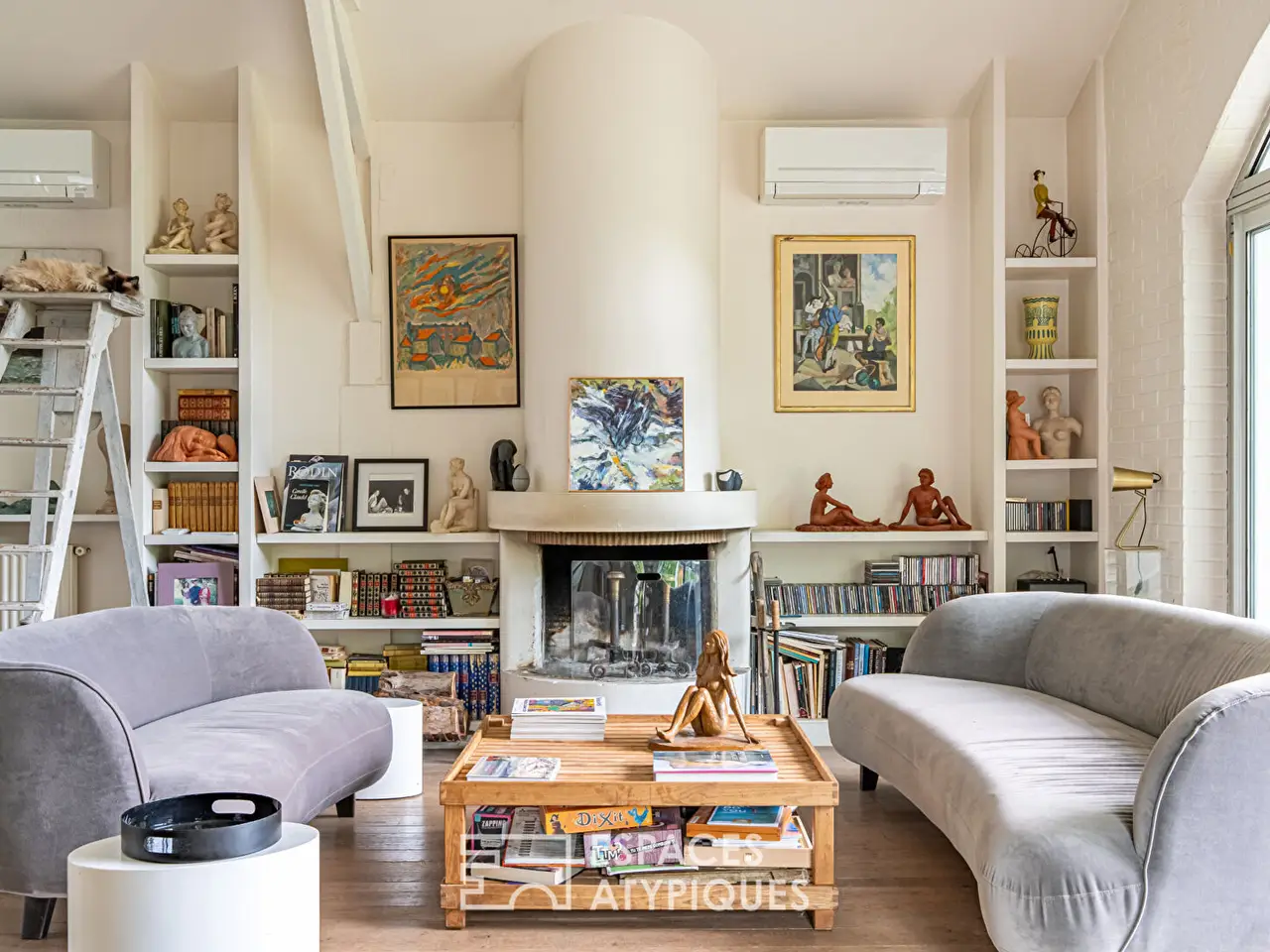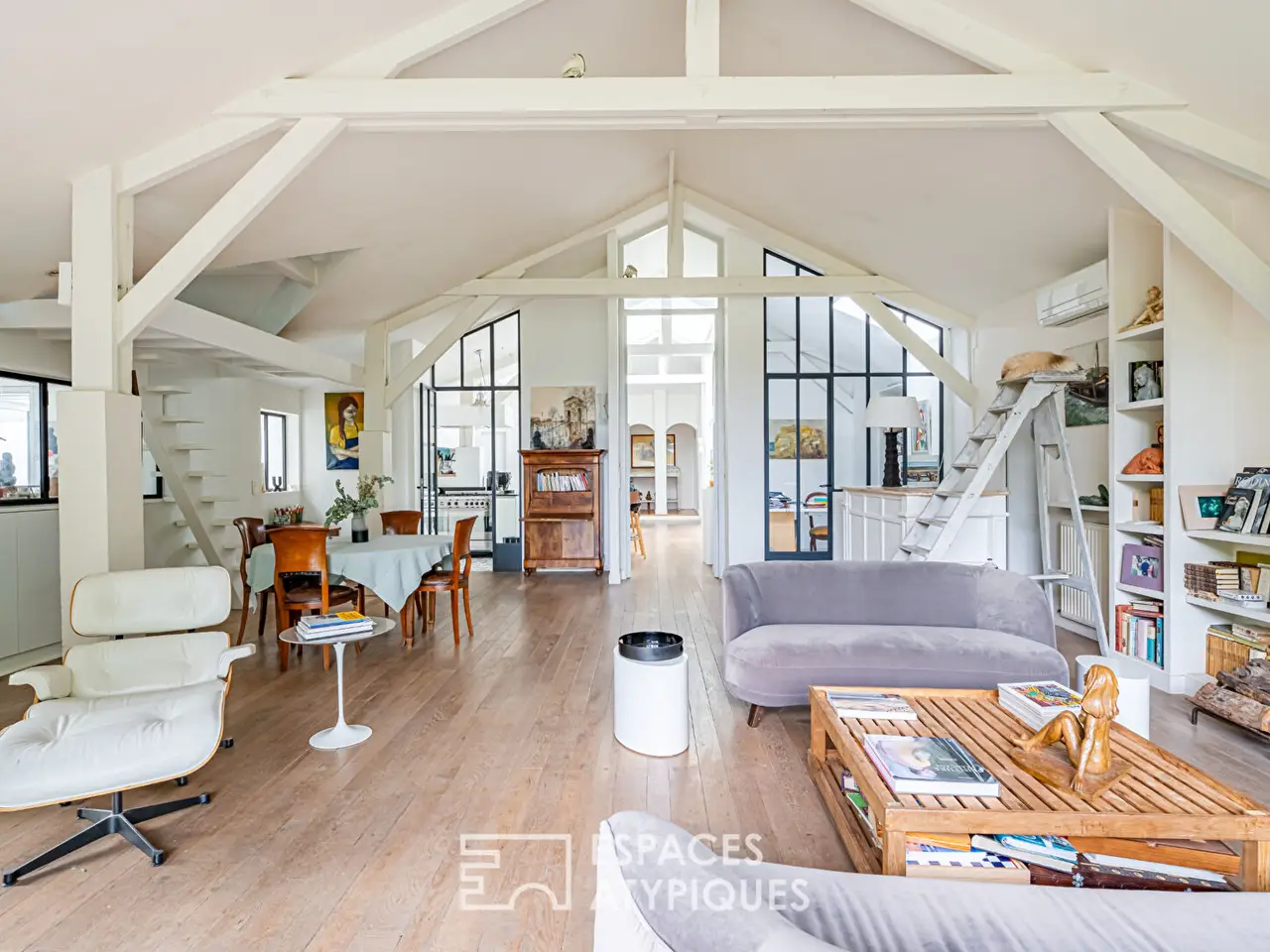 Located in a sought-after residential area of Chatou, this architect-designed house, built in 1995, offers 243 m2 of living space on a 270 m2 floor area with a 717 m2 garden. On one level with a mezzanine, it offers unobstructed views of the banks of the Seine and the dam, and is distinguished by its generous proportions, contemporary lines, and through windows. A private terrace, a separate workshop, and two parking spaces complete this property with its rare features. This unique living space blends a Californian feel with residential comfort. The entrance hall with a cloakroom opens onto a fully equipped kitchen under a glass roof, bathed in natural light. The 56 m2 cathedral-style living room (air-conditioned), featuring a fireplace, boasts remarkably high ceilings and direct access to the terrace (southeast-facing and not overlooked). The house comprises five bedrooms, including a master suite with a bathroom and shower, as well as an office. A second bathroom with a shower, a powder room, and a laundry room complete the layout. An adjoining artist's studio (air-conditioned), with independent access, offers a potential sixth bedroom or creative space. The fully enclosed garden, opposite the terrace, is an ideal place to relax and is a true extension of the house. The property is located less than a 20-minute walk from the Chatou/Croissy RER A station, schools, and shops, while benefiting from direct access to the towpath. This co-owned property (13 units with 3 owners, no pending proceedings) offers a unique living environment, combining architectural character, exceptional volumes, and a privileged natural setting. ENERGY CLASS: E / CLIMATE CLASS: D Estimated average annual expenditure based on average energy prices indexed for the years 2021, 2022, and 2023 (including subscriptions): between €5,070 and €6,910. REF. 10941 Additional information * 8 rooms * 5 bedrooms * 2 bathrooms * 1 bathroom * Outdoor space : 1342 SQM * Parking : 2 parking spaces * 3 co-ownership lots * Annual co-ownership fees : 1 300 € * Property tax : 2 703 € * Proceeding : Non Energy Performance Certificate Primary energy consumption e : 257 kWh/m2.year High performance housing