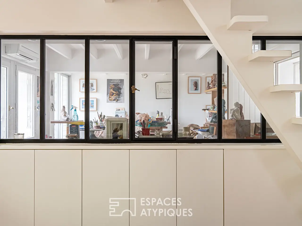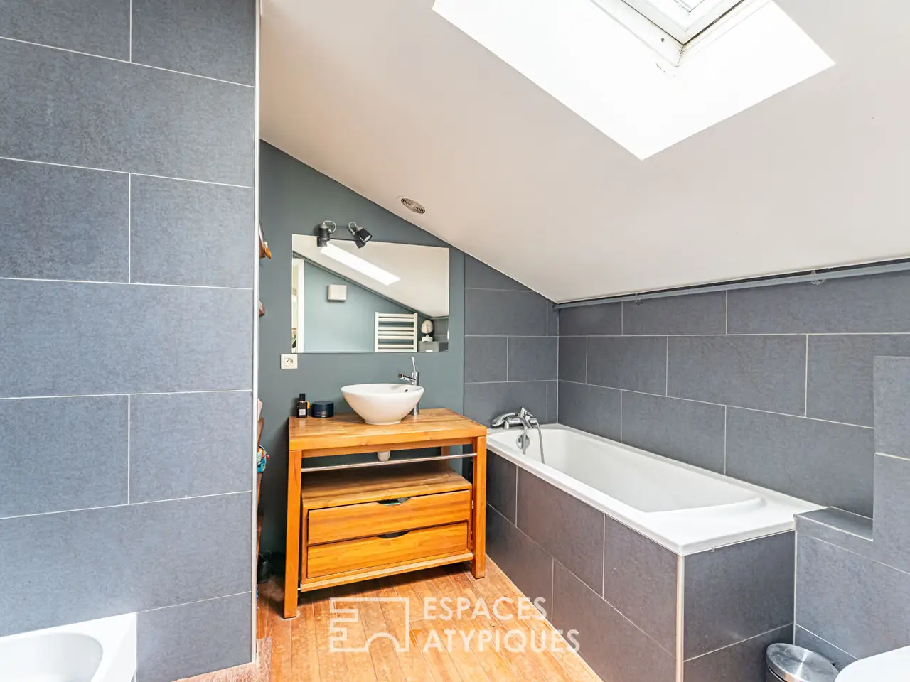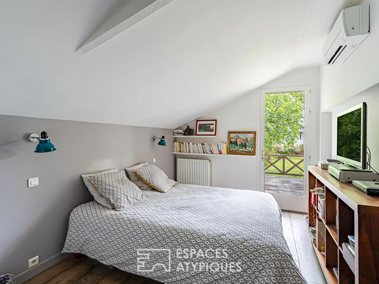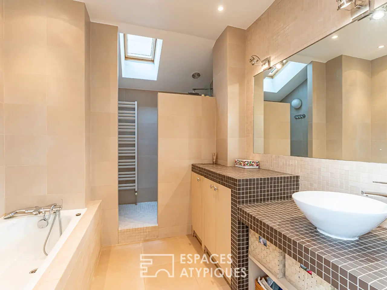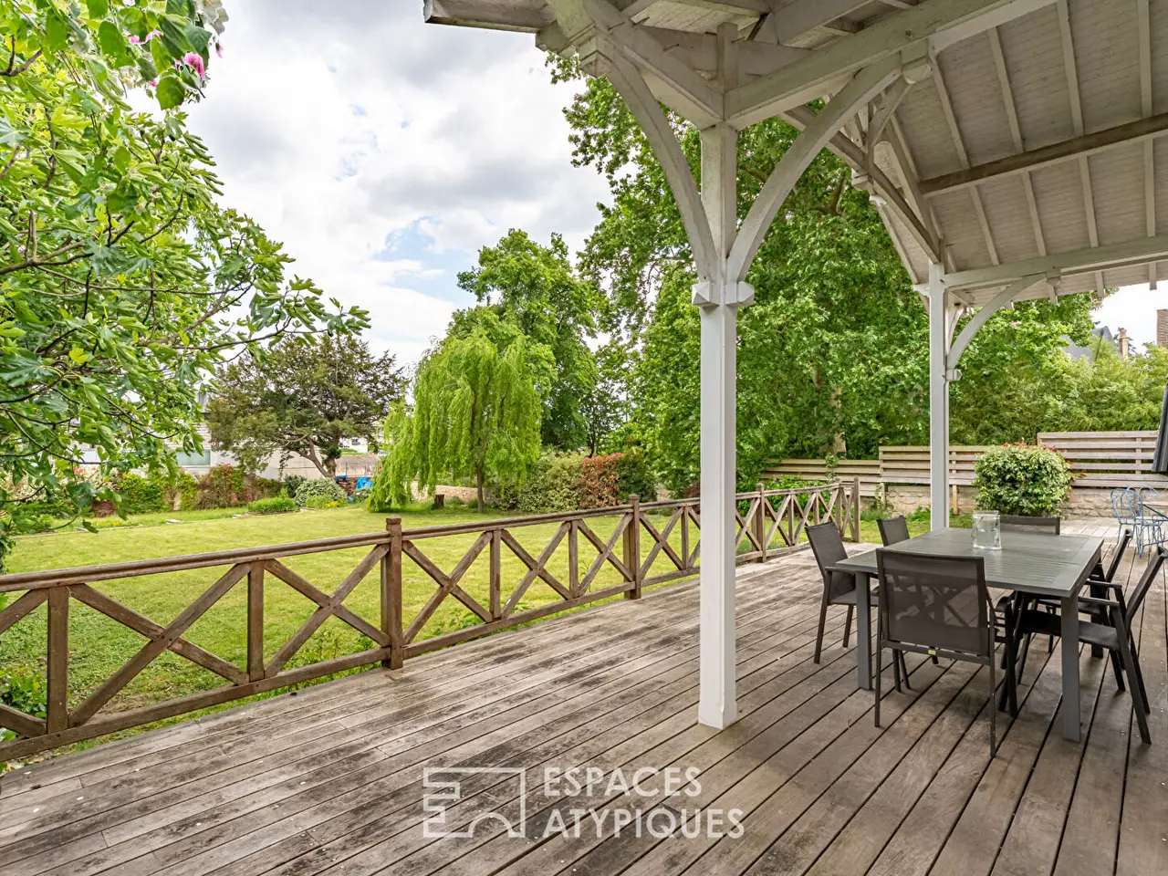 Located in a sought-after residential area of Chatou, this architect-designed house, built in 1995, offers 243 m2 of living space on a 270 m2 floor area with a 717 m2 garden. On one level with a mezzanine, it offers unobstructed views of the banks of the Seine and the dam, and is distinguished by its generous proportions, contemporary lines, and through windows. A private terrace, a separate workshop, and two parking spaces complete this property with its rare features. This unique living space blends a Californian feel with residential comfort. The entrance hall with a cloakroom opens onto a fully equipped kitchen under a glass roof, bathed in natural light. The 56 m2 cathedral-style living room (air-conditioned), featuring a fireplace, boasts remarkably high ceilings and direct access to the terrace (southeast-facing and not overlooked). The house comprises five bedrooms, including a master suite with a bathroom and shower, as well as an office. A second bathroom with a shower, a powder room, and a laundry room complete the layout. An adjoining artist's studio (air-conditioned), with independent access, offers a potential sixth bedroom or creative space. The fully enclosed garden, opposite the terrace, is an ideal place to relax and is a true extension of the house. The property is located less than a 20-minute walk from the Chatou/Croissy RER A station, schools, and shops, while benefiting from direct access to the towpath. This co-owned property (13 units with 3 owners, no pending proceedings) offers a unique living environment, combining architectural character, exceptional volumes, and a privileged natural setting. ENERGY CLASS: E / CLIMATE CLASS: D Estimated average annual expenditure based on average energy prices indexed for the years 2021, 2022, and 2023 (including subscriptions): between €5,070 and €6,910. REF. 10941 Additional information * 8 rooms * 5 bedrooms * 2 bathrooms * 1 bathroom * Outdoor space : 1342 SQM * Parking : 2 parking spaces * 3 co-ownership lots * Annual co-ownership fees : 1 300 € * Property tax : 2 703 € * Proceeding : Non Energy Performance Certificate Primary energy consumption e : 257 kWh/m2.year High performance housing