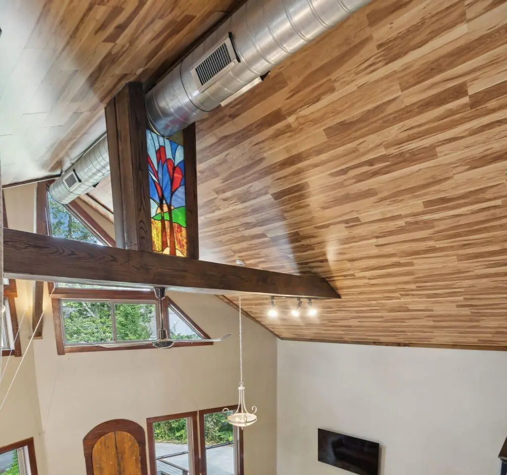 Eclectic Haven Discover 1014 Meroney Street, an eclectic 3-bedroom, 3.5-bathroom custom home on 0.82 acres in a tranquil cul-de-sac North Chattanooga. Just over a mile from Coolidge Park's vibrant shops and dining. This gem welcomes you with an 8-foot round-top front door with metal straps, a circular driveway, and two large rear garages for ample parking. The side deck offers ridge views, sunrises, sunsets, and distant festival music or fireworks, an outdoor kitchen with a sink and grill.Step inside to locally sourced wood floors, crafted from felled trees, atop 10-12-inch concrete basement walls. The kitchen dazzles with concrete countertops, a large concrete island, spalted maple cabinets with roll-out drawers and spice racks, two dishwashers, and a glass garage door connecting to the outdoor kitchen. It opens to a great room with 26-foot angled ceilings and a 9'x4' custom dining table, perfect for entertaining. The master suite features an 8-foot glass door to a wraparound deck, three large windows for sunrise views, and a bathroom with a concrete countertop, dual sinks, eclectic slate-like tile, an open stone shower, and a jetted tub with instant hot water. A cedar-lined master closet connects to the laundry room for convenience, and the guest bathroom sports a concrete countertop with a bowl sink. Double-hung windows with lifetime warranties and a whole-house exhaust fan enhance functionality. Ascend to an eclectic game room/art studio with industrial floors and a private deck boasting Lookout Mountain views. Two bedrooms with 4x8 closets and a bathroom with a concrete countertop complete the space. A pulley system simplifies moving furniture upstairs.The unfinished basement spans the home's footprint, featuring a storm shelter with a half bath, a workshop with antique doors, and ample space for customization.A painting of the home's love story, created by the artist owner, awaits the new buyer. Schedule a tour of this eclectic masterpiece today!