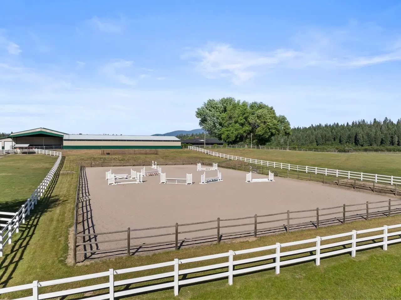 Welcome to Crescent Bend Farm, a meticulously cared for equestrian estate on 20.03 serene acres in Chattaroy featuring a 4,200+ sq ft brick rancher with thoughtfully planned horse facilities for the professional or hobbyist alike. The 5 bed, 3 bath home offers a primary ensuite with dual sinks, a spacious kitchen, office, large mudroom, finished basement, multiple living spaces and covered patio that looks out over the lush, shaded lawn. The 60'x100' indoor arena features overhead lighting & mason sand/rubber footing as well as 5 stalls + foaling stall with power, drive-through hay/equipment storage, and heated tack & feed rooms. The 100'x200' outdoor arena, round pen and 4 fenced paddocks complete the setup. The gated/paved driveway, year-round creek, and oversized 6-bay shop with EV hookup & backup diesel generator are but a few more of the endless amenities. This is a rare, turnkey opportunity for equestrians or anyone seeking refined rural living just minutes from Spokane.