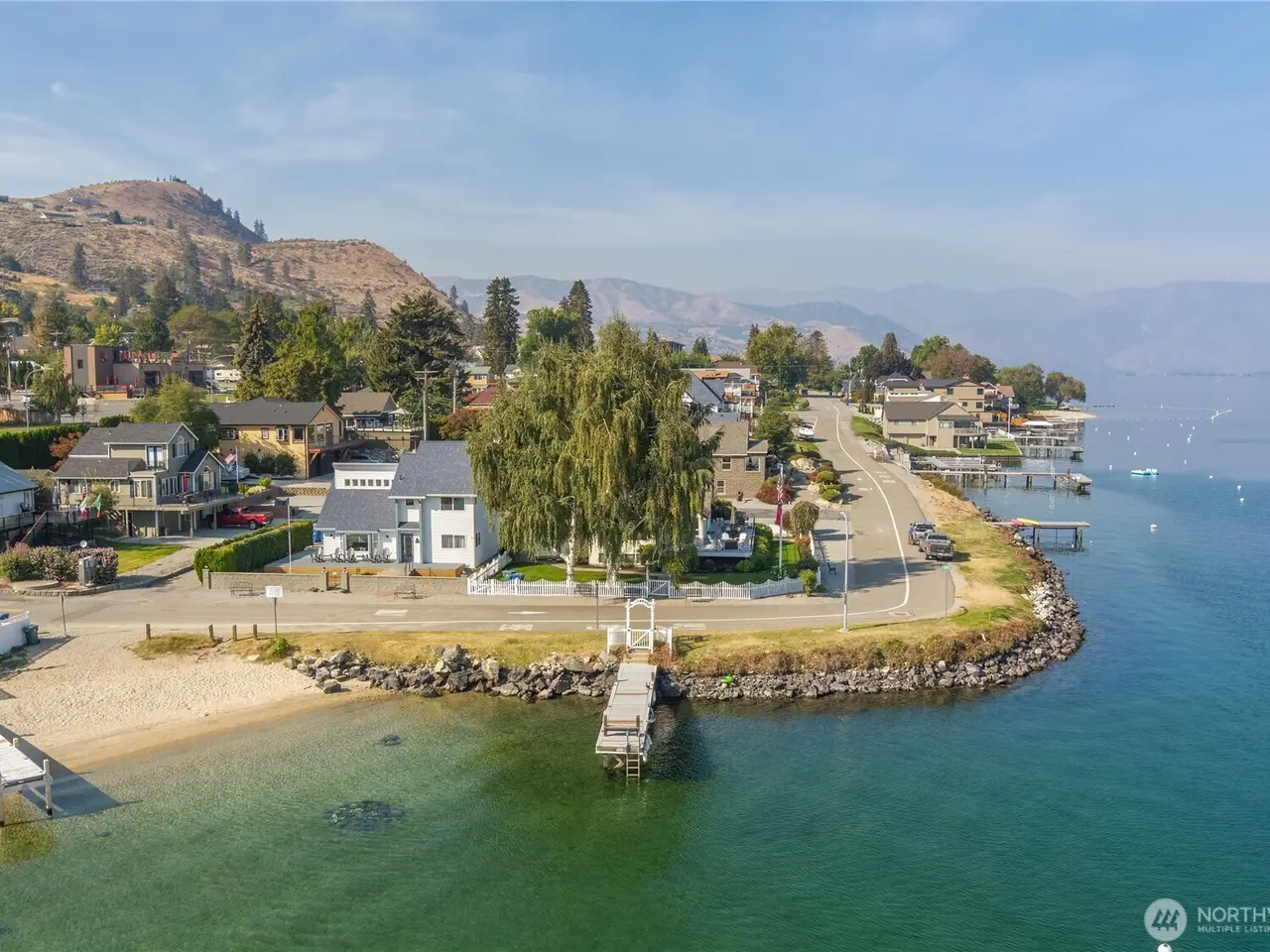 MOTIVATED! Fine waterfront living from this updated Lakeside home in the coveted Lake Park Block w/ low bank sandy beach waterfront access & shared PUD dock. Lakeside south shore bay is an iconic timepiece that offers the best sandy beach harbor during the summer months and a sandbar peninsula in the winter months. Sit out on your deck and enjoy the Lady of the Lake pass by the Chelan Bay, and take in the morning sunrise from this fully remodeled 4bed, 2.5bath, 2-story, 2-car garage home on a generous corner lot w/ extended RV/Boat parking. Interior features a newly completed kitchen w/ SS appliances, granite counters, shaker cabinets, LVP flooring, fresh paint & trim, updated light & plumbing fixtures, & beachy themed decor.