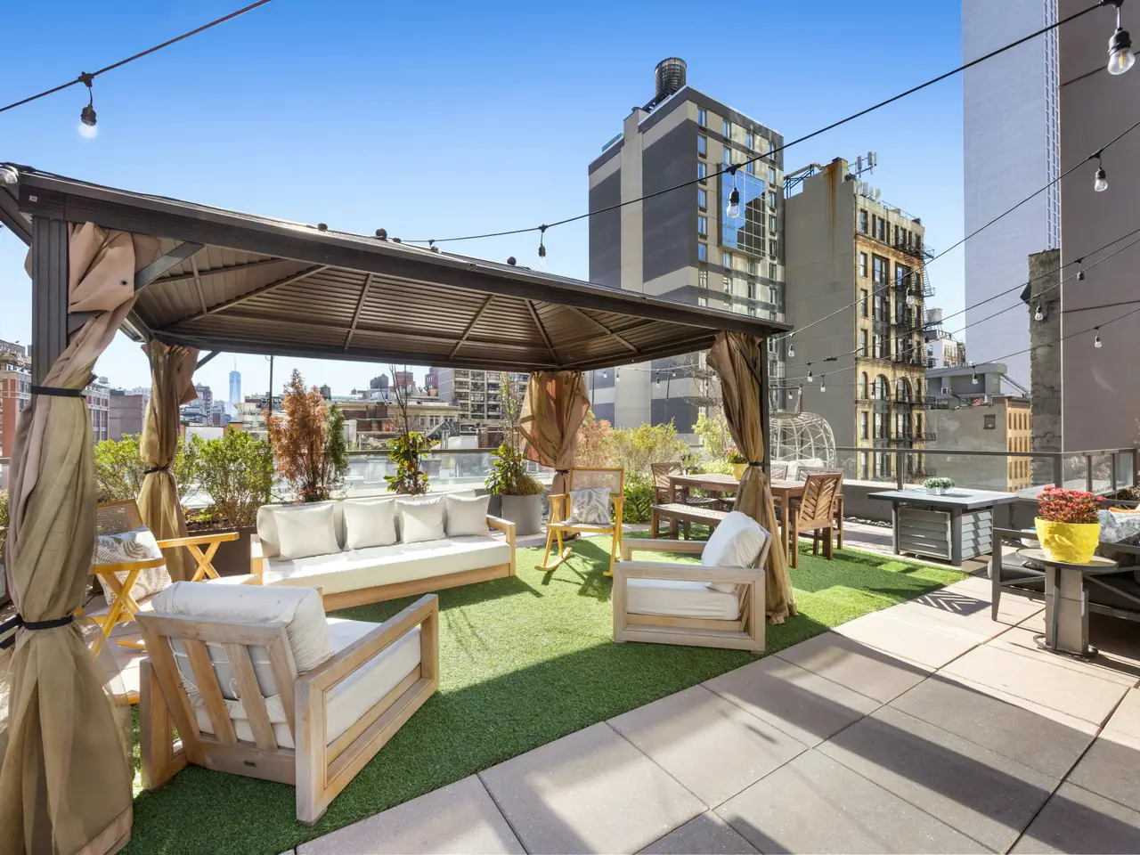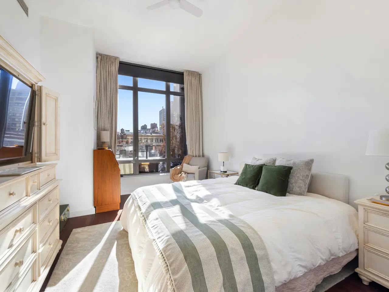 Chelsea Stratus Corner 2BR with 863 SF Private Terrace Light, scale, and privacy define this two-bedroom, two-bath corner residence at Chelsea Stratus. South and east exposures frame open skyline views. The home blends 1,272 SF of interior living with an extraordinary 863 SF private terrace, creating a rare indoor and outdoor sanctuary in the heart of Downtown. Floor-to-ceiling windows and 11-foot ceilings bring natural light throughout the day. The windowed, open kitchen is appointed with a Fisher & Paykel double-drawer dishwasher, GE refrigerator, Caesarstone countertops with plenty space. The kitchen and living room open to a truly one-of-a-kind, custom terrace. Lush plantings, an outdoor bar, a gas grill, and a kitchenette support effortless entertaining and quiet mornings alike. With proportions comparable to many one-bedroom apartments, the terrace functions as a true extension of the living space. Both bedrooms enjoy floor-to-ceiling windows with open views of Downtown and the Freedom Tower. The primary suite offers a spa-inspired bath with a double vanity, deep soaking tub, and glass-enclosed shower. The second bedroom provides ample space for a queen-size bed and workstation. Both bedrooms feature generous closets. Additional highlights include motorized shades, central air, in-unit washer and dryer, and a private storage cage. Chelsea Stratus provides full-service convenience with a doorman, concierge, and live-in resident manager. Amenities include a state-of-the-art fitness center with a half basketball court, an entertainment lounge with copper fireplace, catering kitchen, dining area, and billiards room, a landscaped garden with grills, and one of Downtown's standout roof decks with seating and a dog run. The location places you near Madison Square Park, Eataly, Whole Foods, acclaimed restaurants, and multiple subway lines.